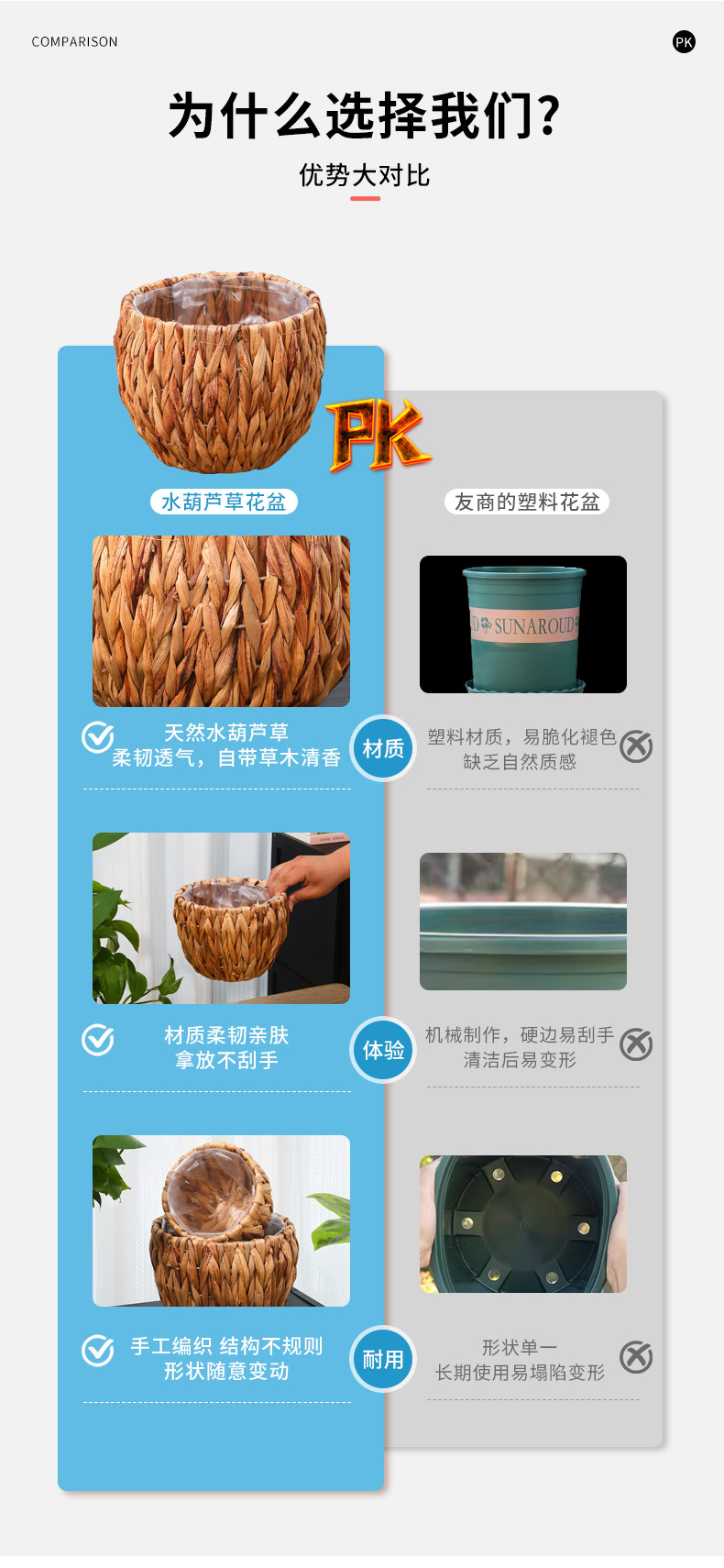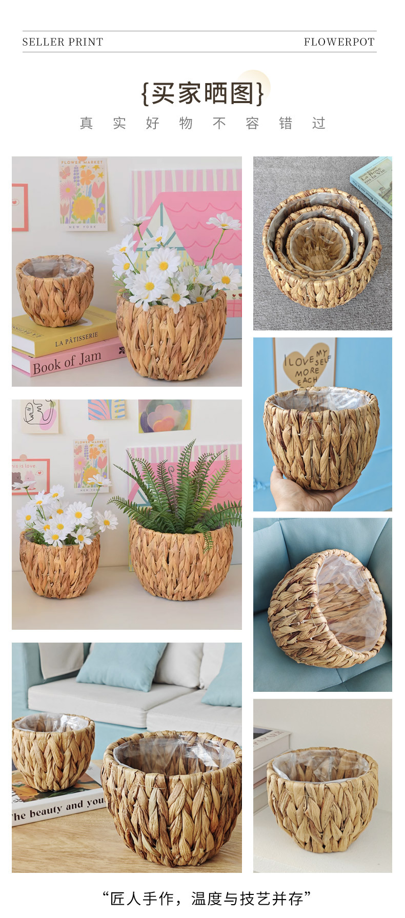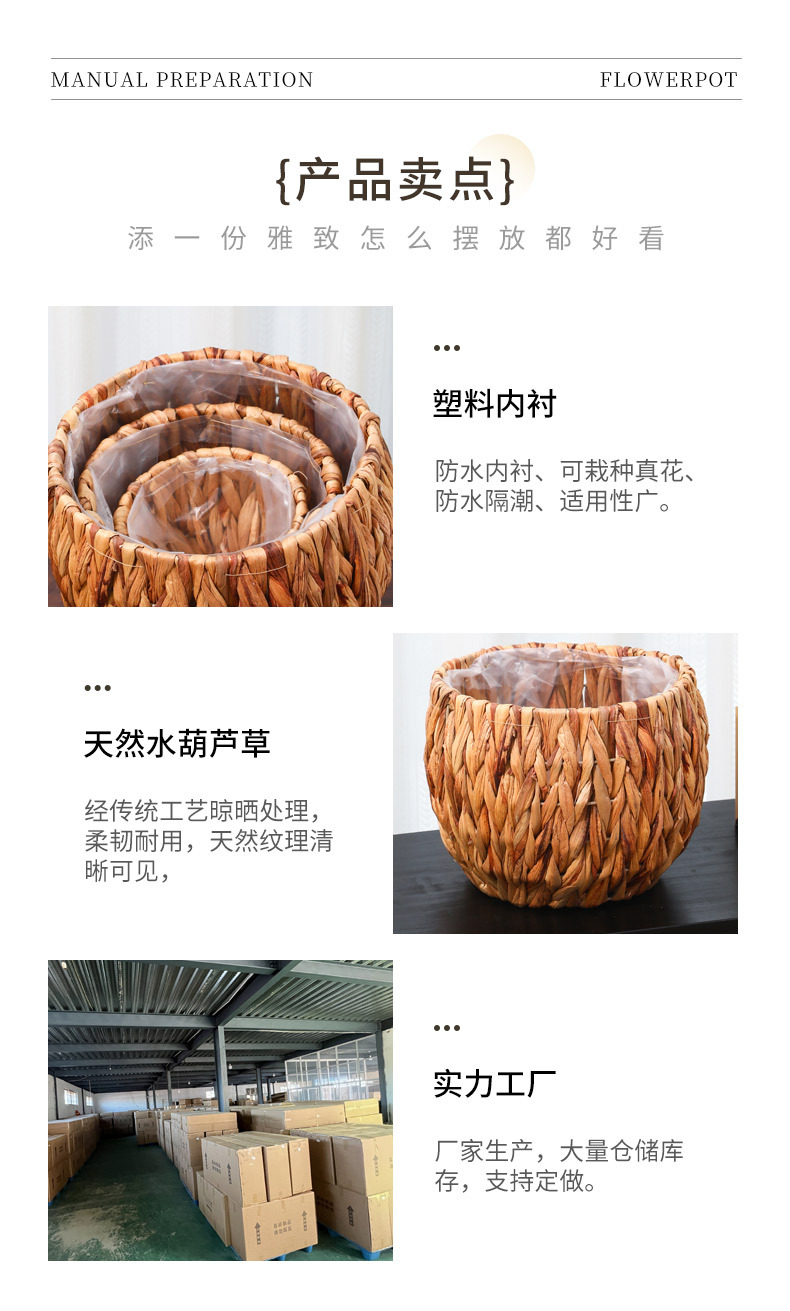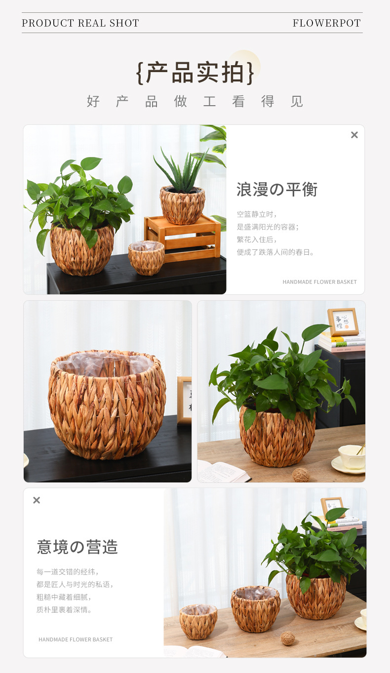 跨境草编植物装饰收纳篮阳台绿植摆件花盆编织花篮子带防水收纳筐 投诉
