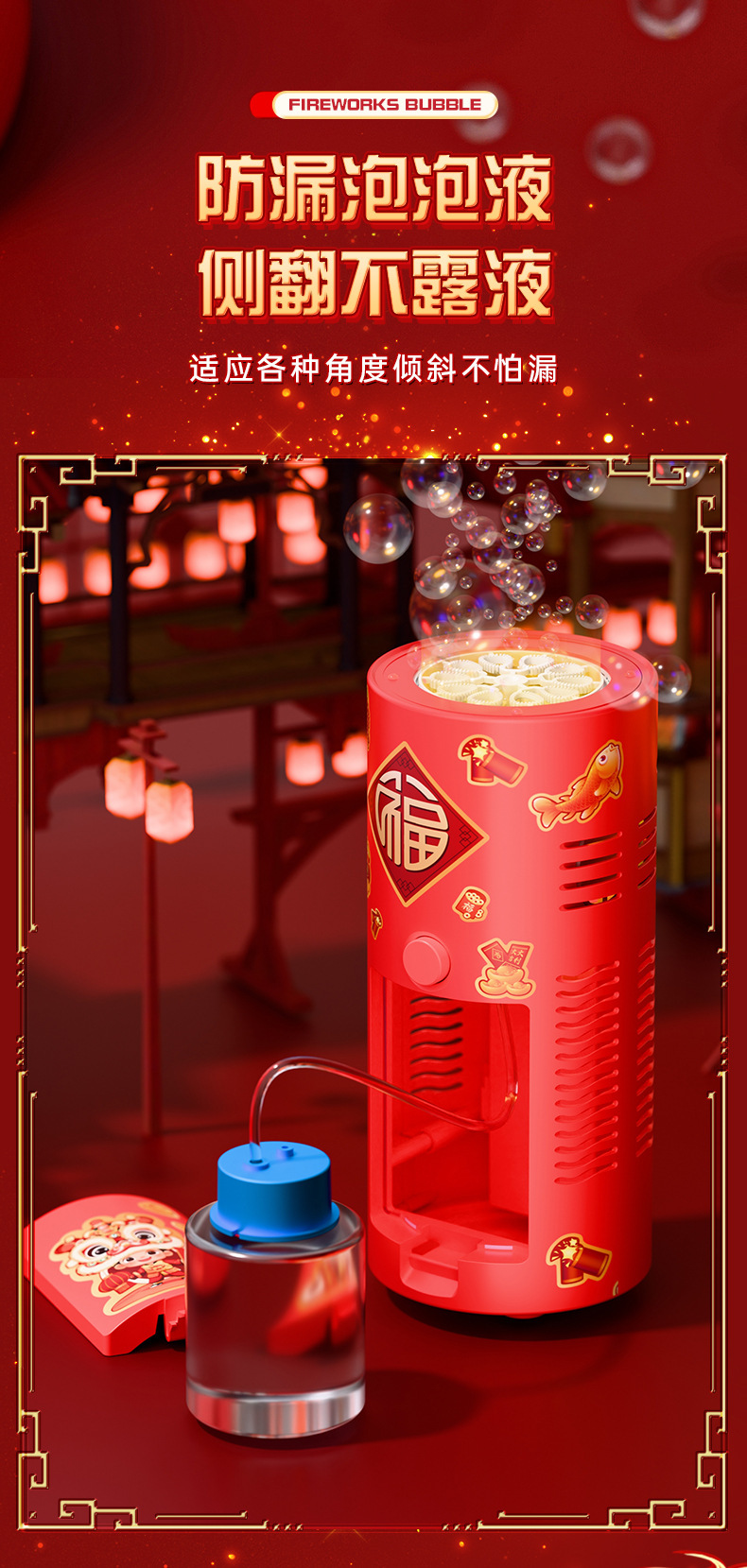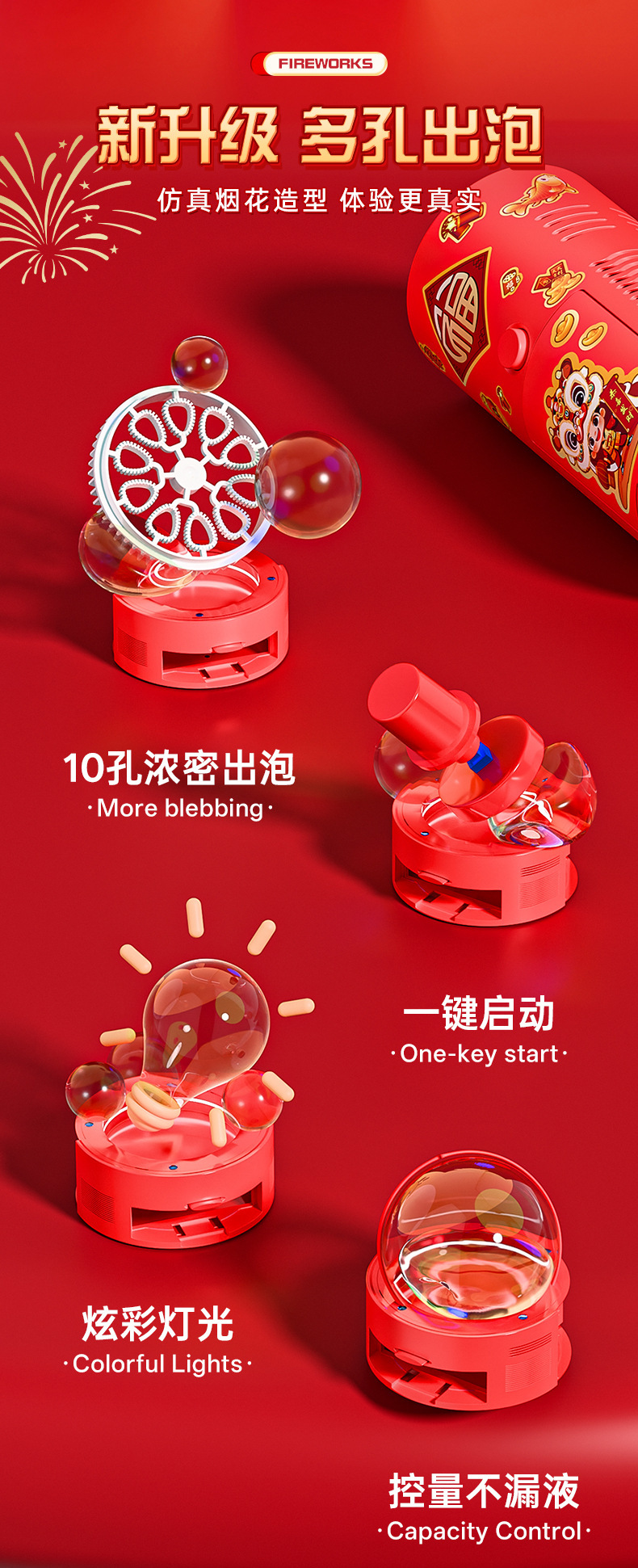 新年烟花泡泡机玩具全自动带灯光音乐电动吹泡泡儿童过年礼物礼品 English | 投诉