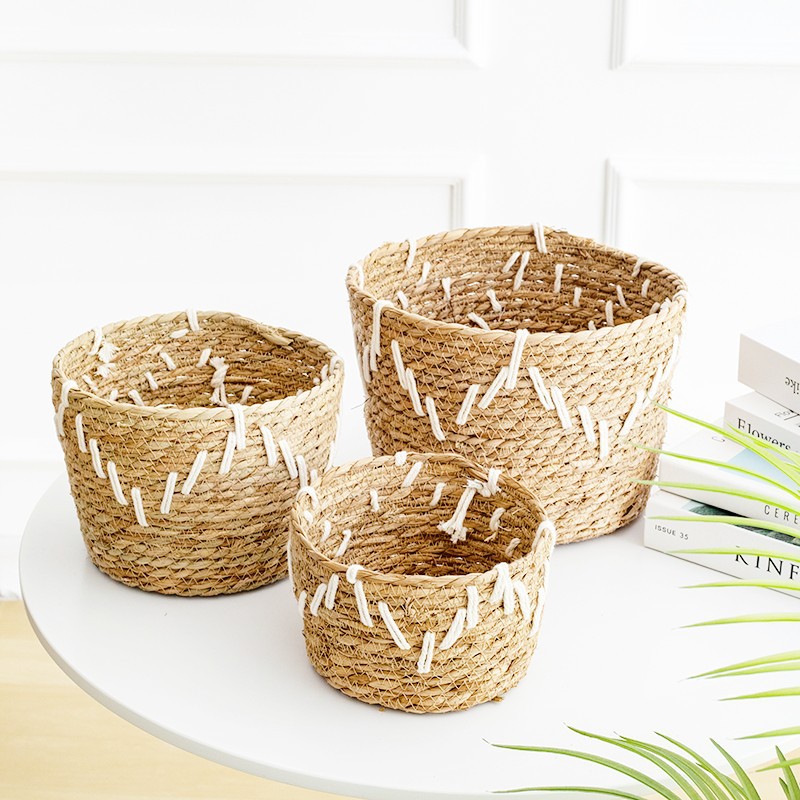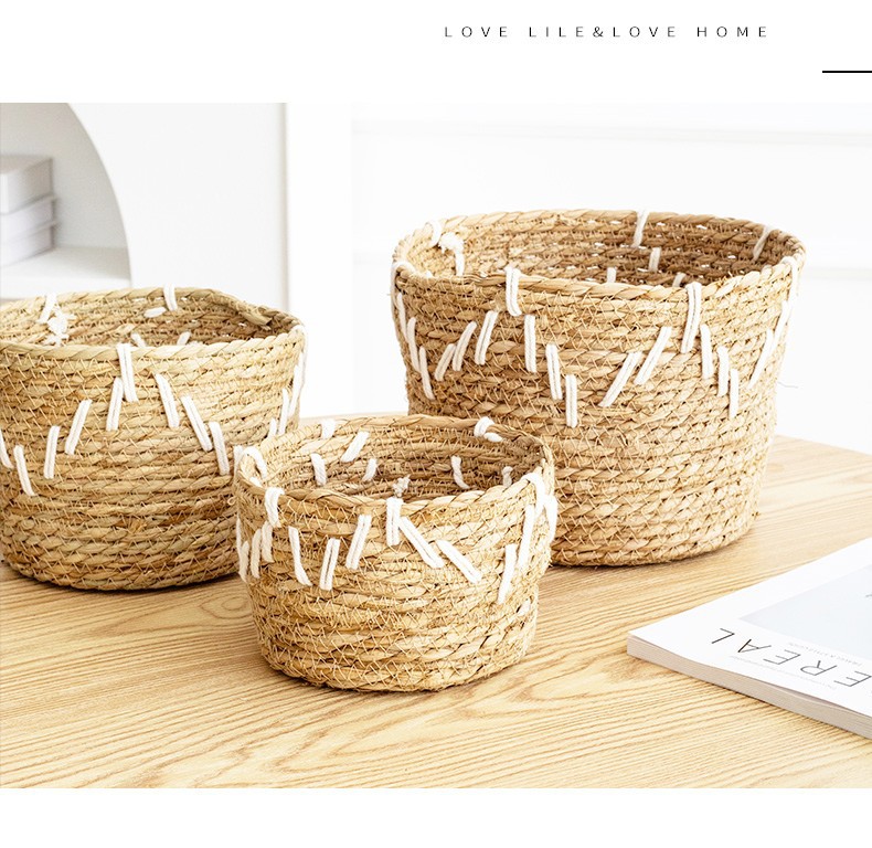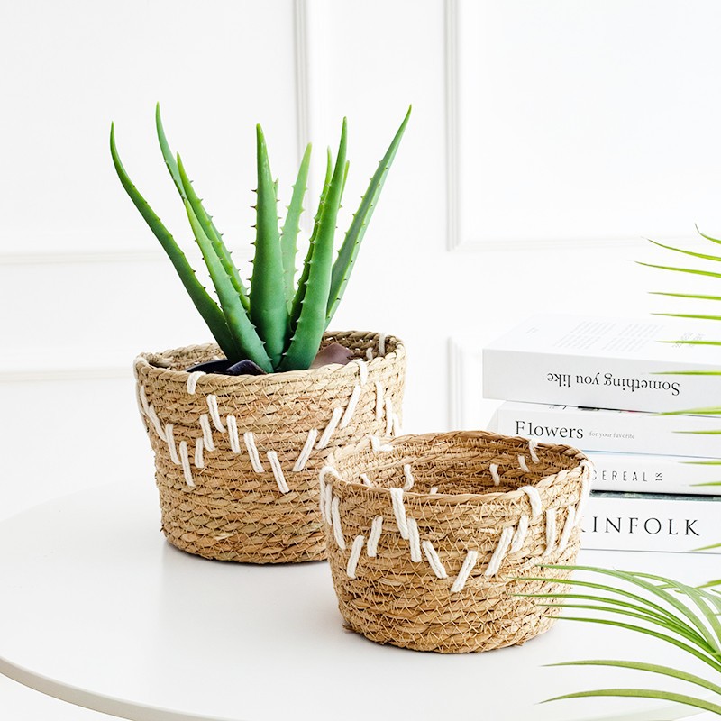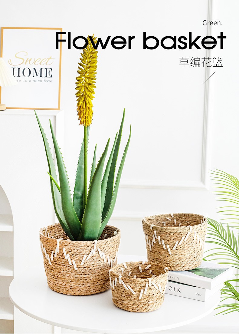 韩式风格手工编织草编花篮家居阳台种植绿植芦荟仙人掌植物套篮