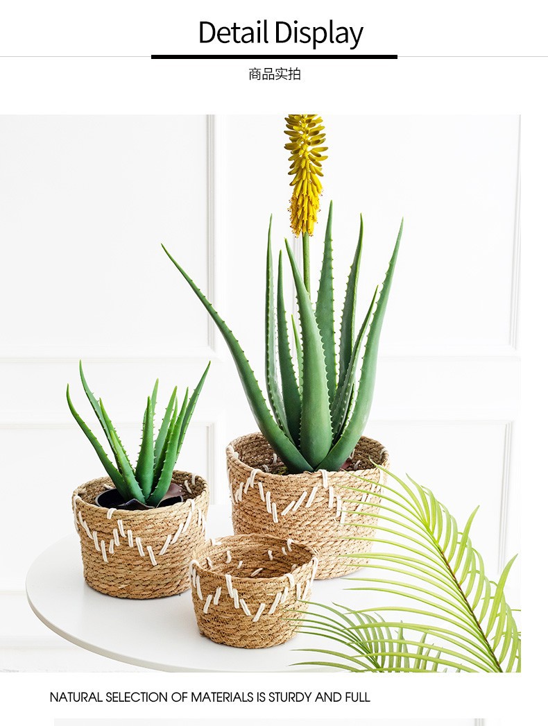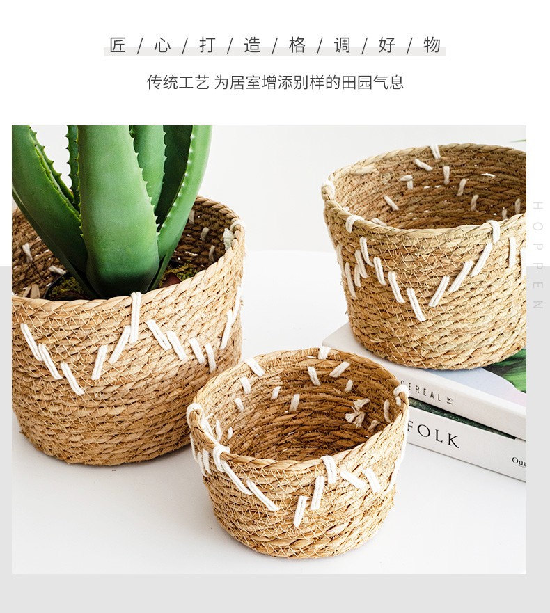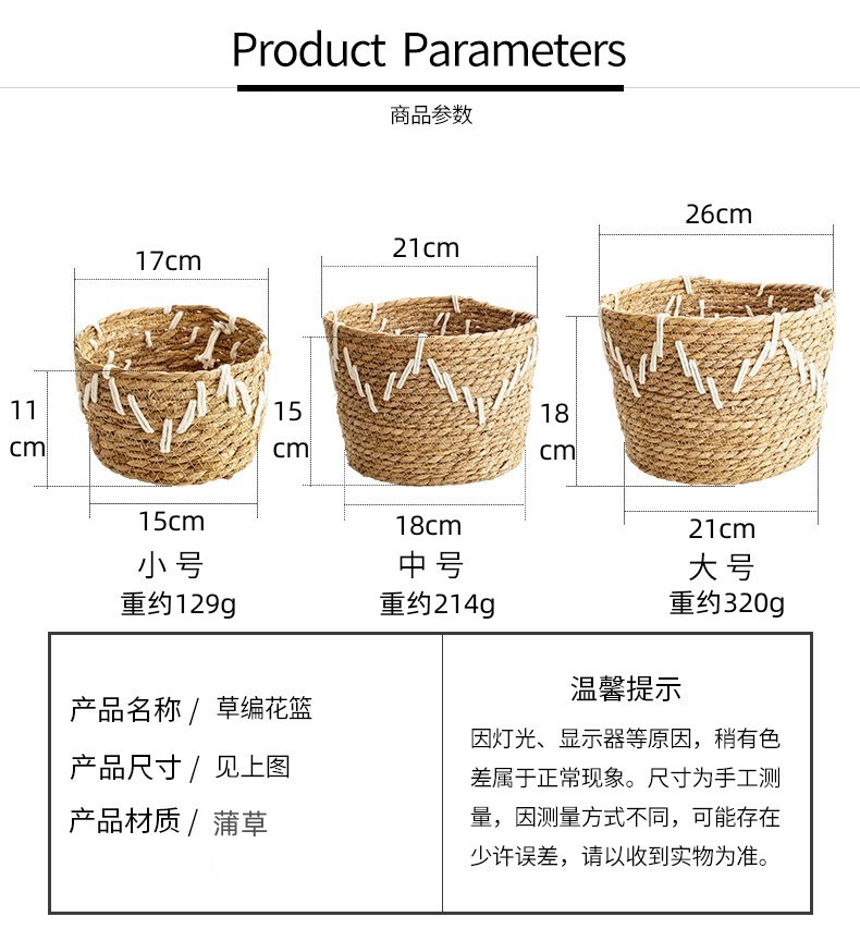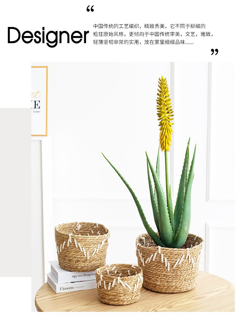 韩式风格手工编织草编花篮家居阳台种植绿植芦荟仙人掌植物套篮 投诉