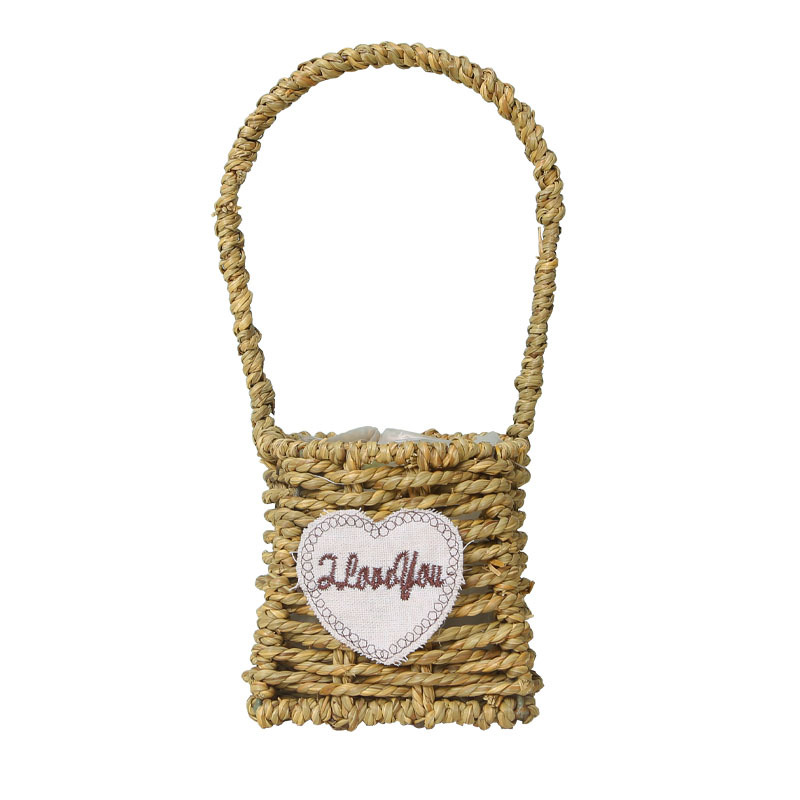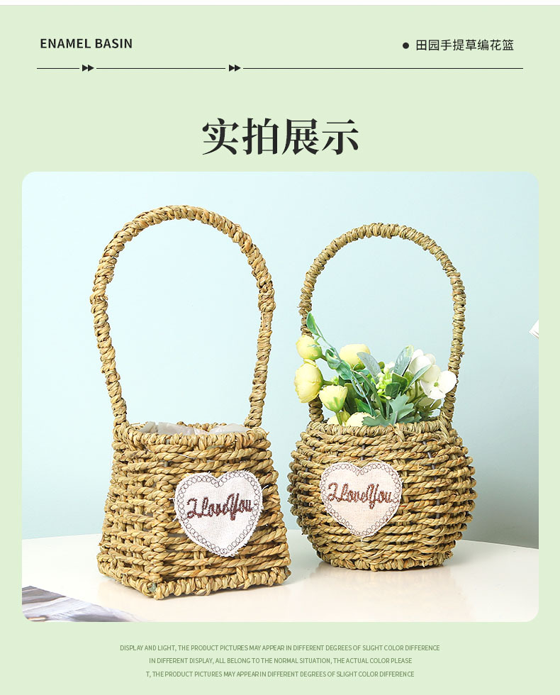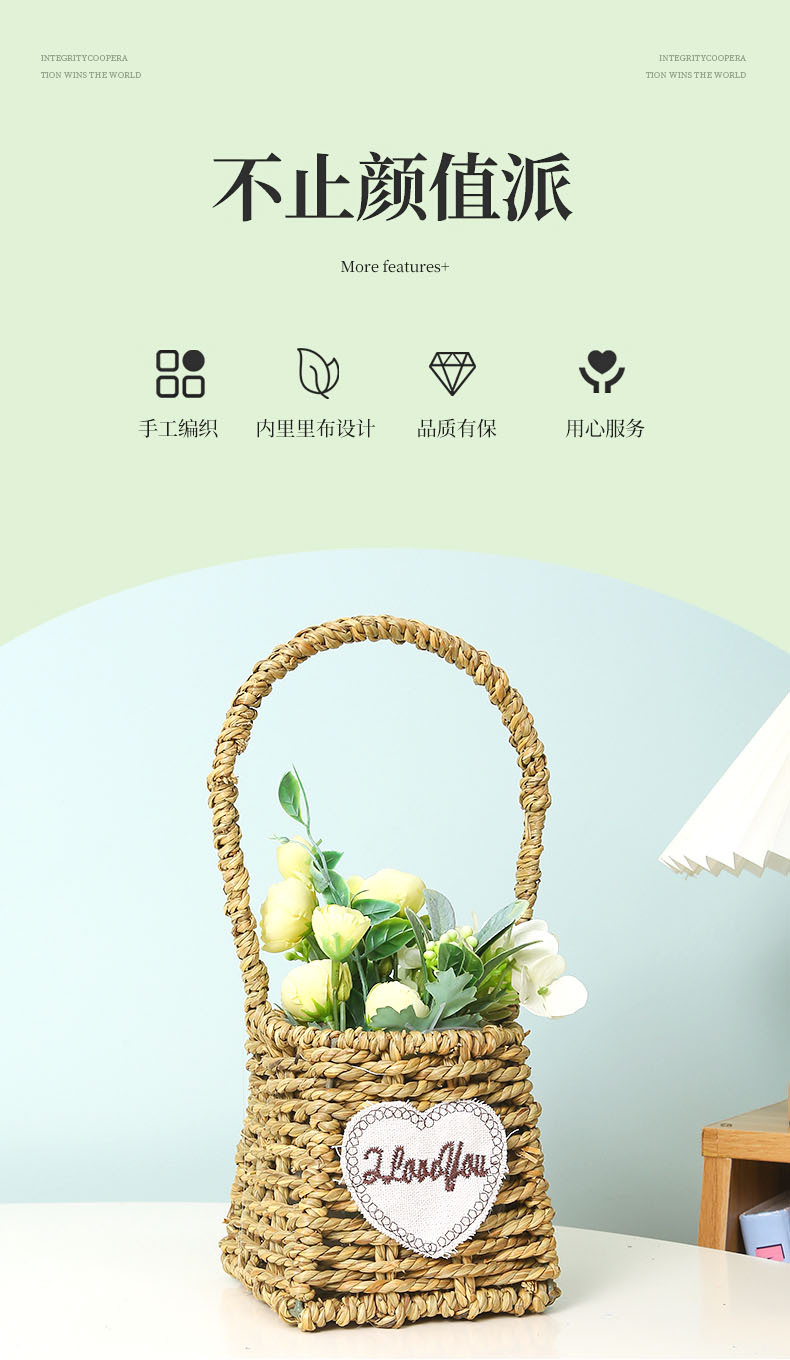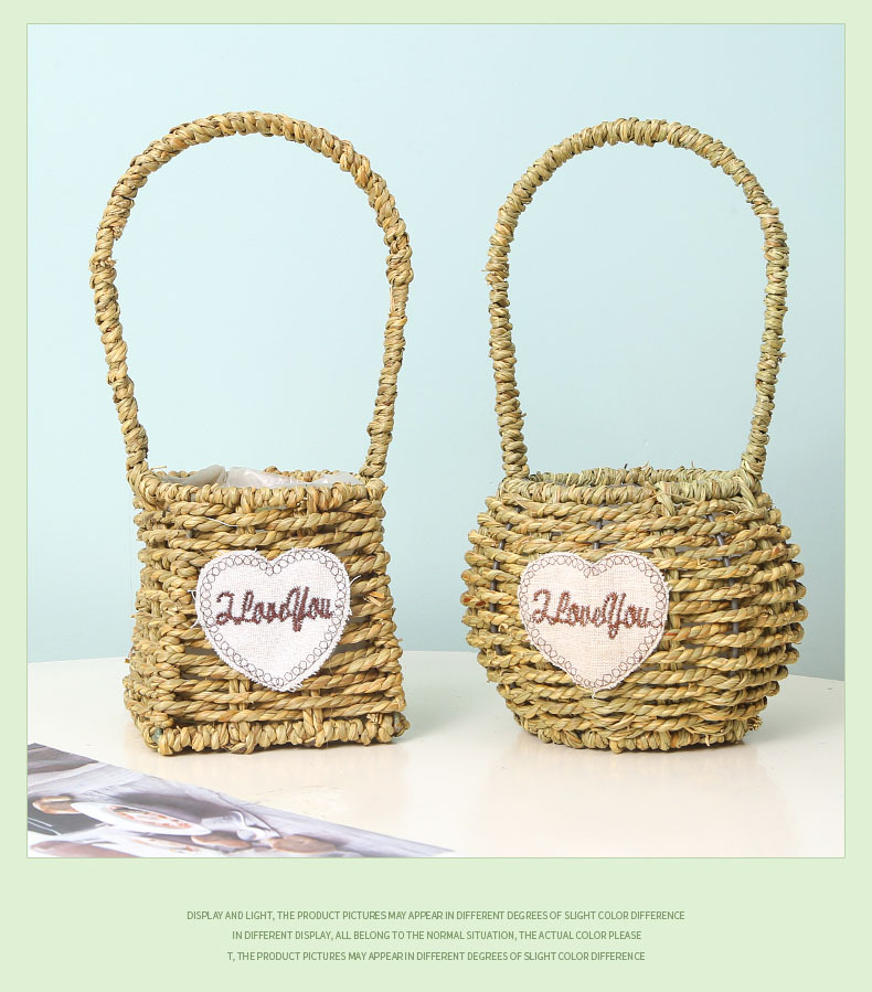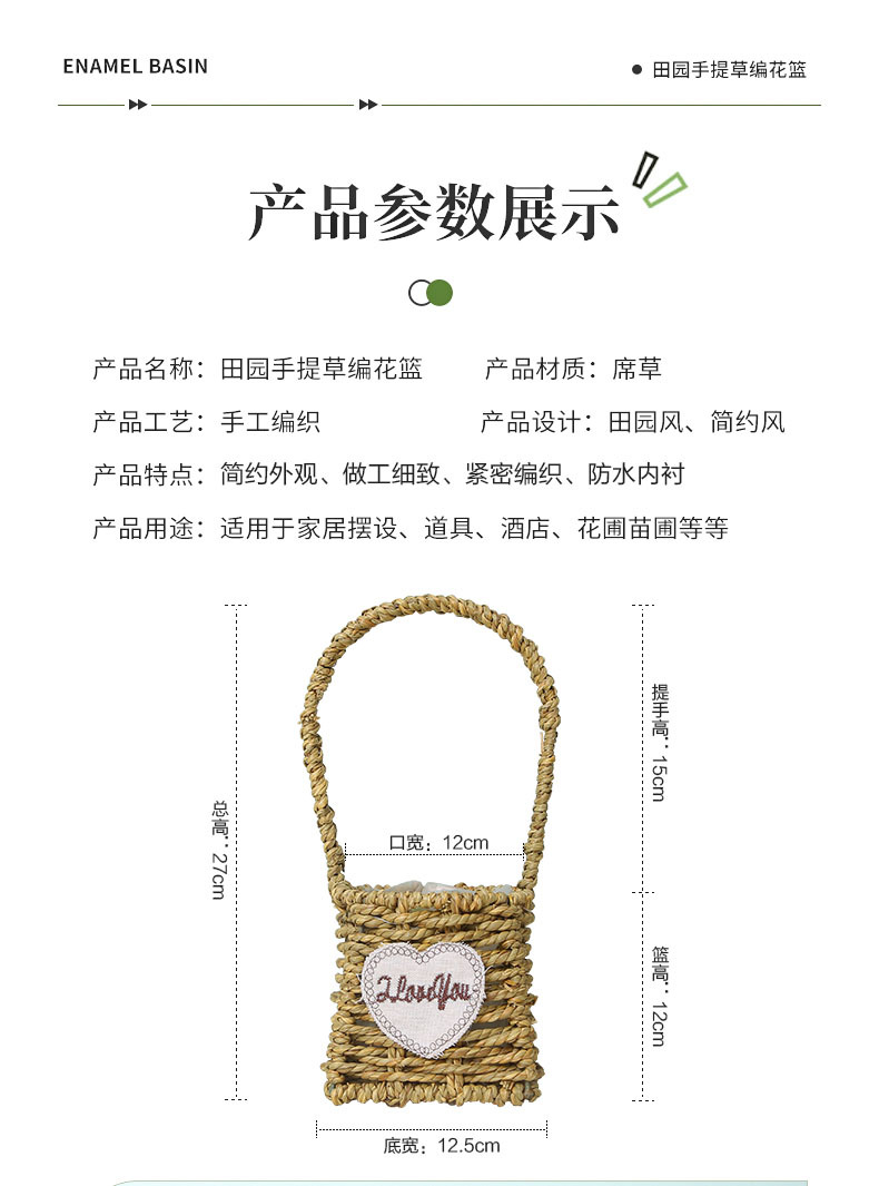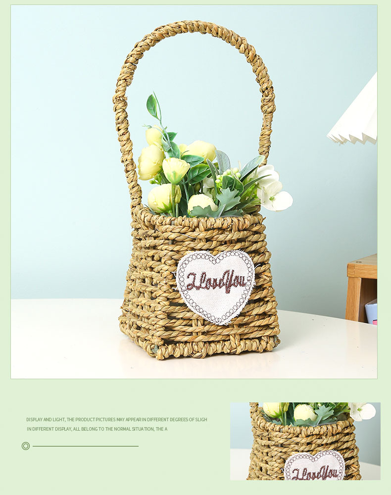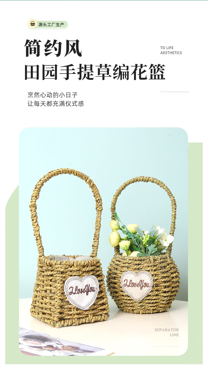 手提小花篮花店花艺插花花篮手工编织家居民宿草编装饰花篮花盆 投诉