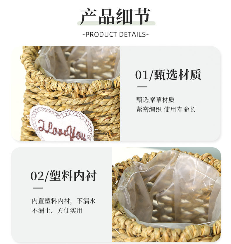材质: 草绳 特性: 牢固耐用 类型: 花篮 品牌: 愚美人 使用形式: 组合式,桌面式,落地式,吊盆式 应用场景: 办公室,酒店,家居摆设,商场,家庭园艺, 工艺: 草编 是否进口: 否 风格: 田园 货号: 其他