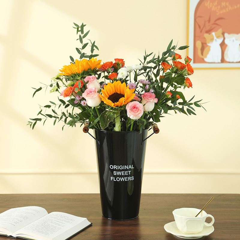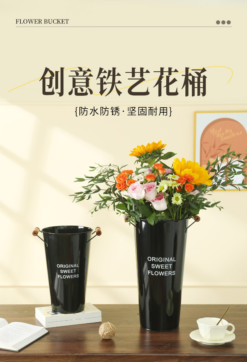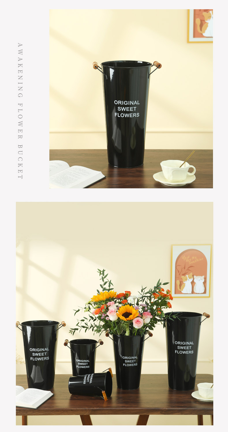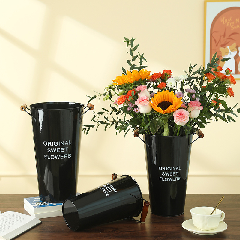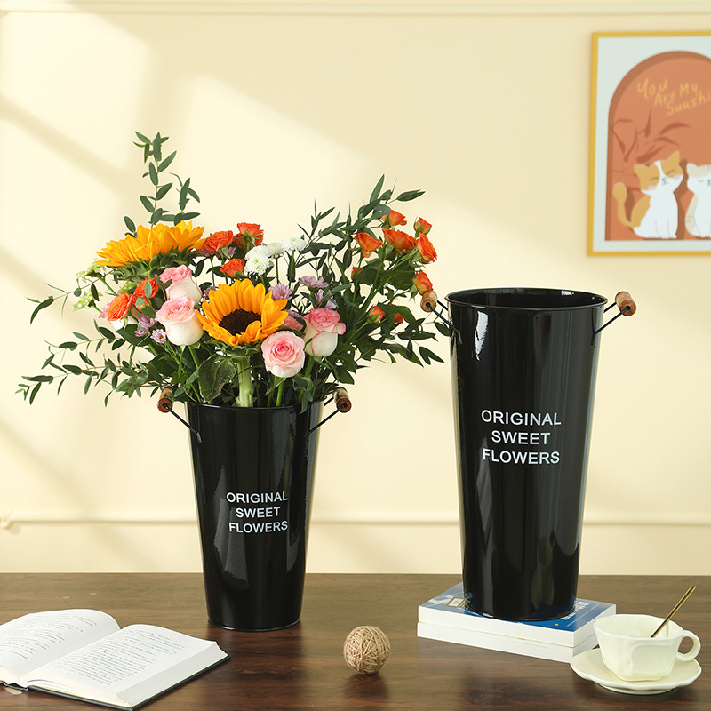 美式铁皮花桶鲜花桶花店创意插花桶客厅干花假花装饰桶家用醒花桶