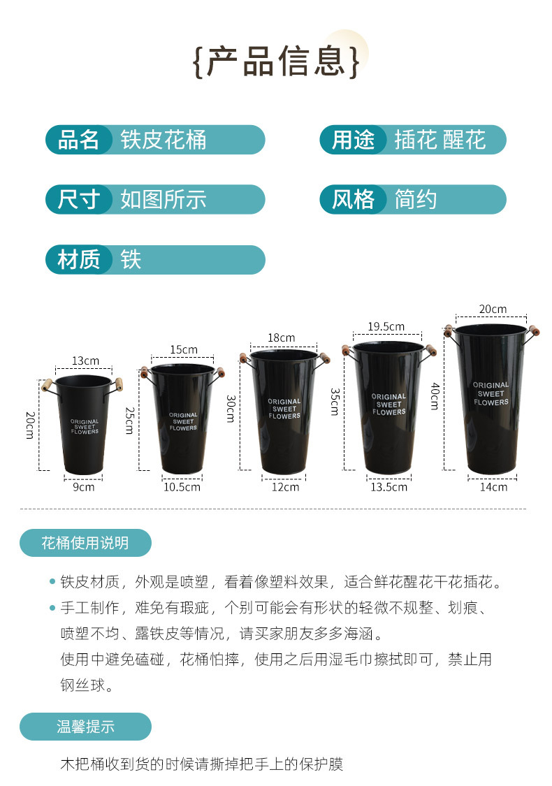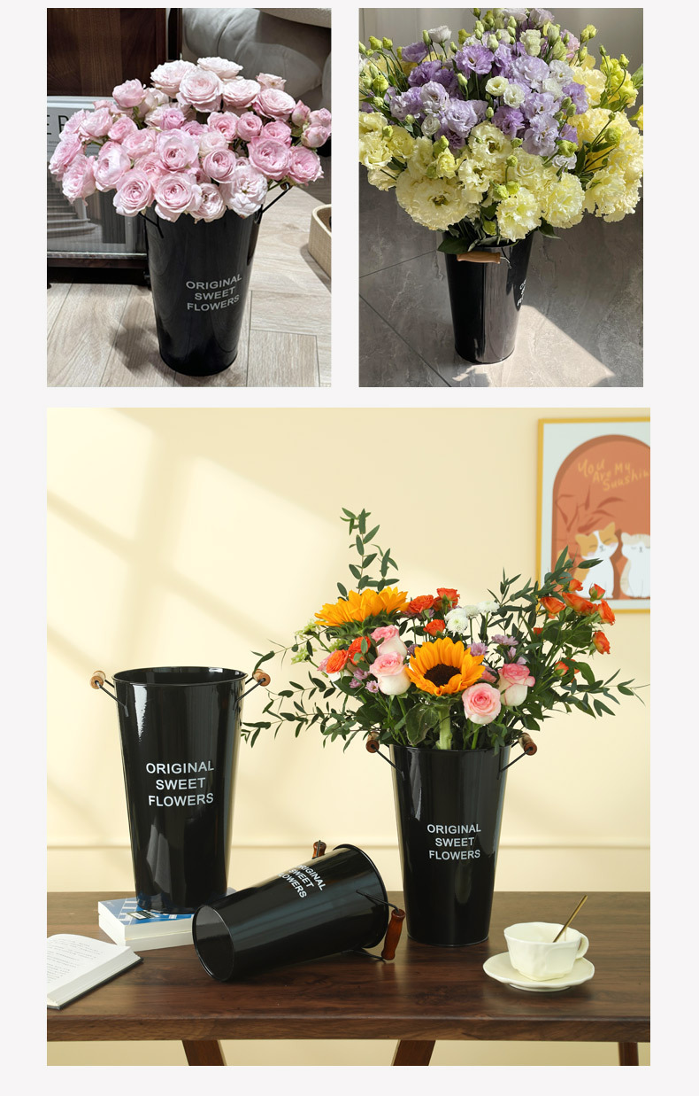 美式铁皮花桶鲜花桶花店创意插花桶客厅干花假花装饰桶家用醒花桶 投诉