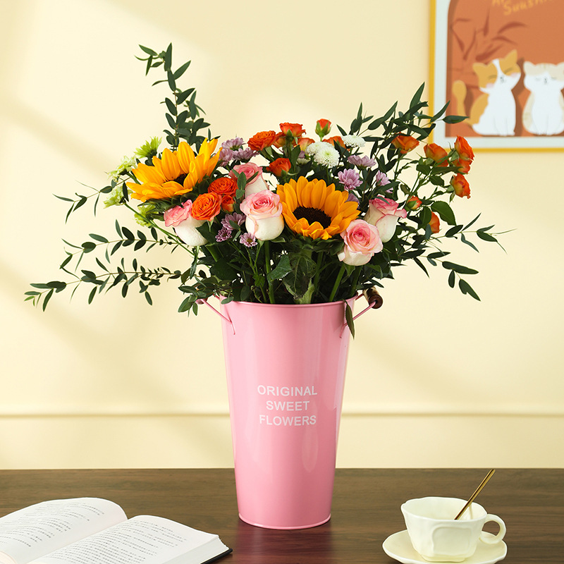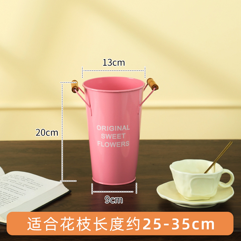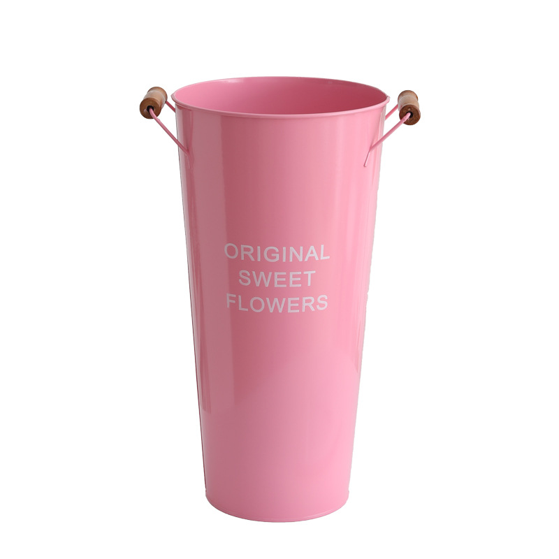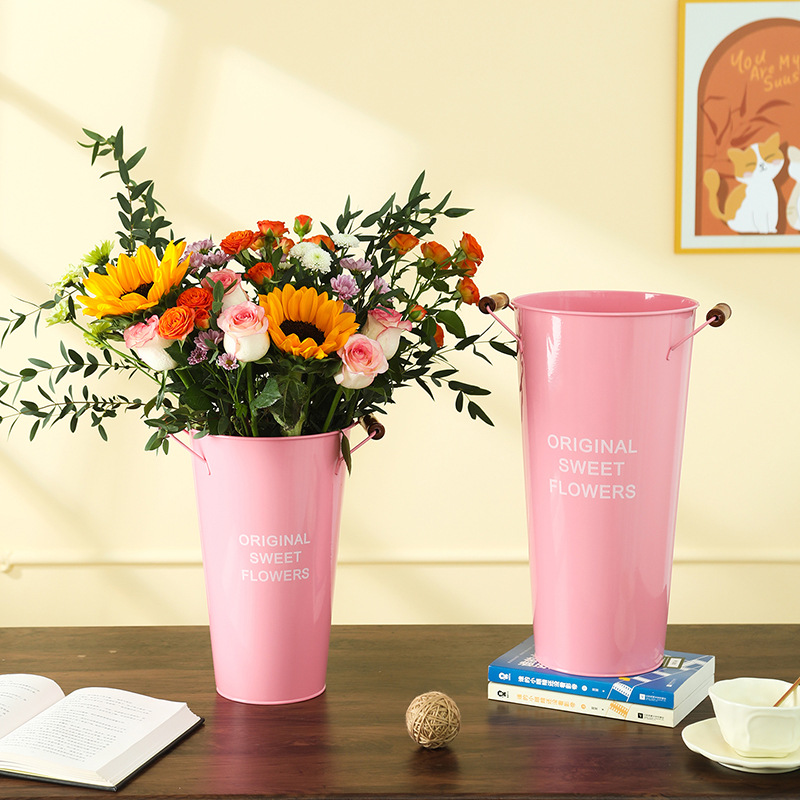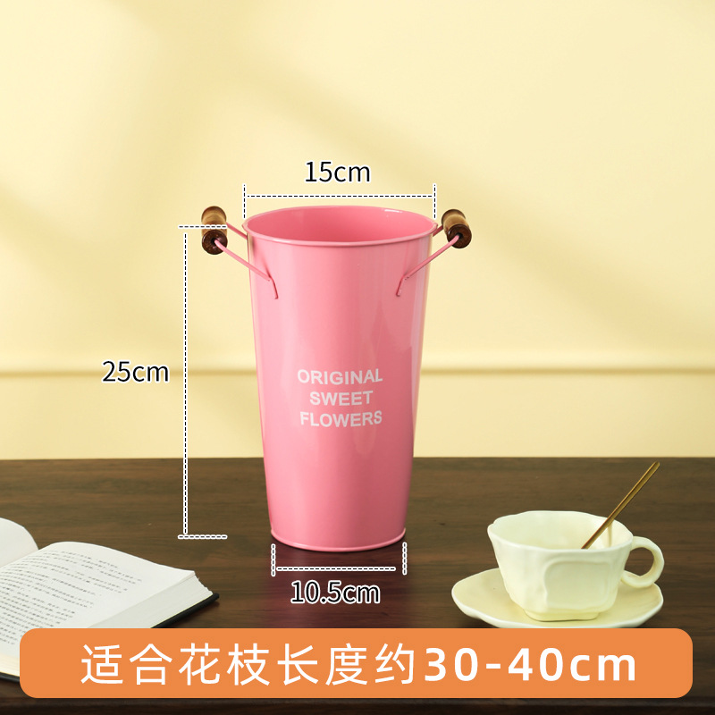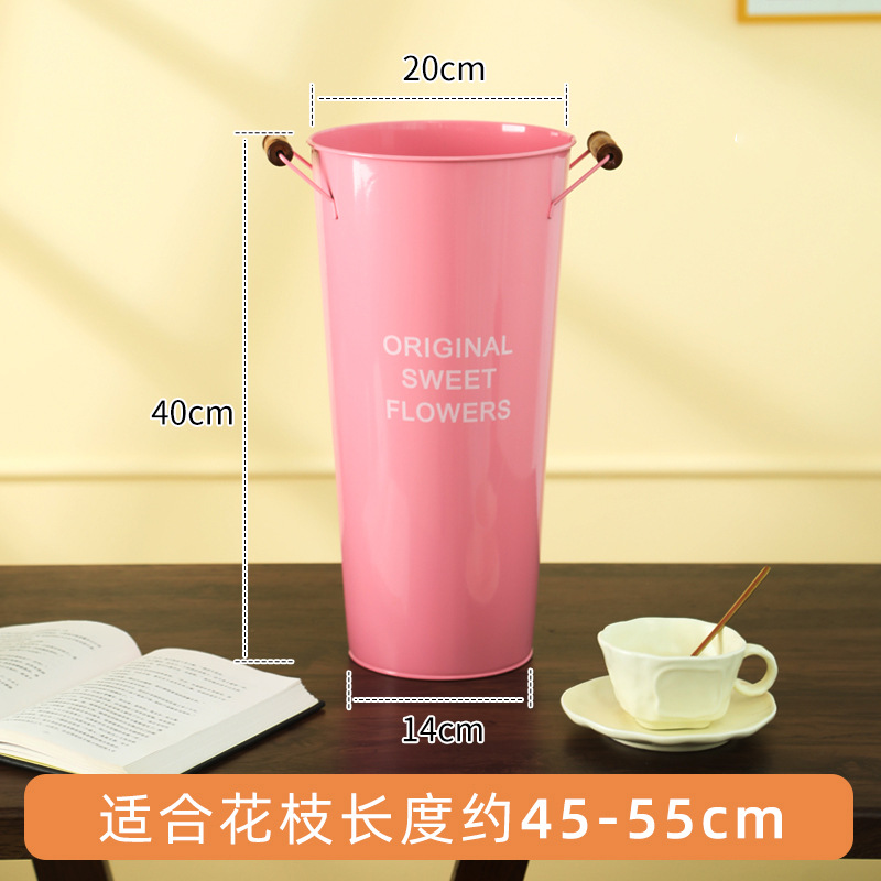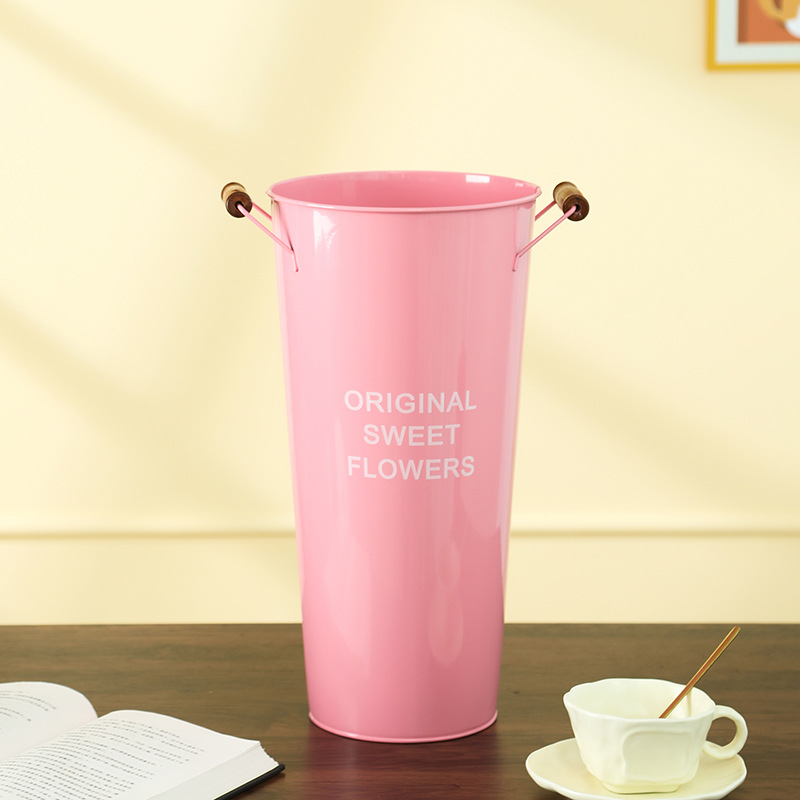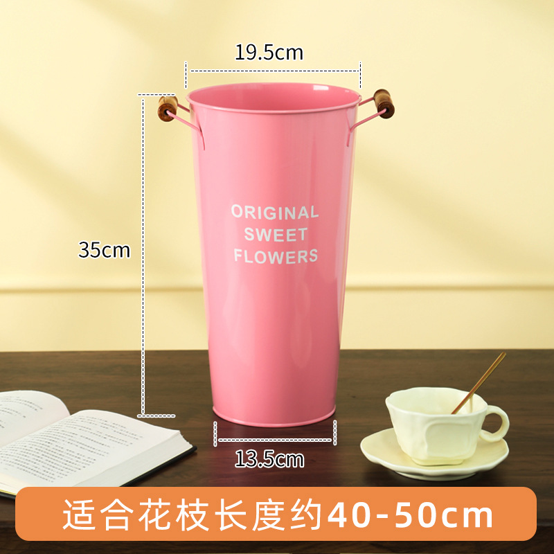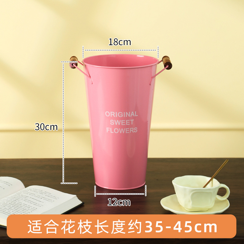 北欧风家用木把粉醒花桶花店鲜花花桶装饰铁皮插花深水养花大花