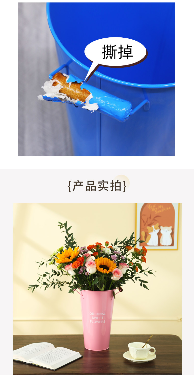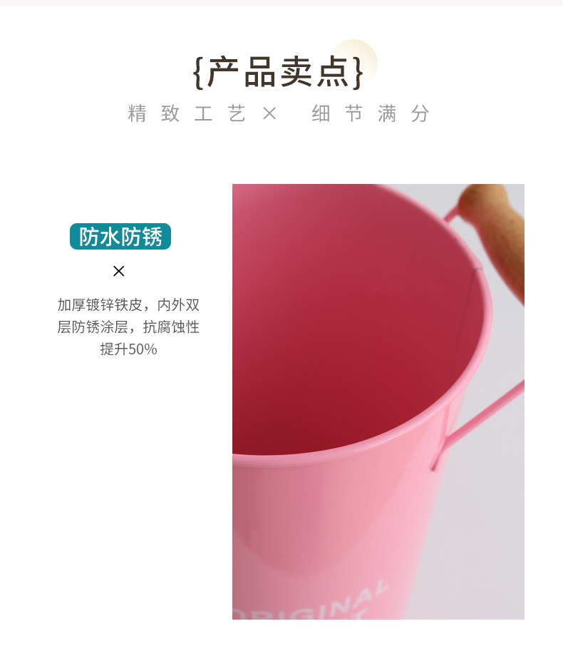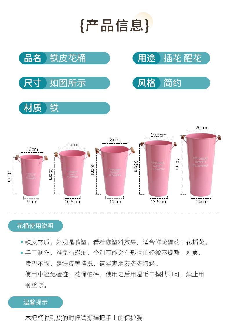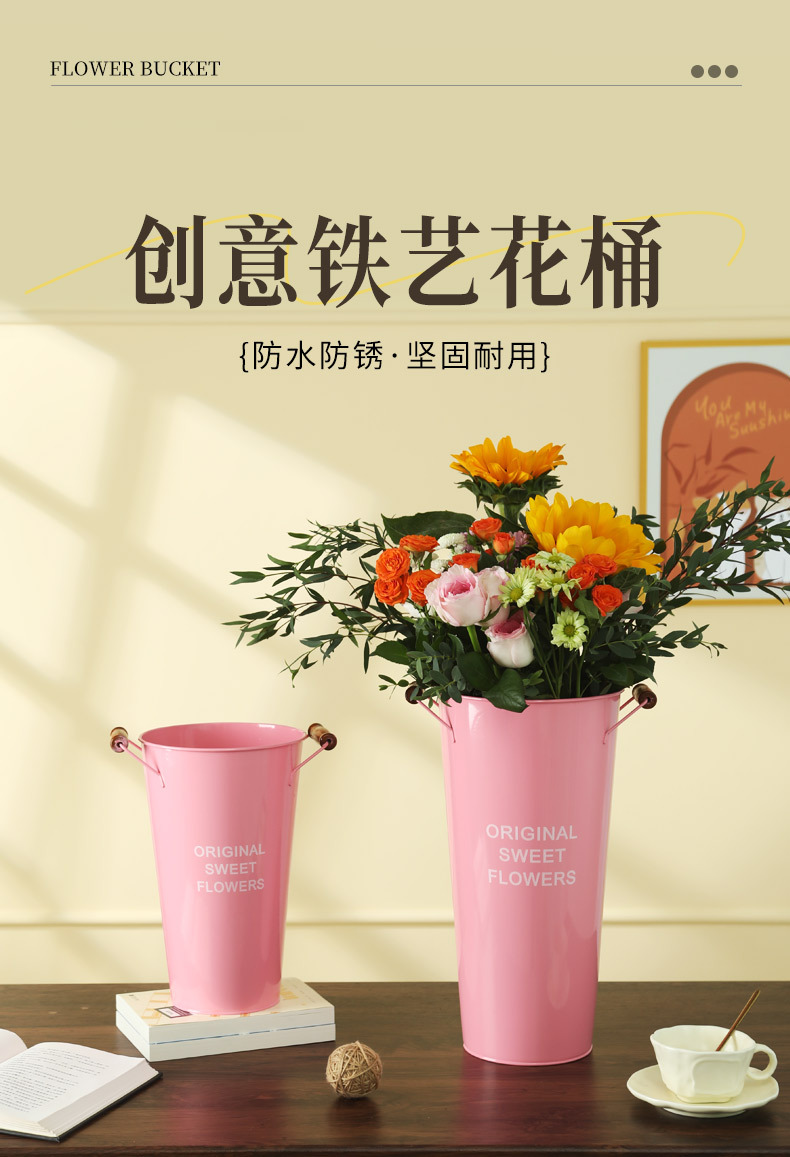 北欧风家用木把粉醒花桶花店鲜花花桶装饰铁皮插花深水养花大花 投诉