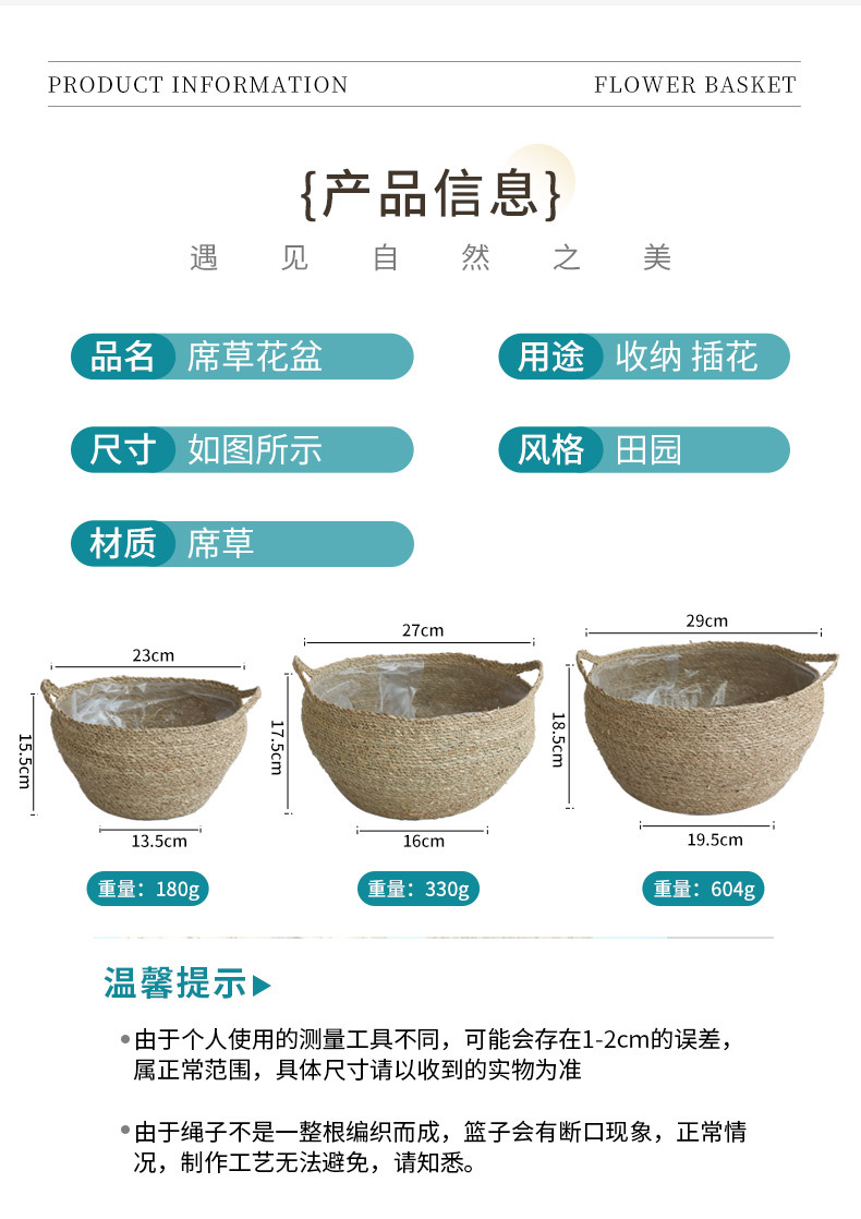 新款草编编织篮花盆套盆编织简约藤编花篮室内绿植盆假花装饰盆 投诉