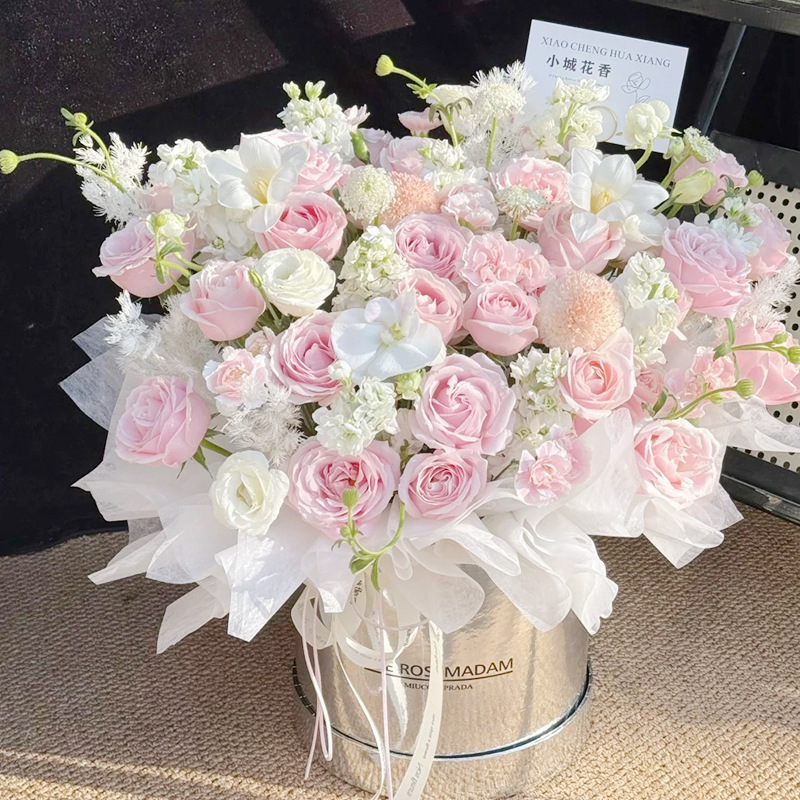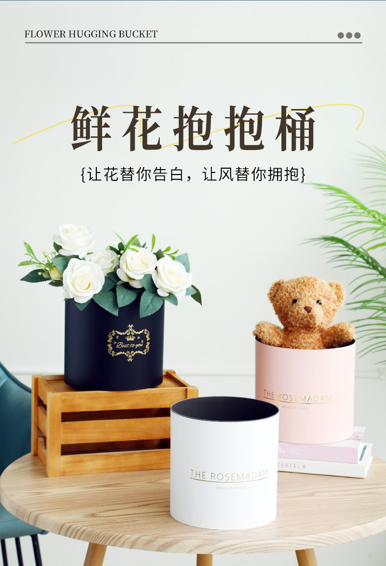跨境新款抱抱桶网红花束花艺插花盒礼盒鲜花包装盒空盒子白搭时尚
