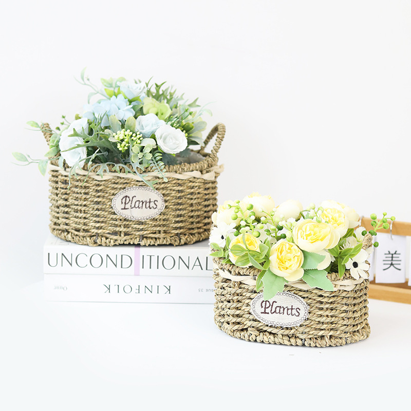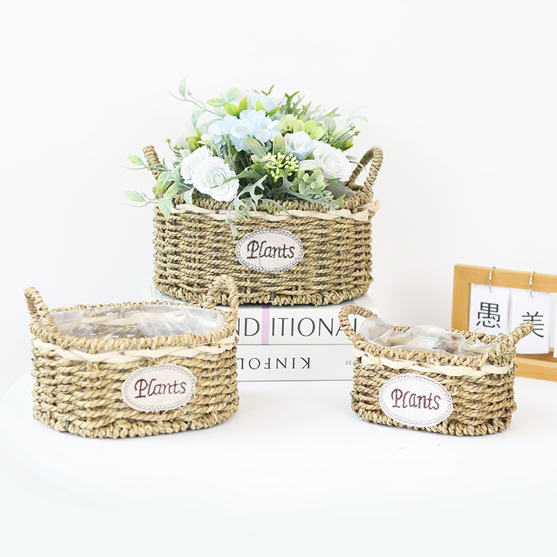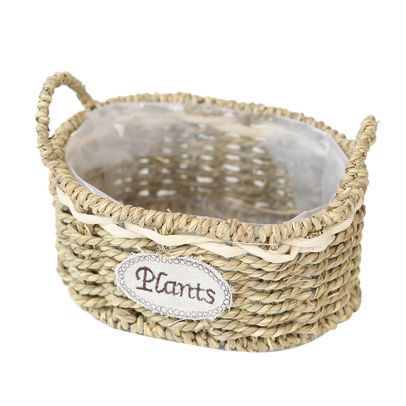 定制田园草编椭圆形花篮花店鲜花插花篮阳台创意多肉绿植种植花盆