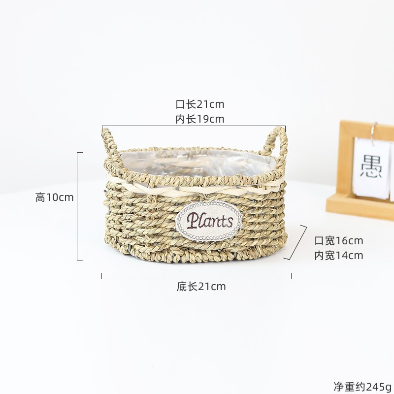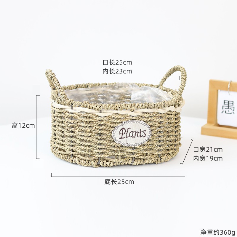 材质: 草编 特性: 其他 类型: 花盆 品牌: 愚美人 使用形式: 桌面式,落地式 应用场景: 家居摆设,阳台菜园 是否进口: 否 风格: 田园 货号: 椭圆形草编双耳花篮 颜色: 草编花盆-椭圆双耳小号,草编花盆-椭圆双