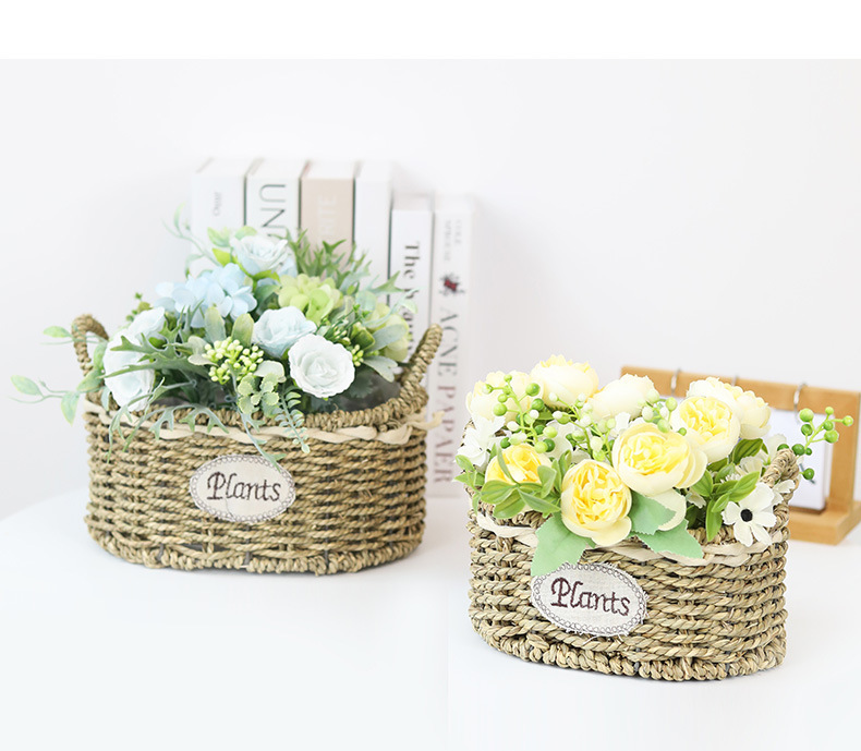 定制田园草编椭圆形花篮花店鲜花插花篮阳台创意多肉绿植种植花盆 投诉