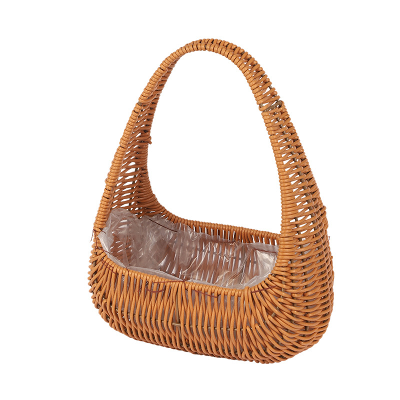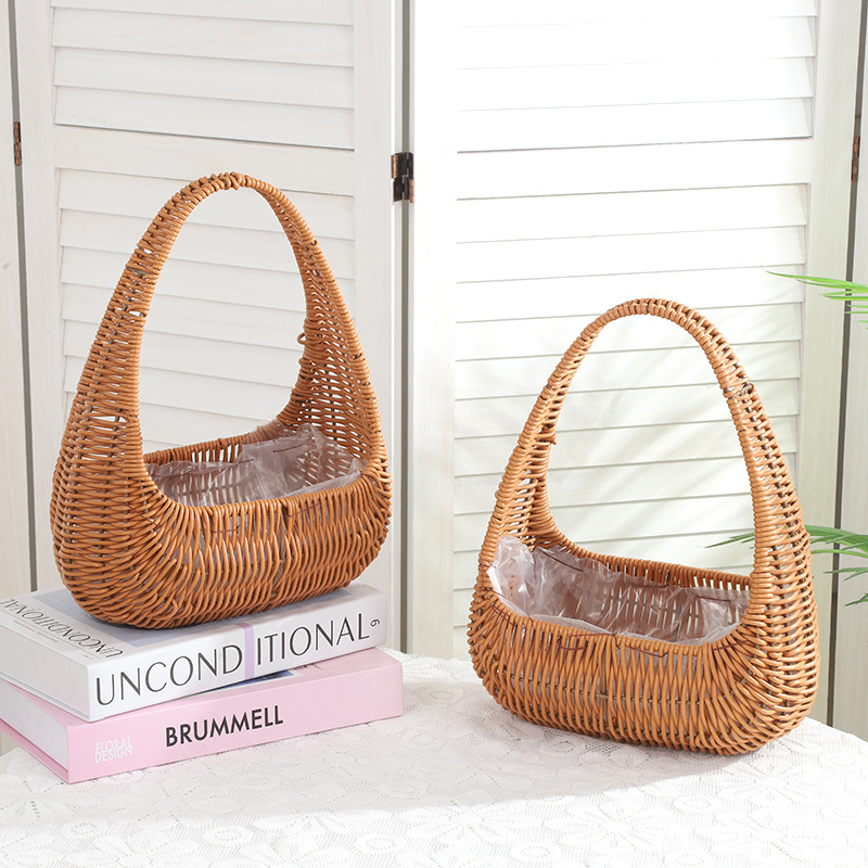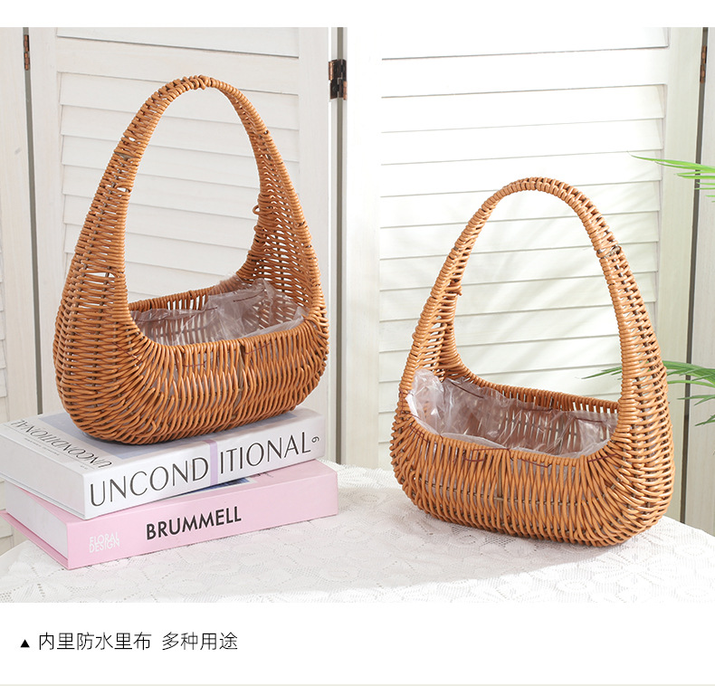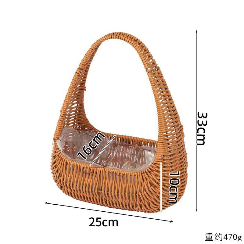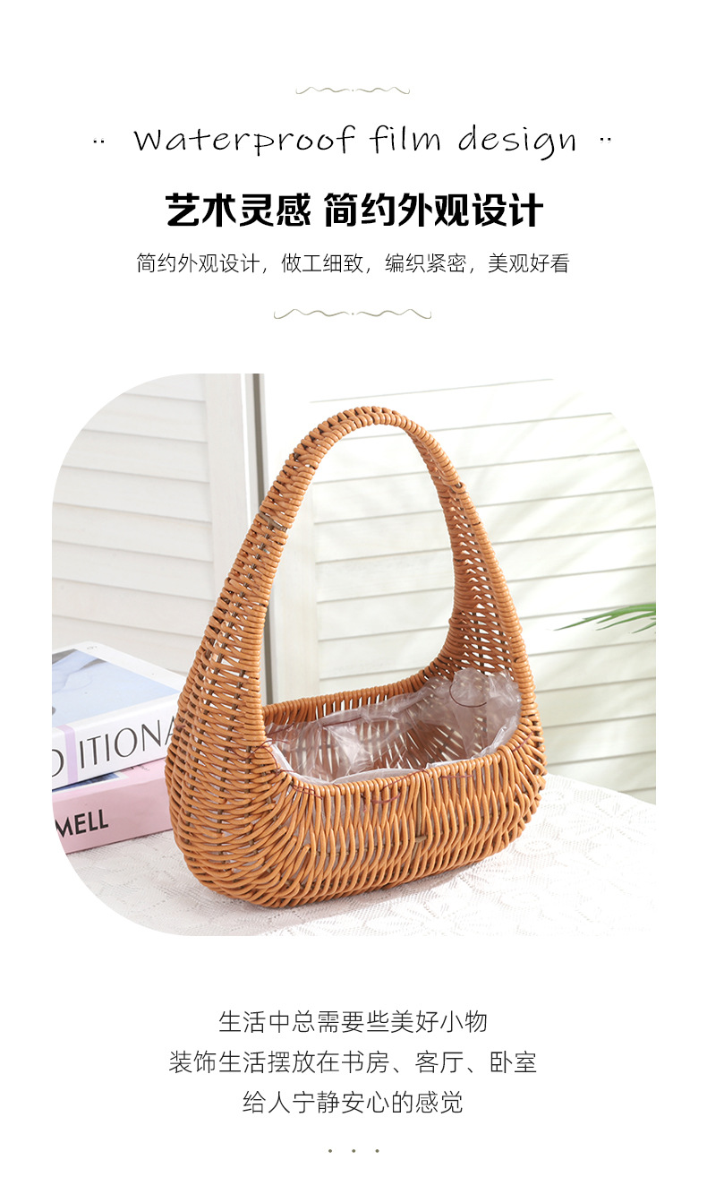 塑料仿藤编手提花篮花店节日鲜花花束插花篮野餐收纳篮子橱窗提篮