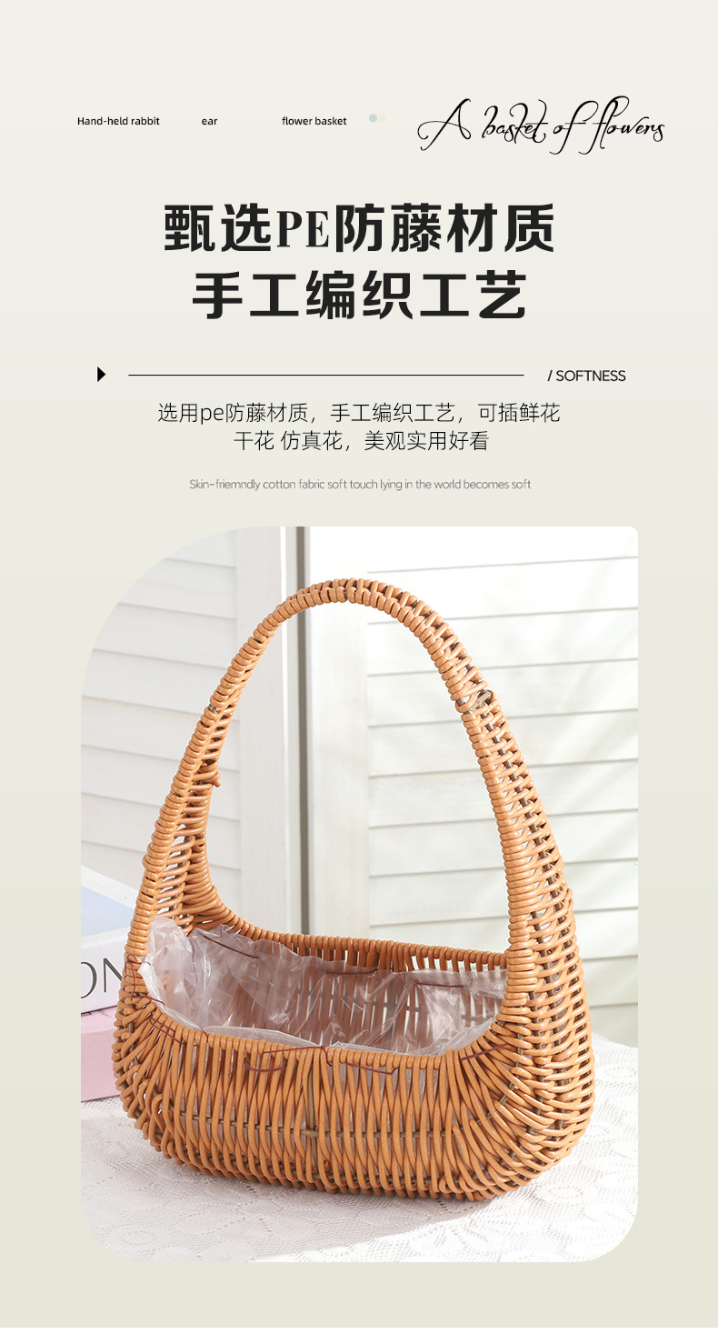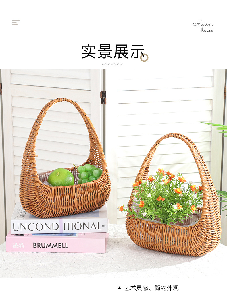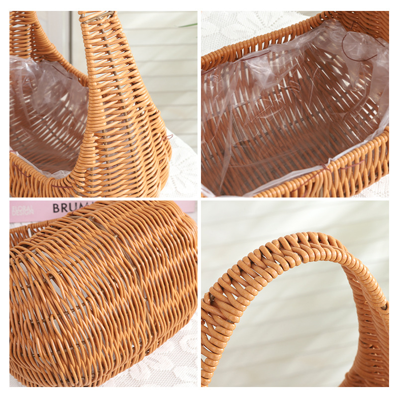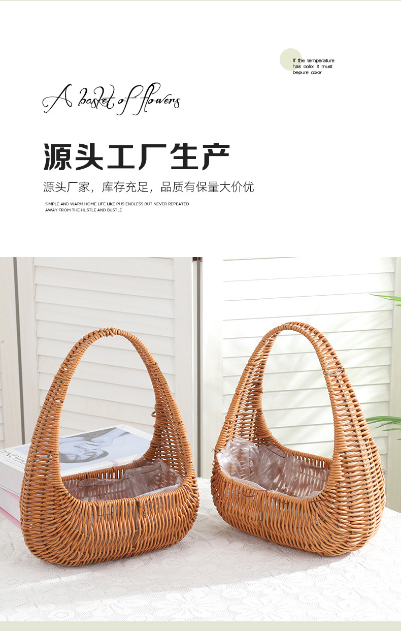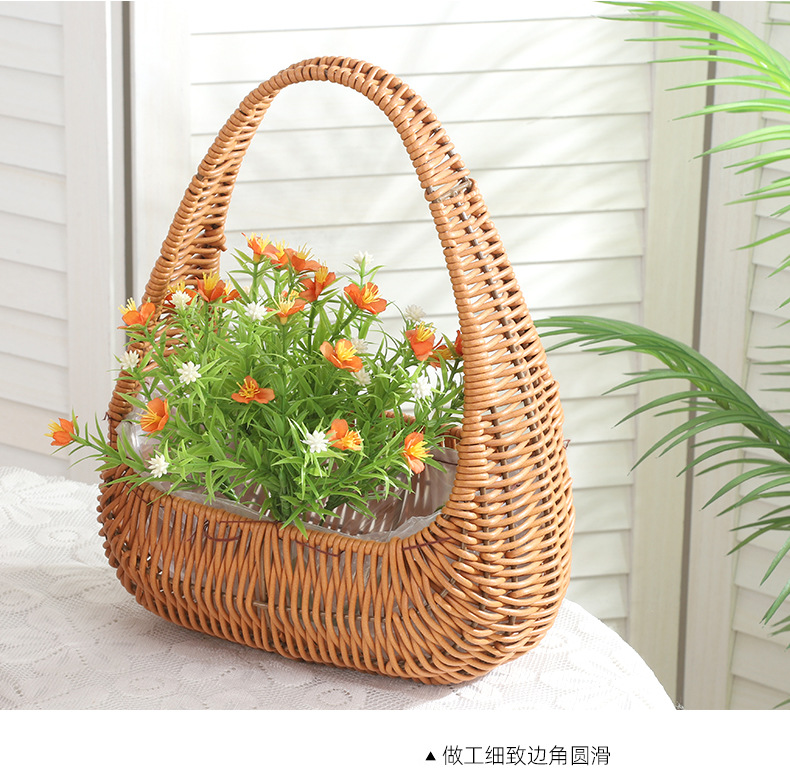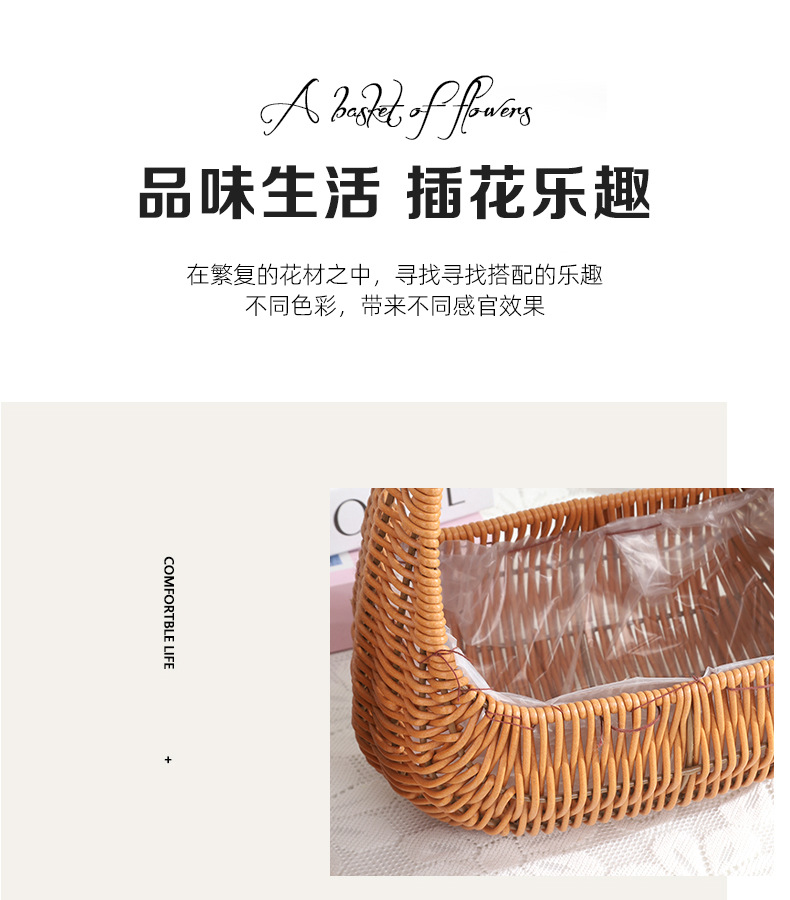 塑料仿藤编手提花篮花店节日鲜花花束插花篮野餐收纳篮子橱窗提篮 投诉