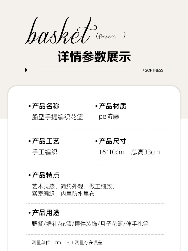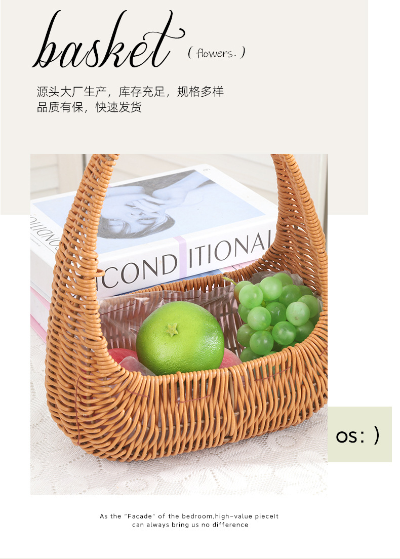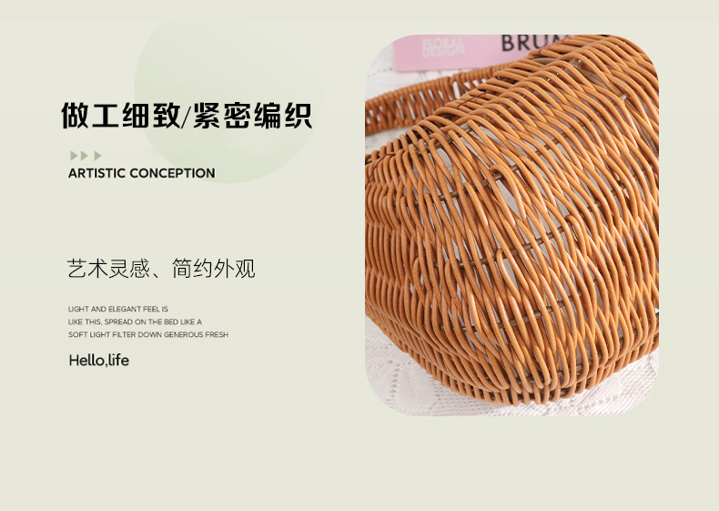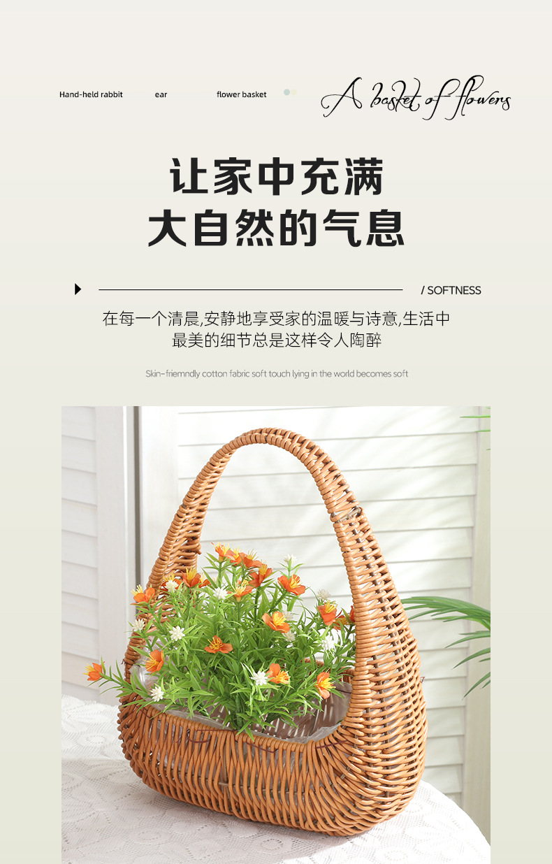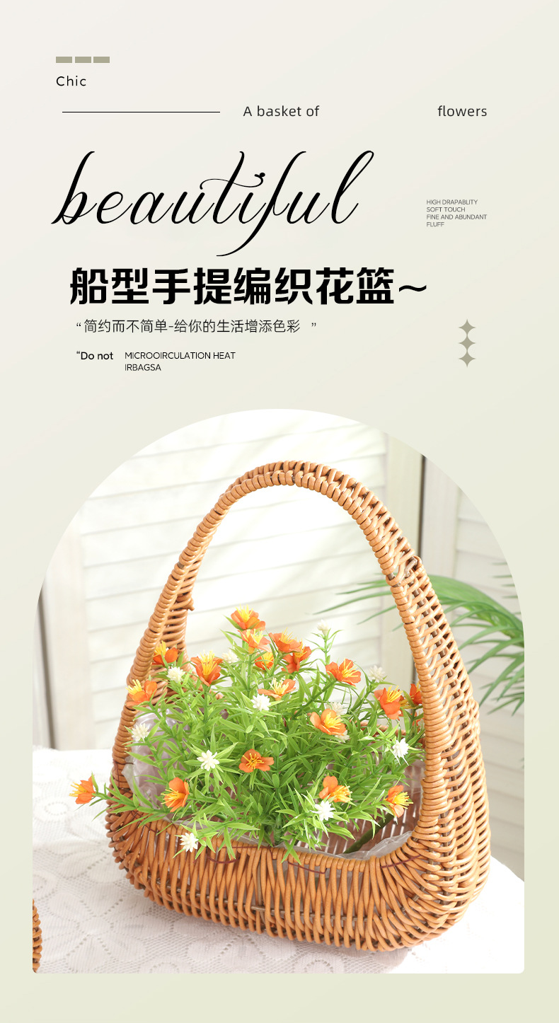 塑料仿藤编手提花篮花店节日鲜花花束插花篮野餐收纳篮子橱窗提篮 投诉