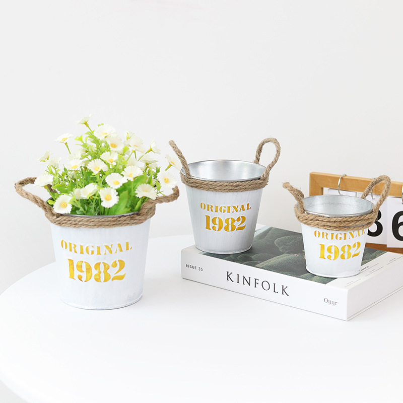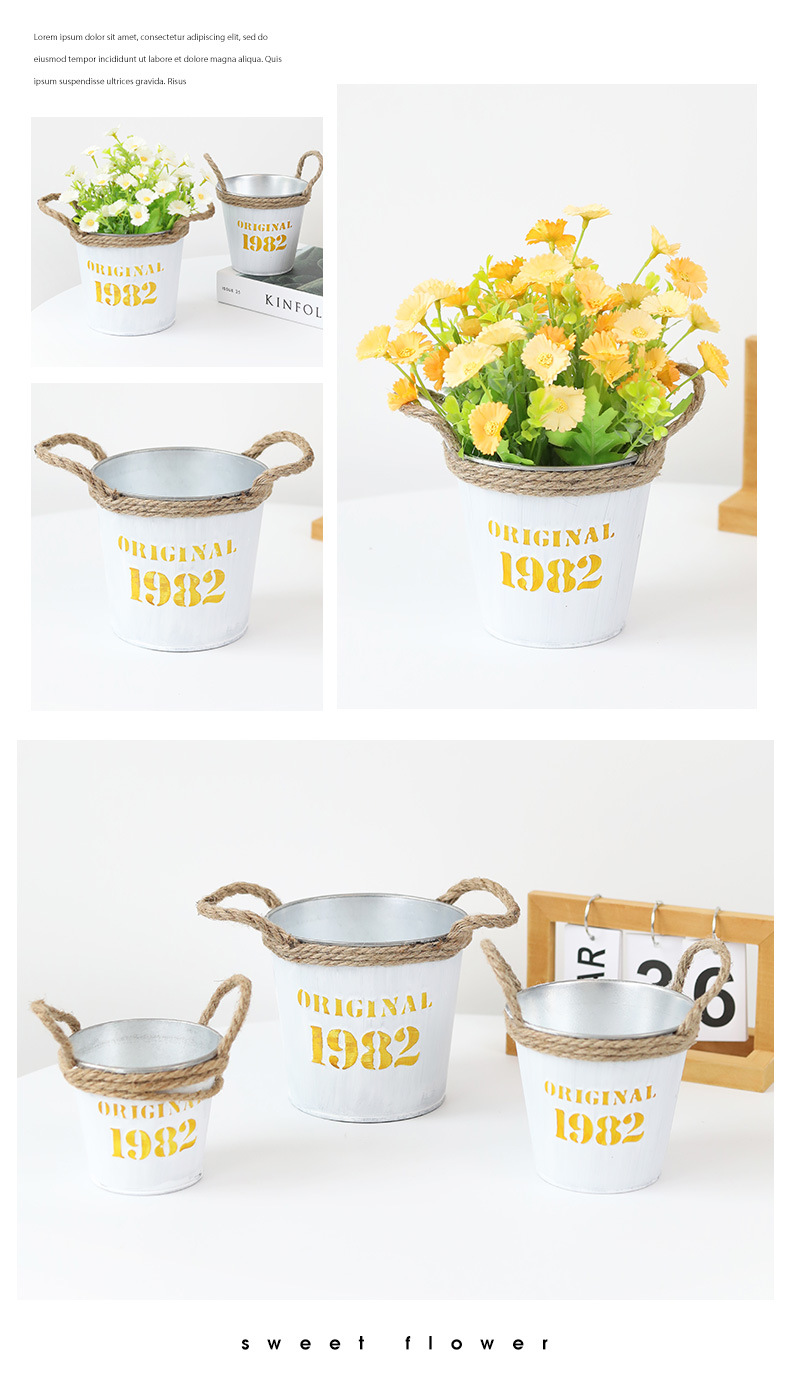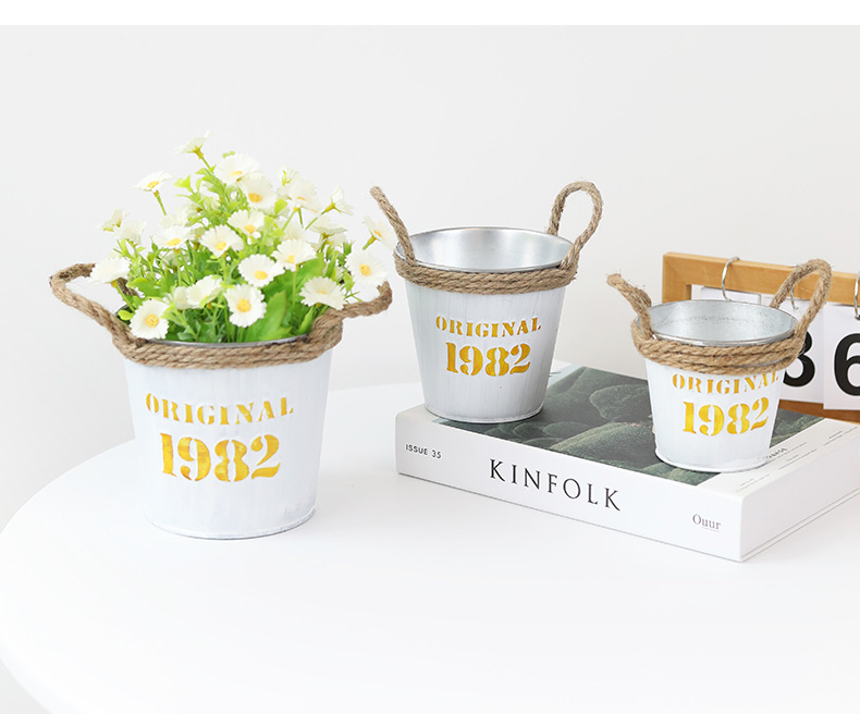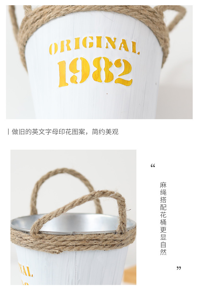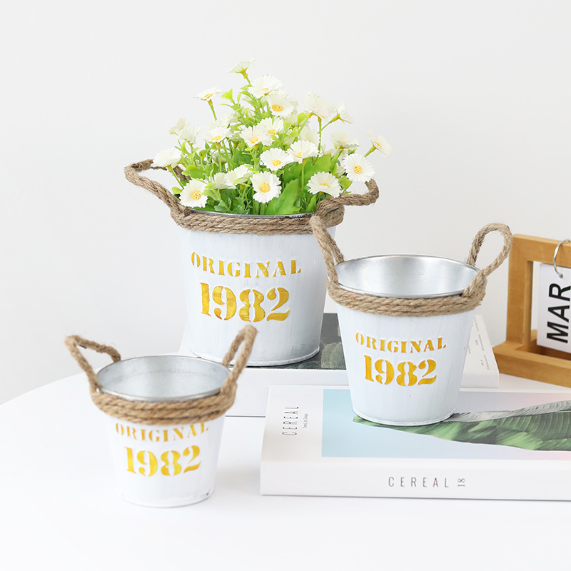 复古做旧圆形小花桶铁皮花盆室内绿植盆栽花盆桌面收纳1982铁桶盆 投诉