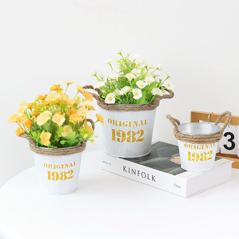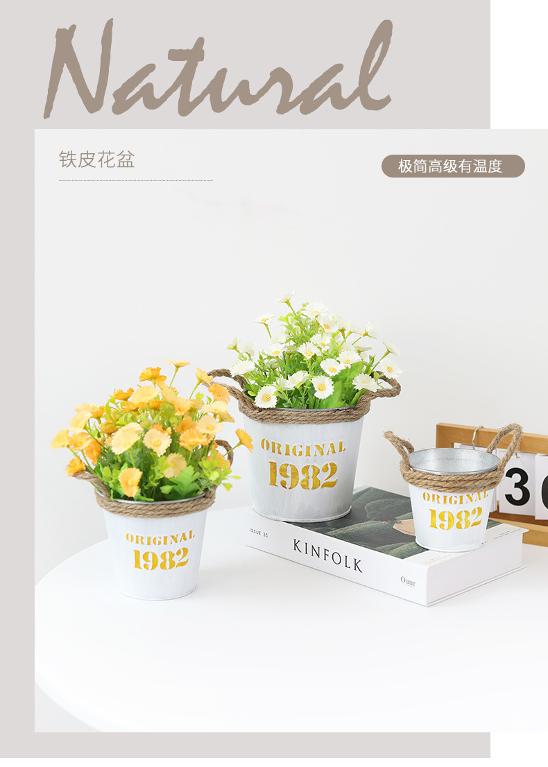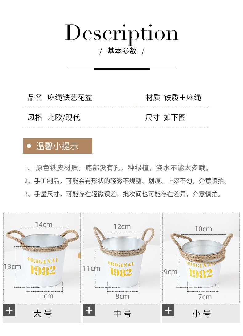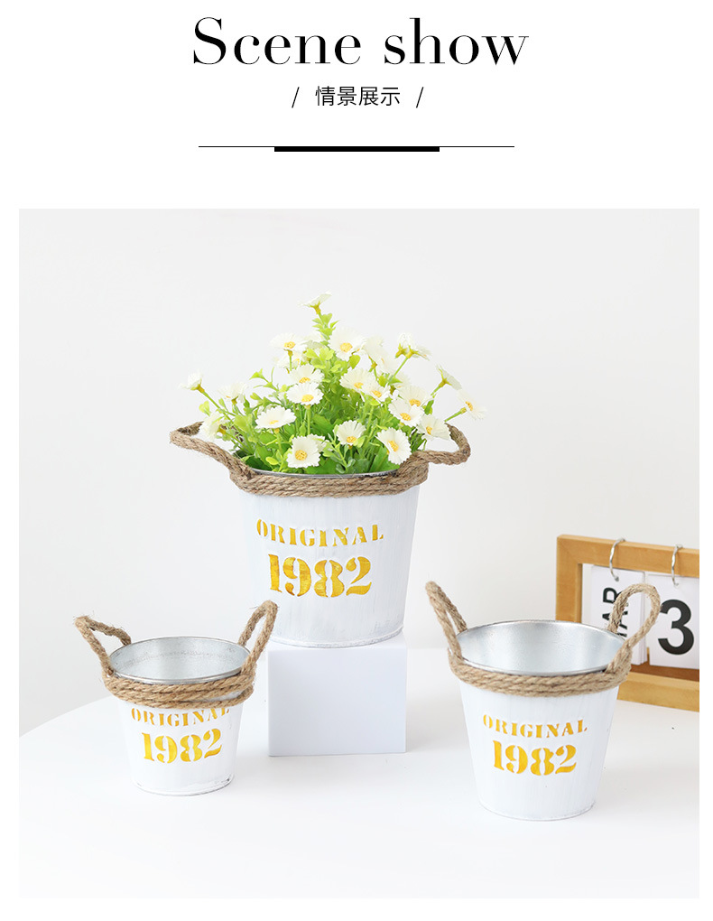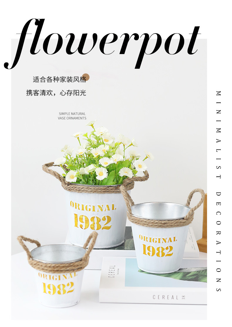 复古做旧圆形小花桶铁皮花盆室内绿植盆栽花盆桌面收纳1982铁桶盆 投诉