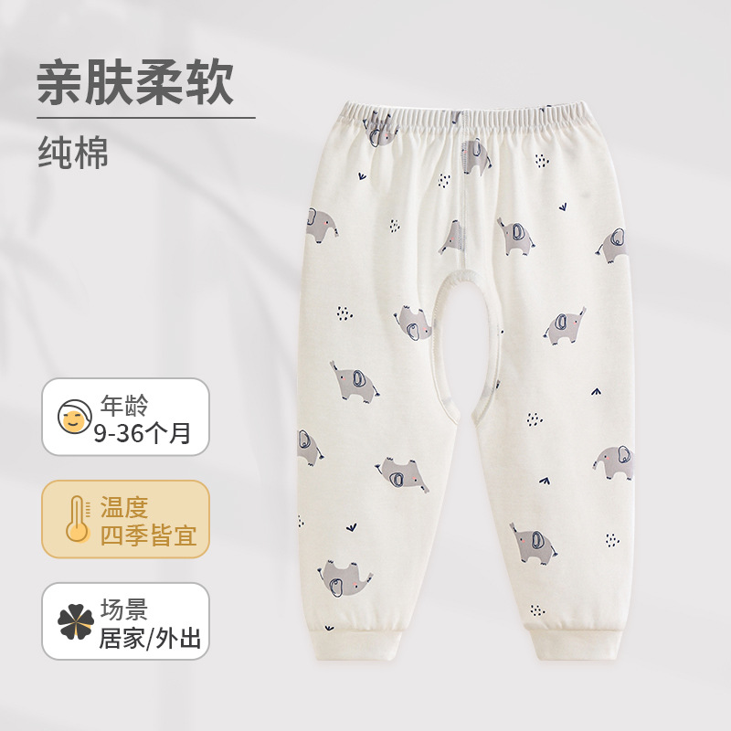 主面料成分: 棉 面料名称: 棉 安全等级: A类 内衣品类: 棉毛裤/秋裤 适用性别: 儿童通用 适合年龄段: 婴幼童(1~3岁,80~100cm) 适用季节: 春秋 颜色: 大象,满印椰椰龙,满印马戏团,花小熊,奶