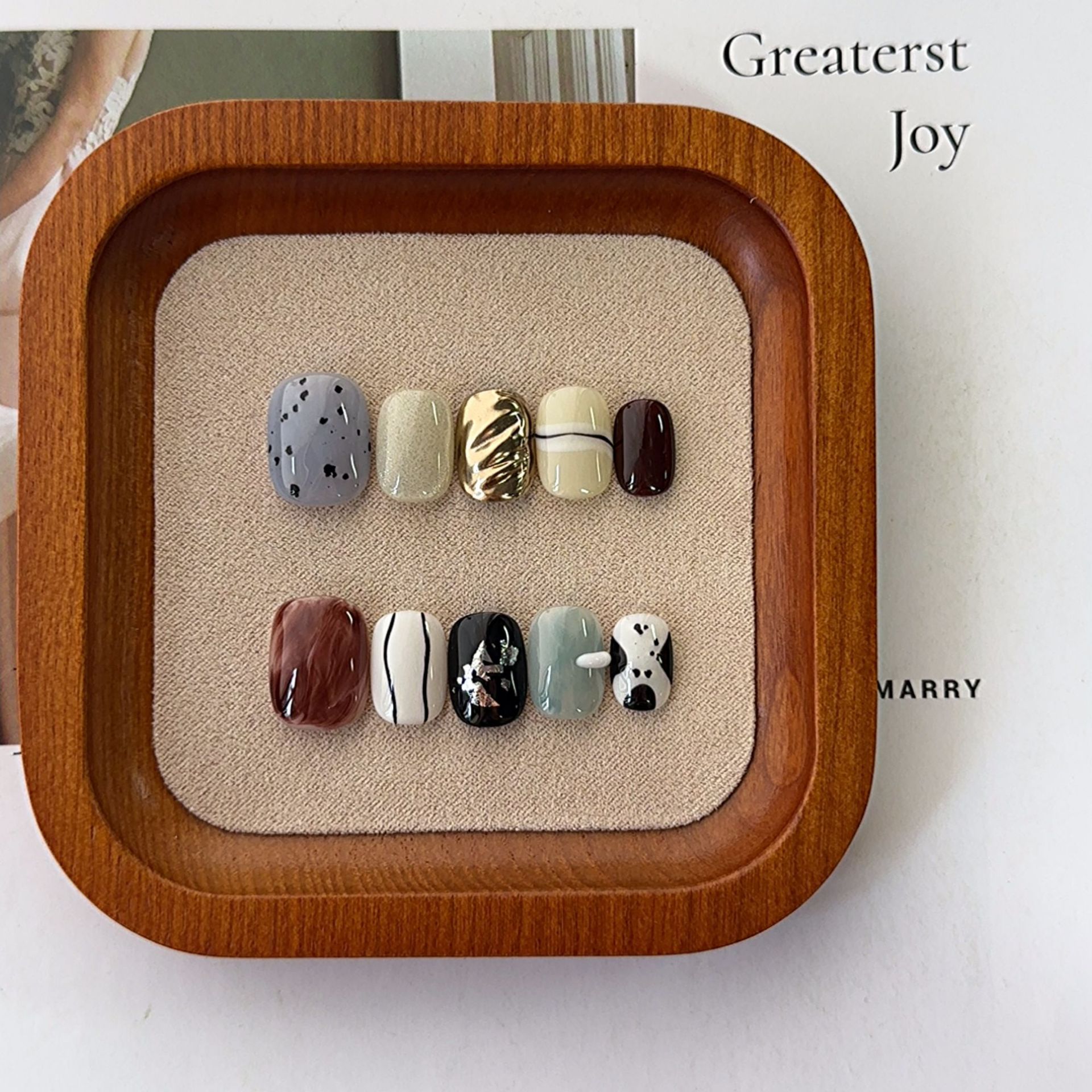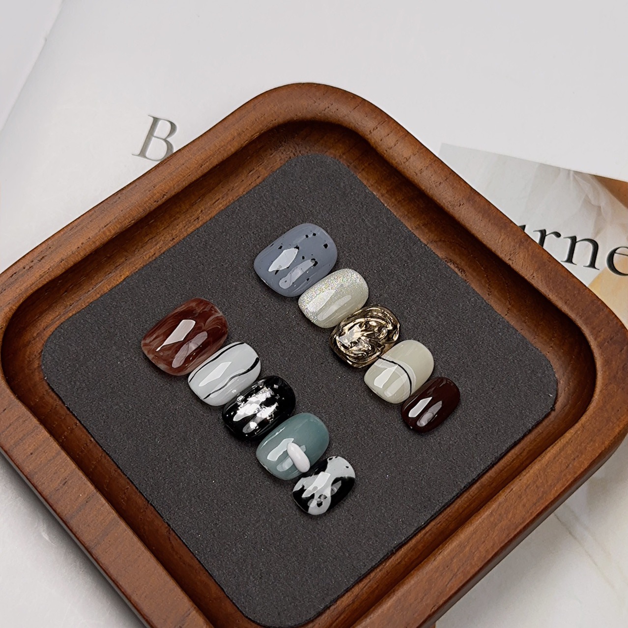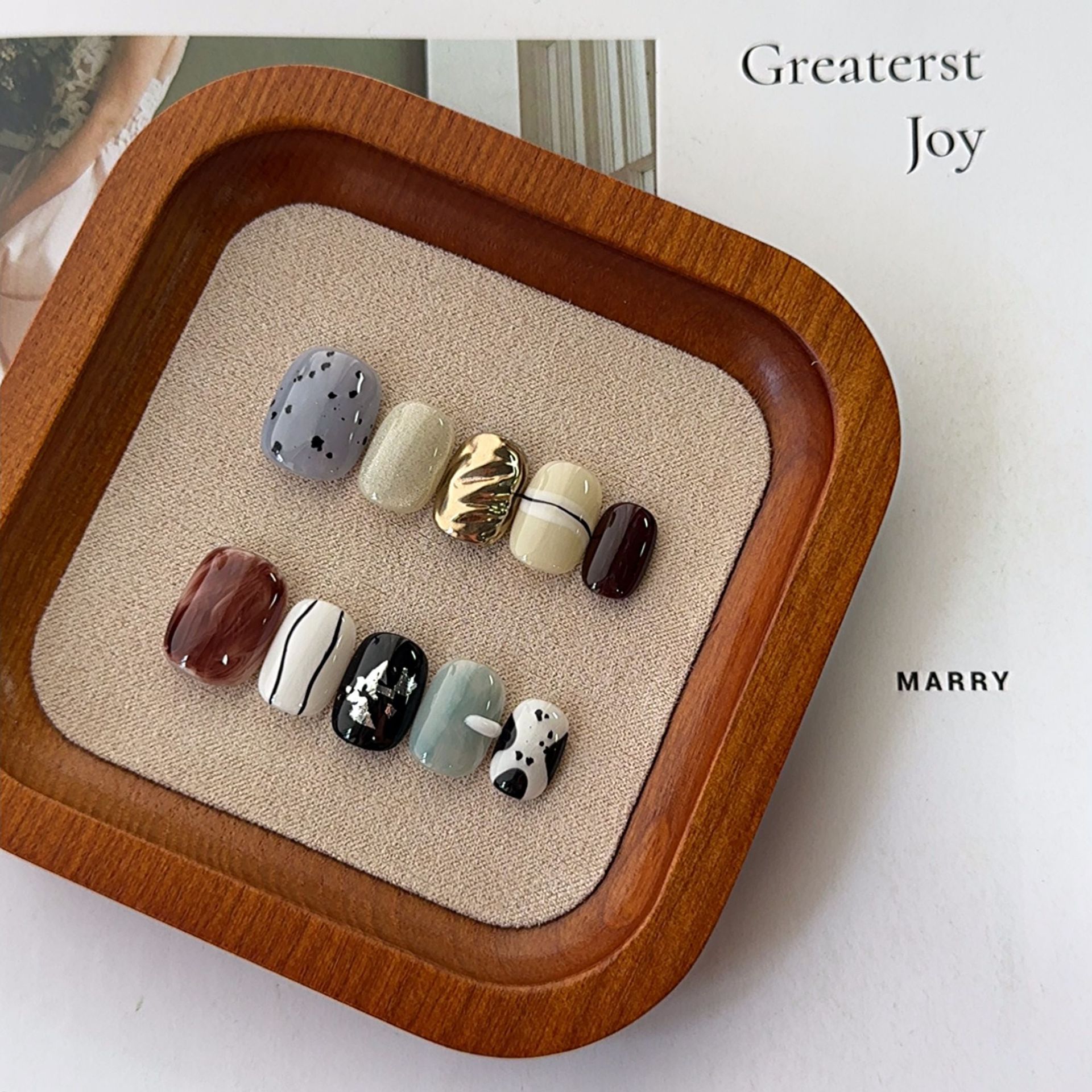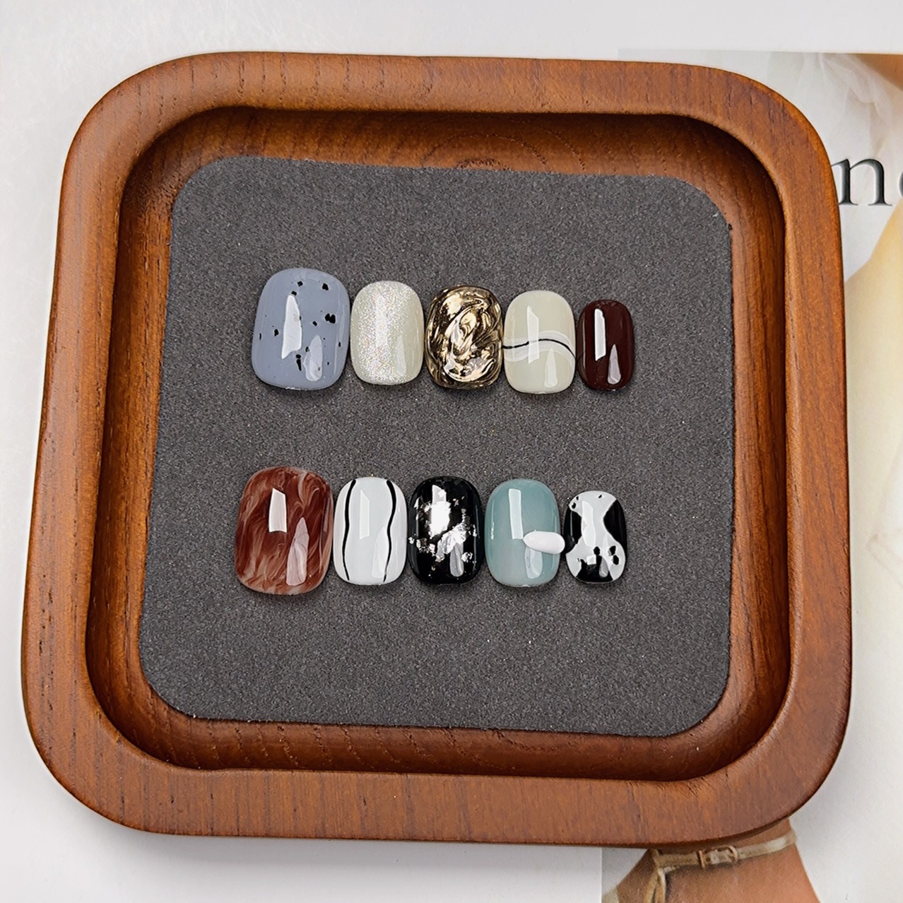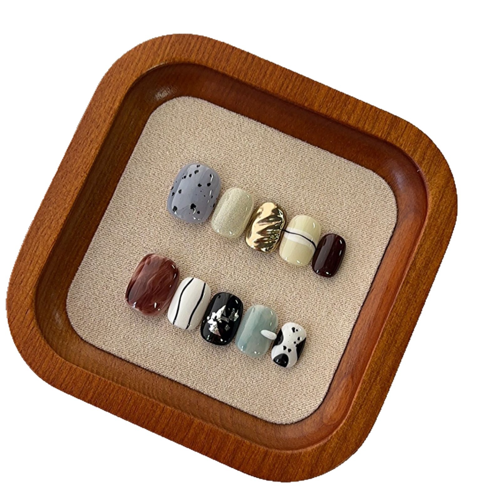 小众手绘短方圆手工穿戴甲批发高级感不规则显白晕染指甲贴美甲