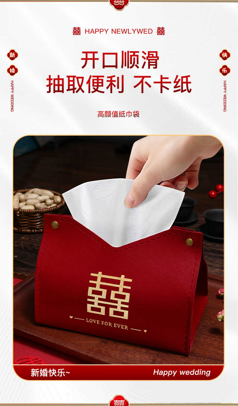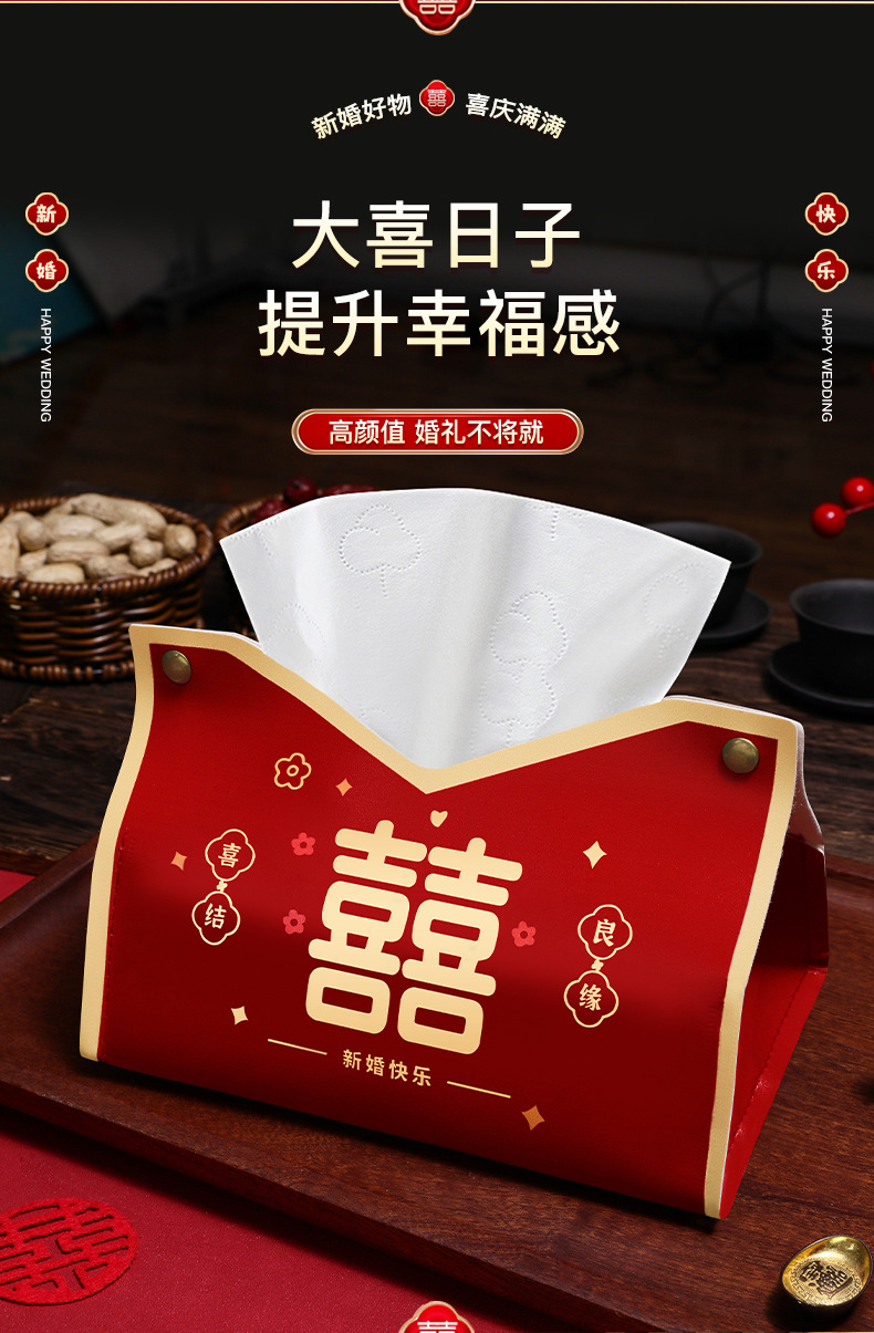 抽纸盒结婚订婚装饰摆件皮质纸巾套婚房布置纸巾套袋婚庆用品大全 English | 投诉