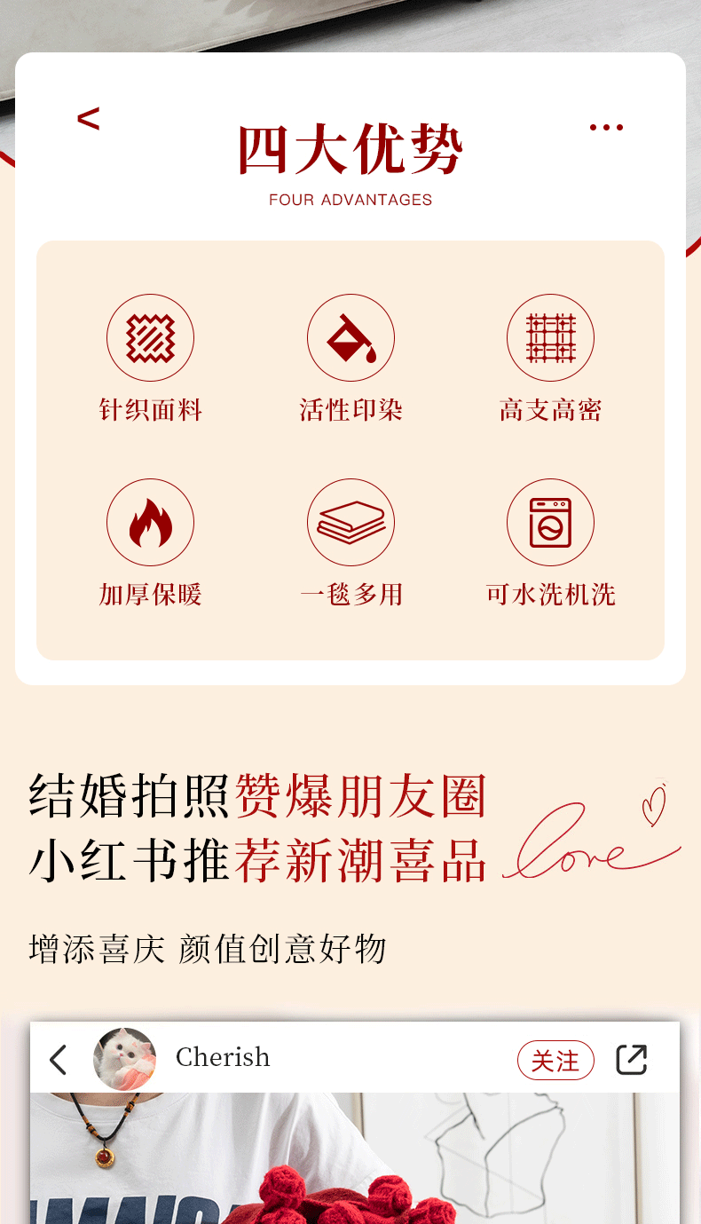| 【中式婚庆】超高品质双层红喜花束毯 | ¥11160 | 996个可售 |