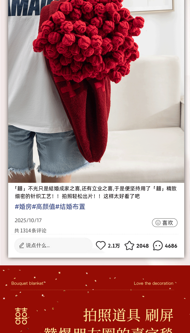 | 【中式婚庆】超高品质双层红喜花束毯 | ¥4680 | 11110个可售 |