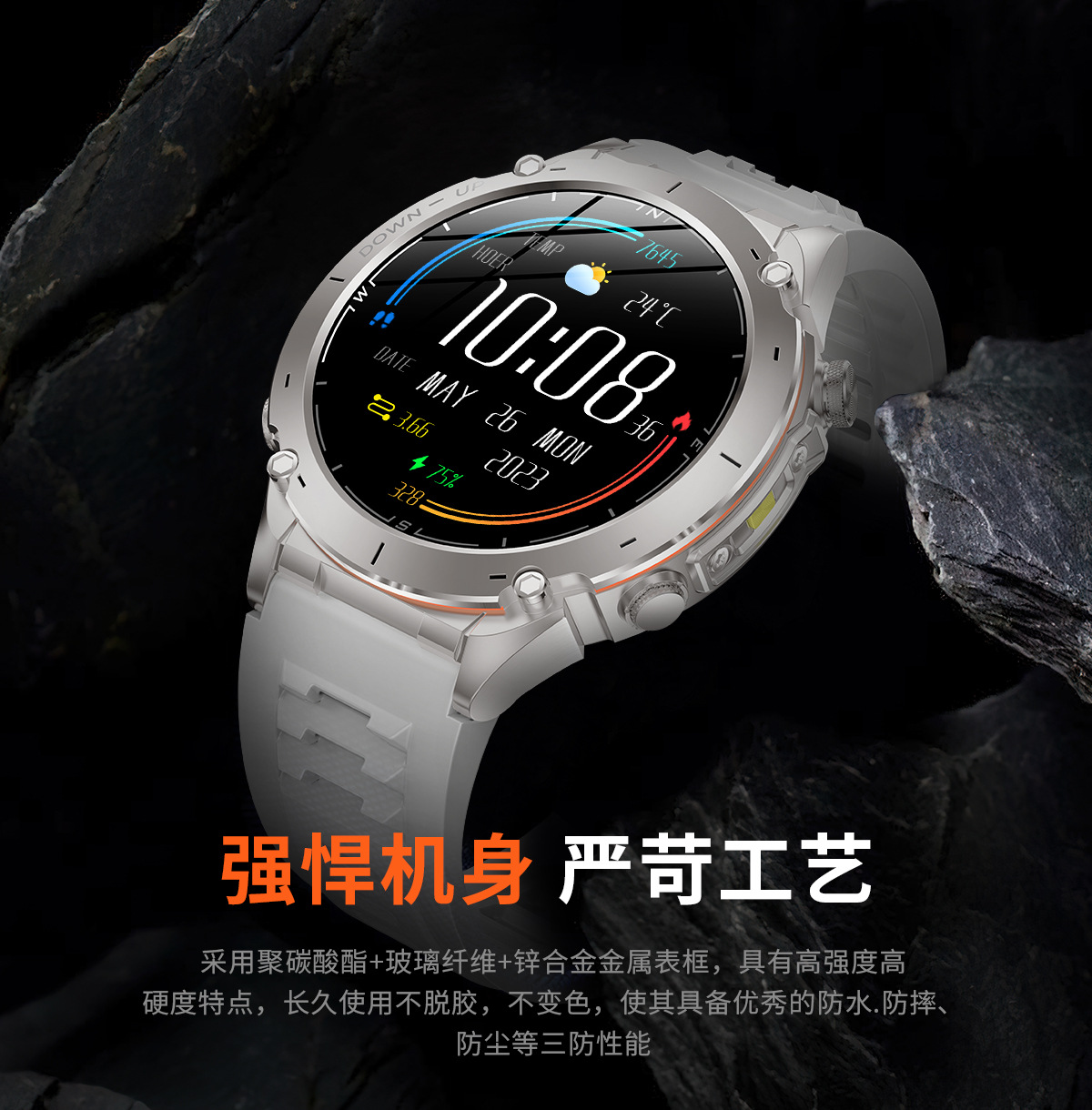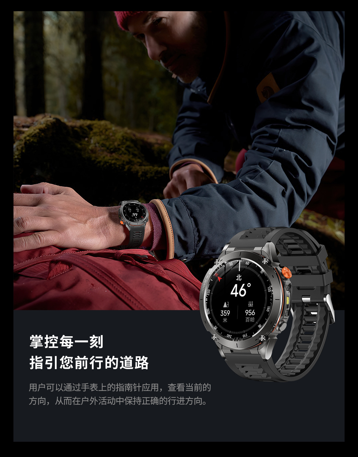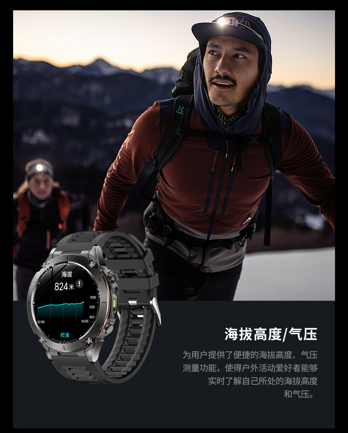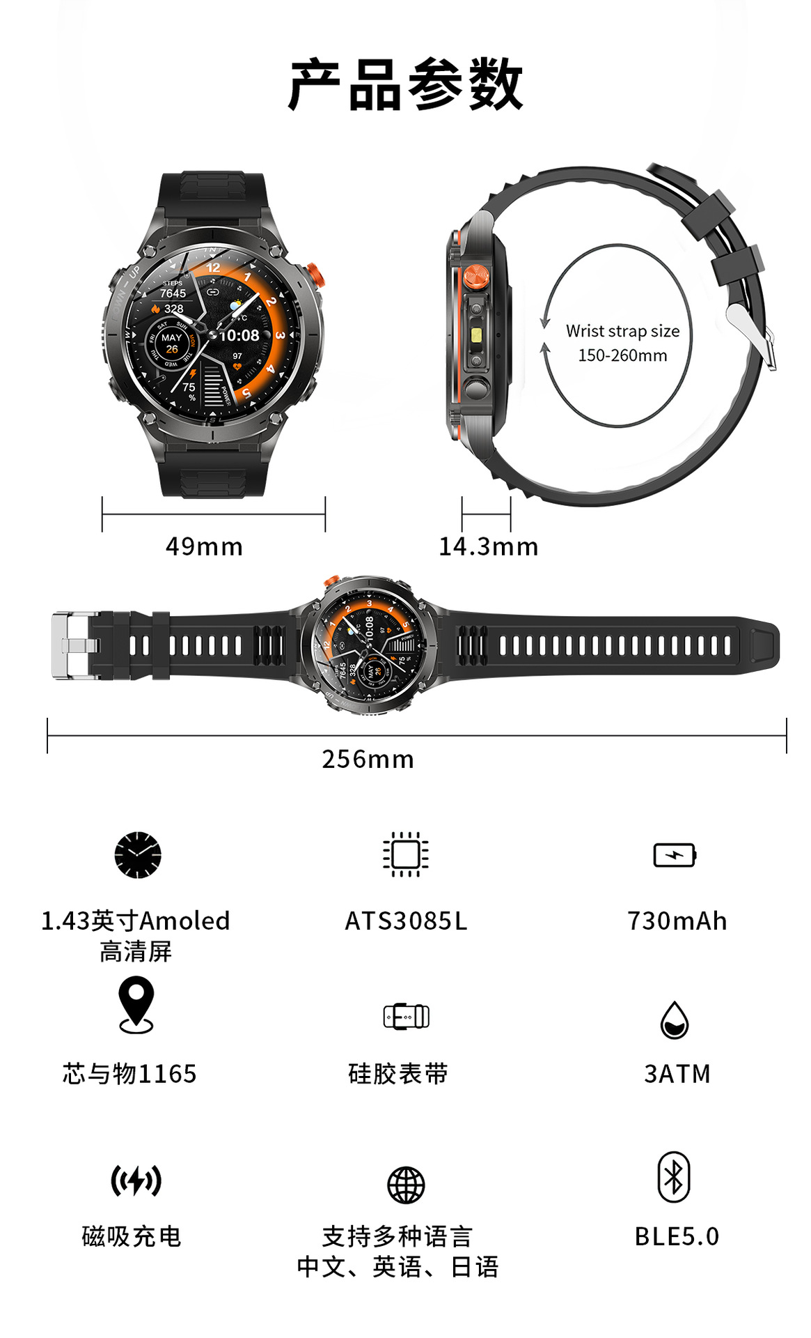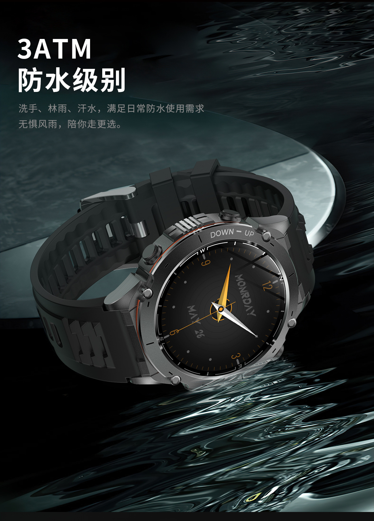 新款Y101智能手表 1.43AMoled户外GPS气压指南针运动防水手电筒表