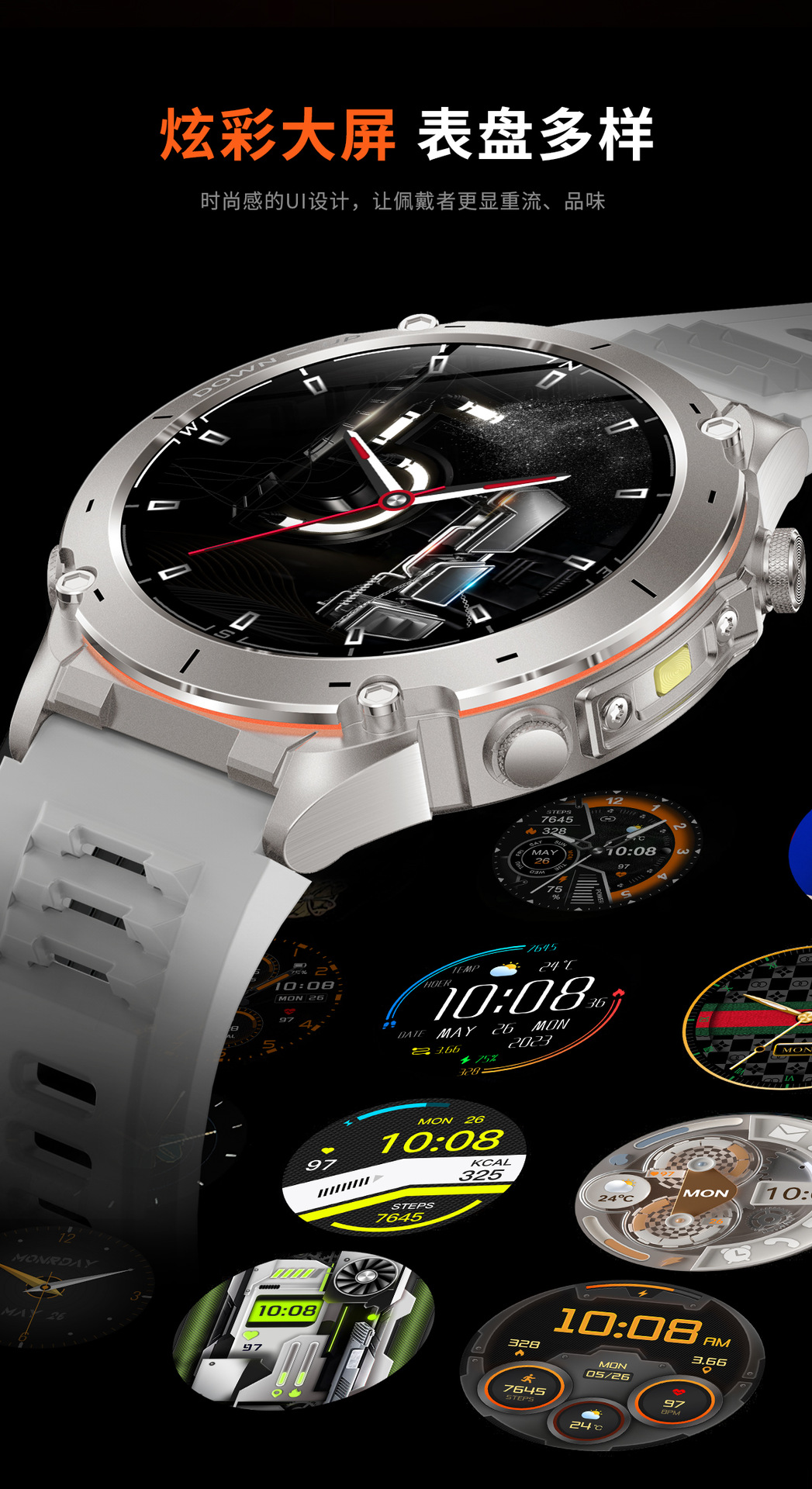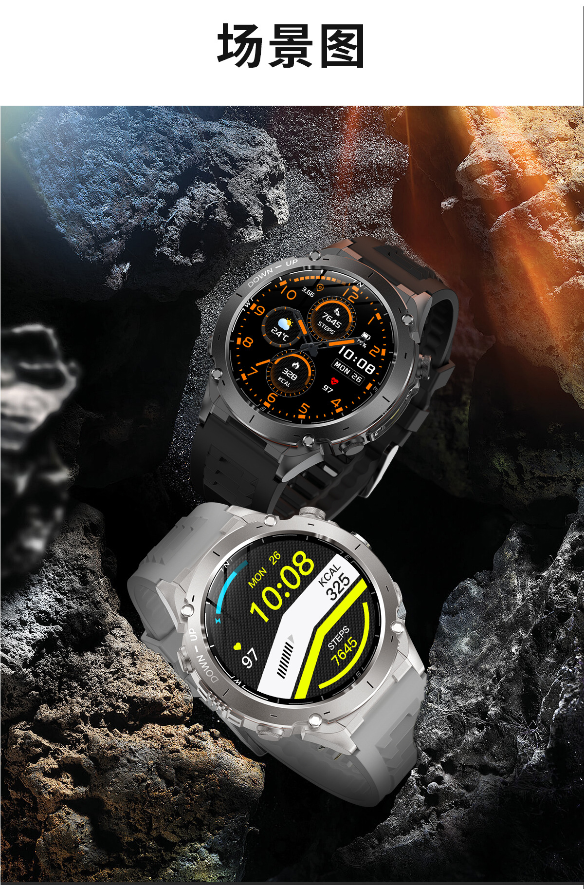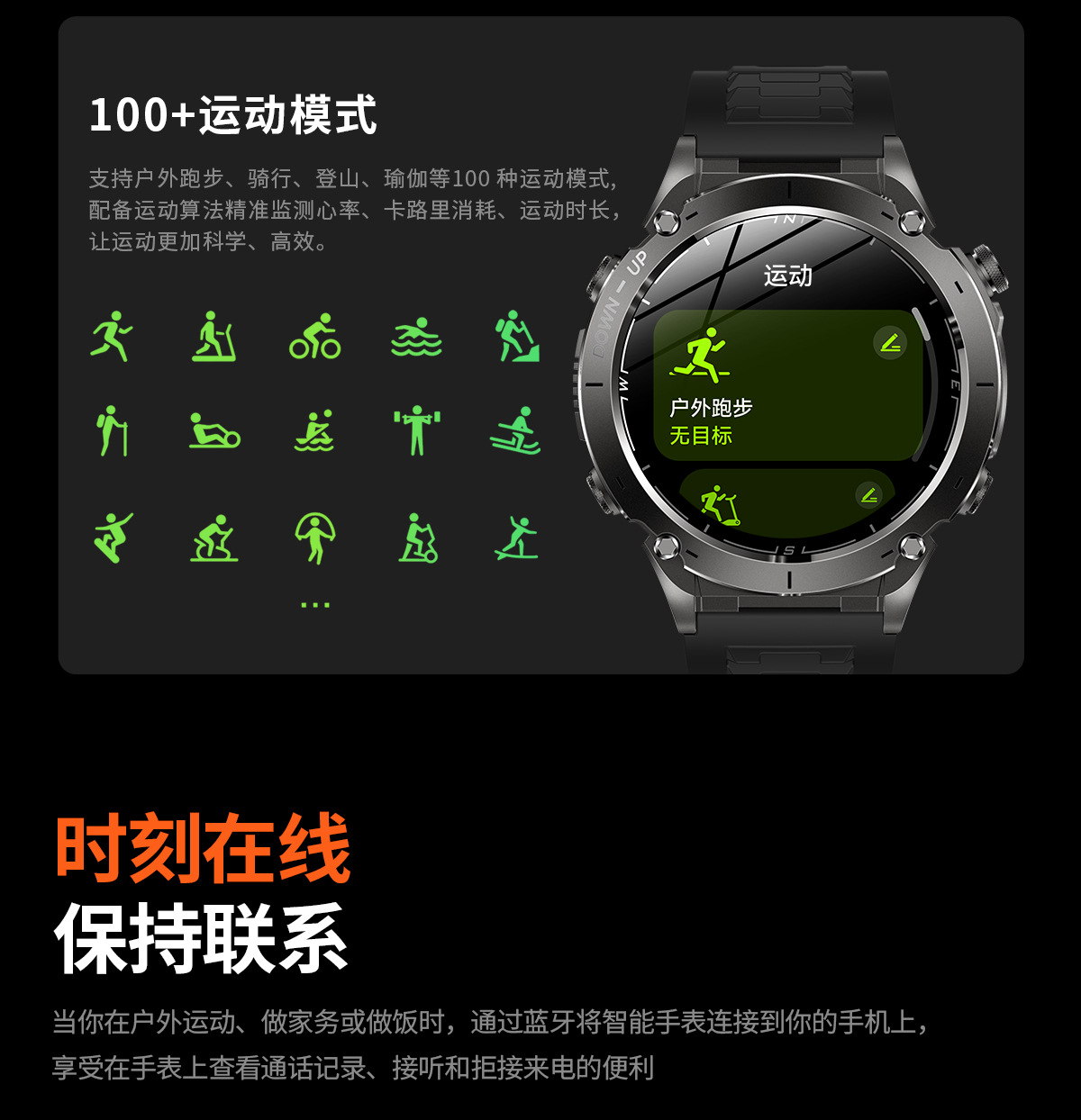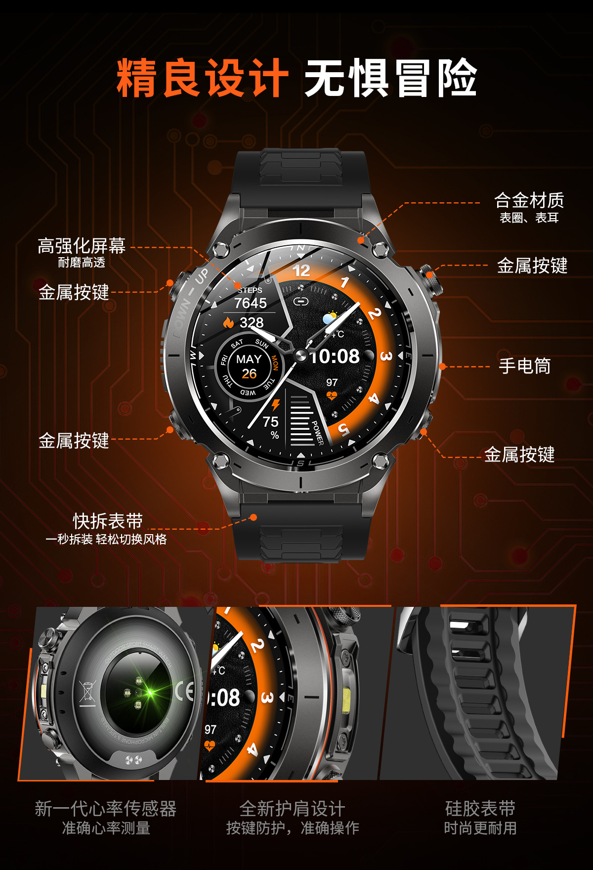 新款Y101智能手表 1.43AMoled户外GPS气压指南针运动防水手电筒表