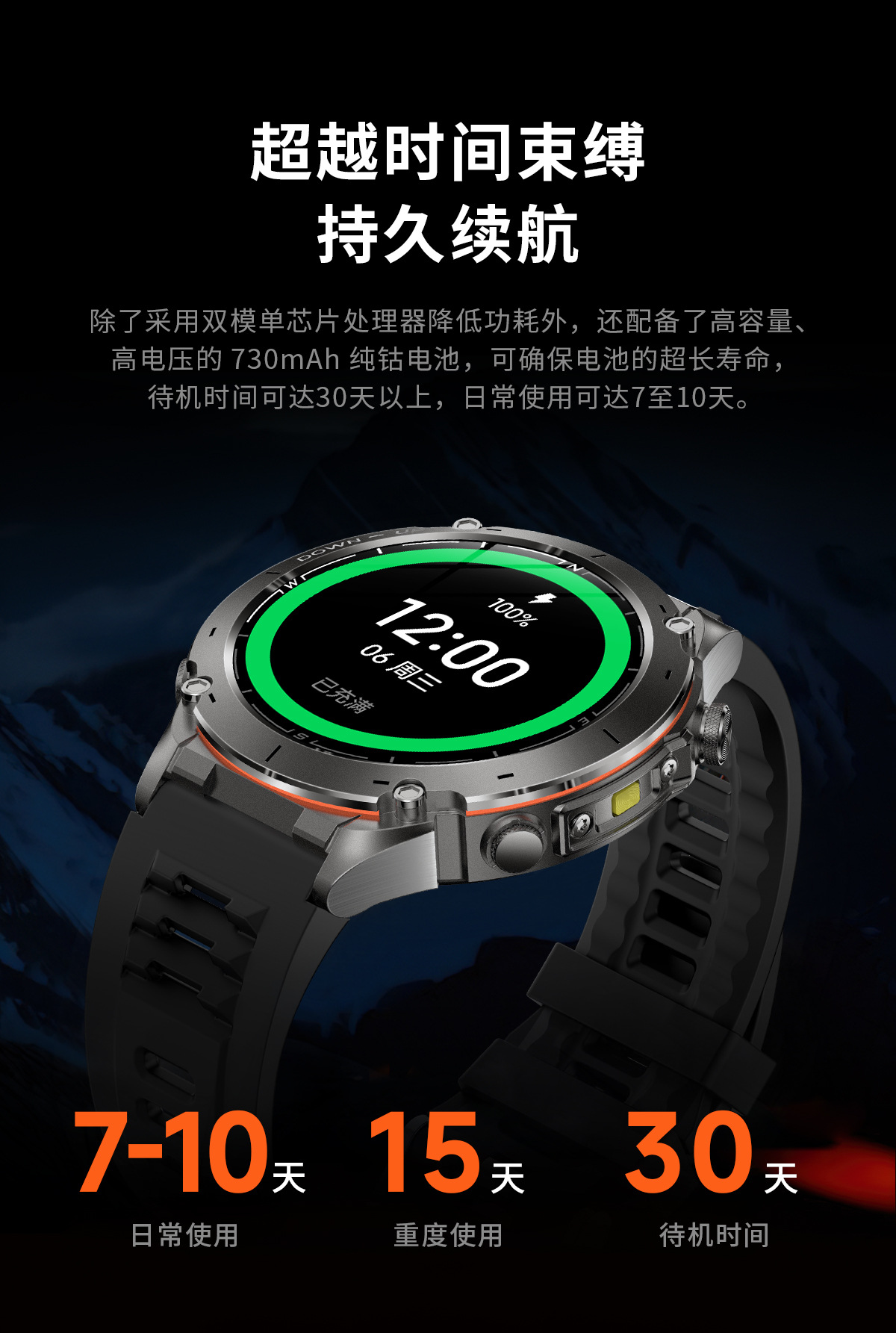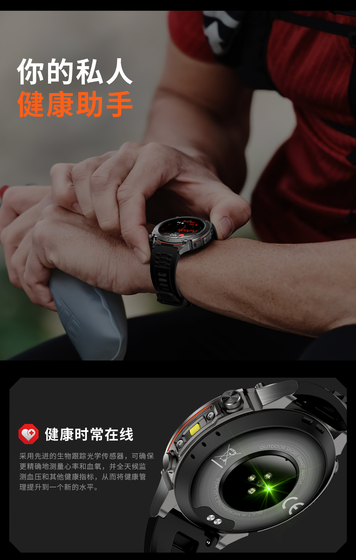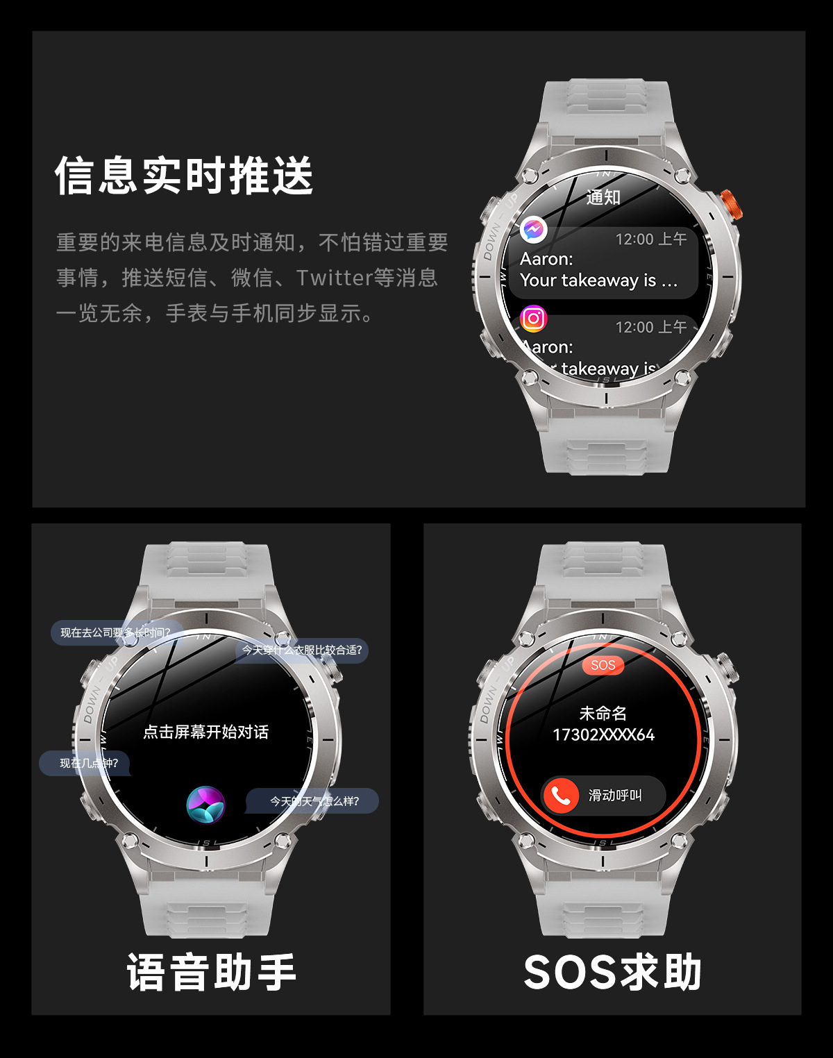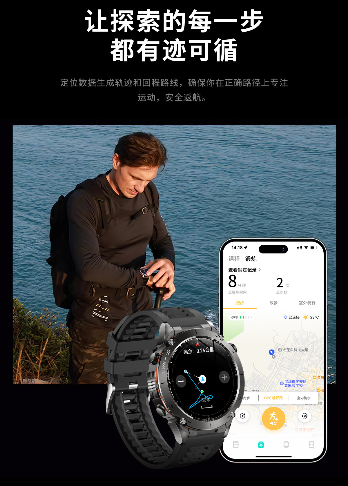 新款Y101智能手表 1.43AMoled户外GPS气压指南针运动防水手电筒表