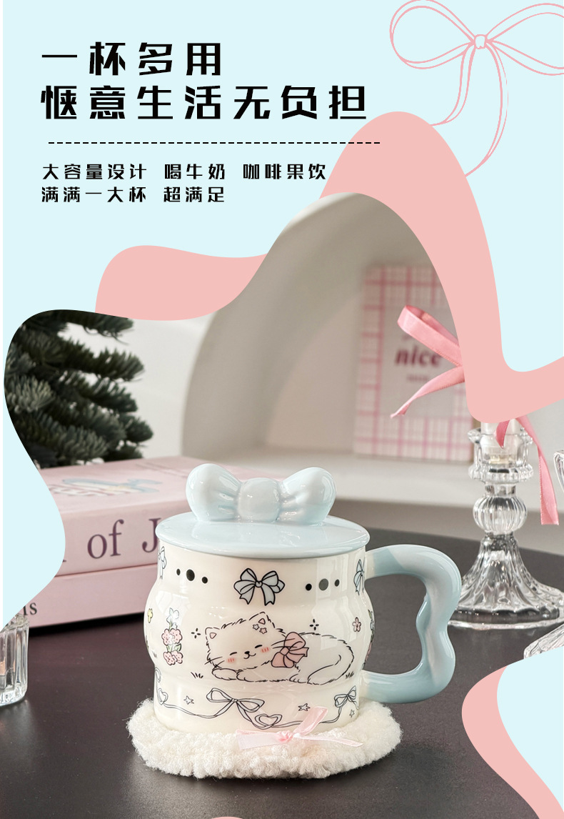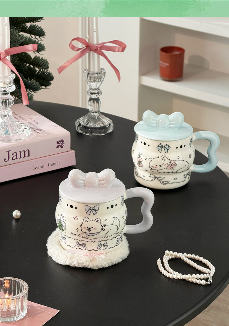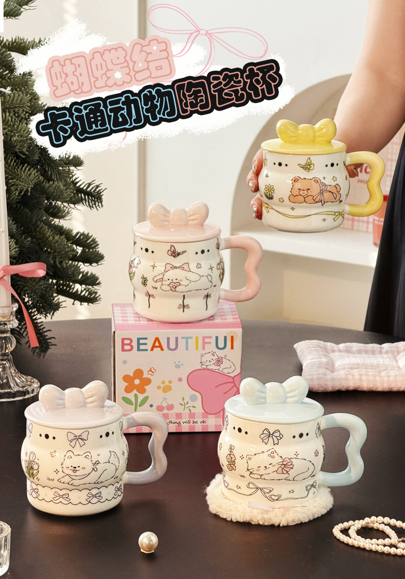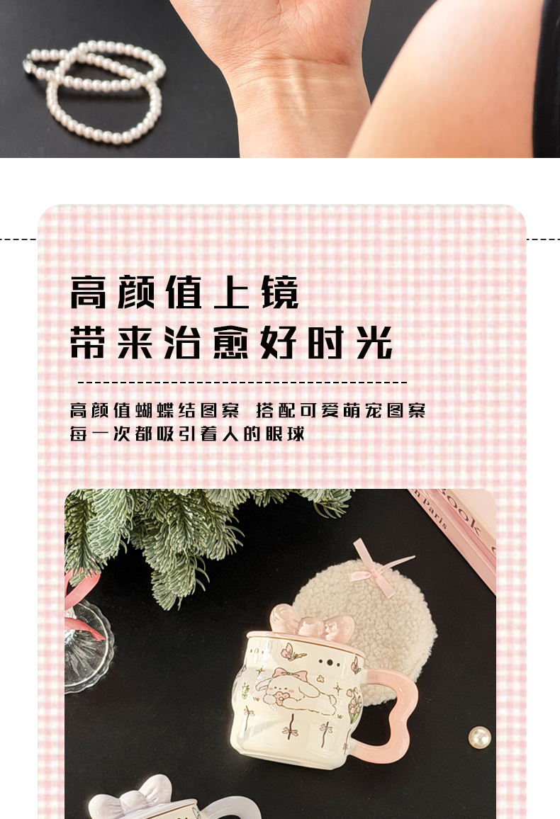 陶瓷杯创意蝴蝶结马克杯可爱少女心陶瓷杯高颜值大容量 English | 投诉