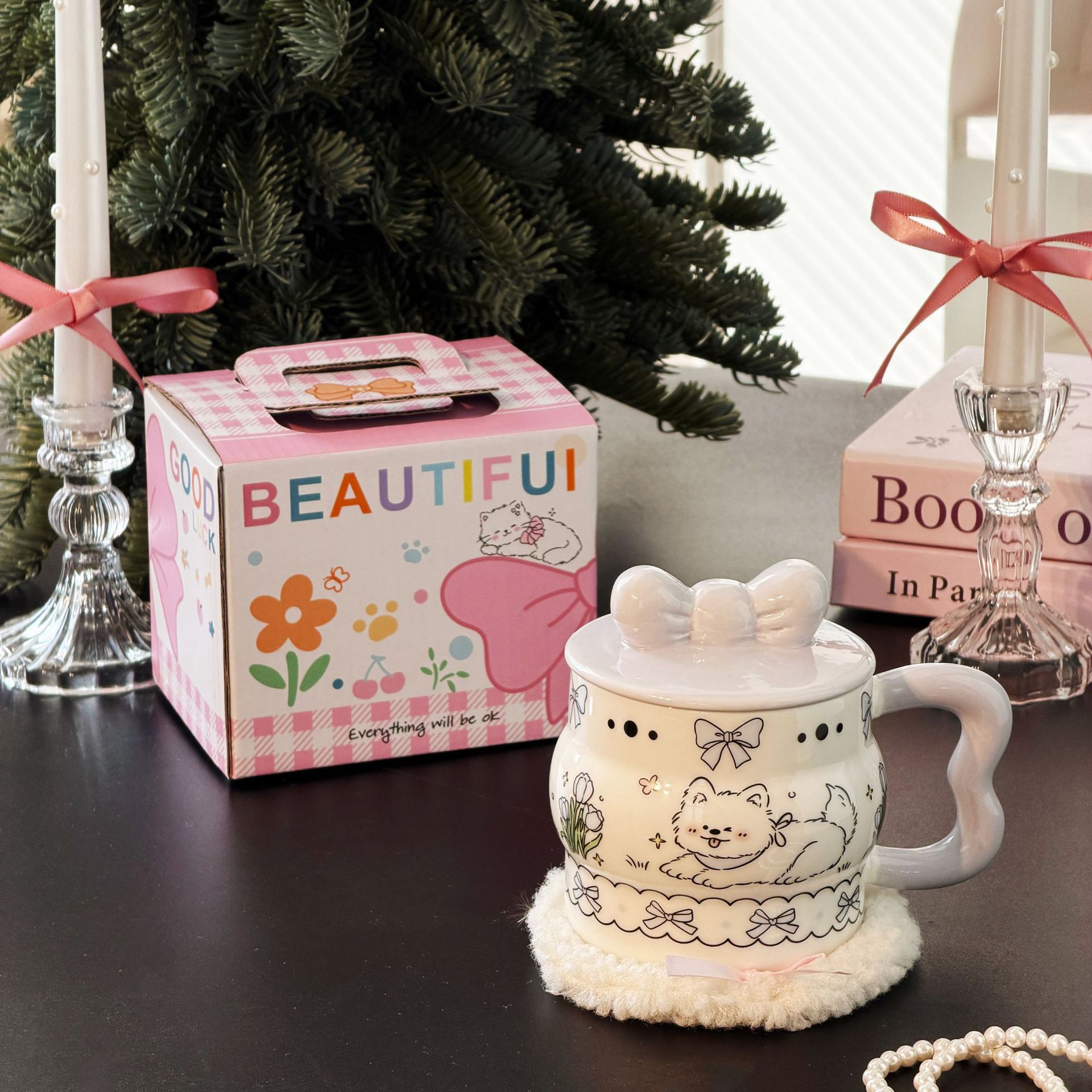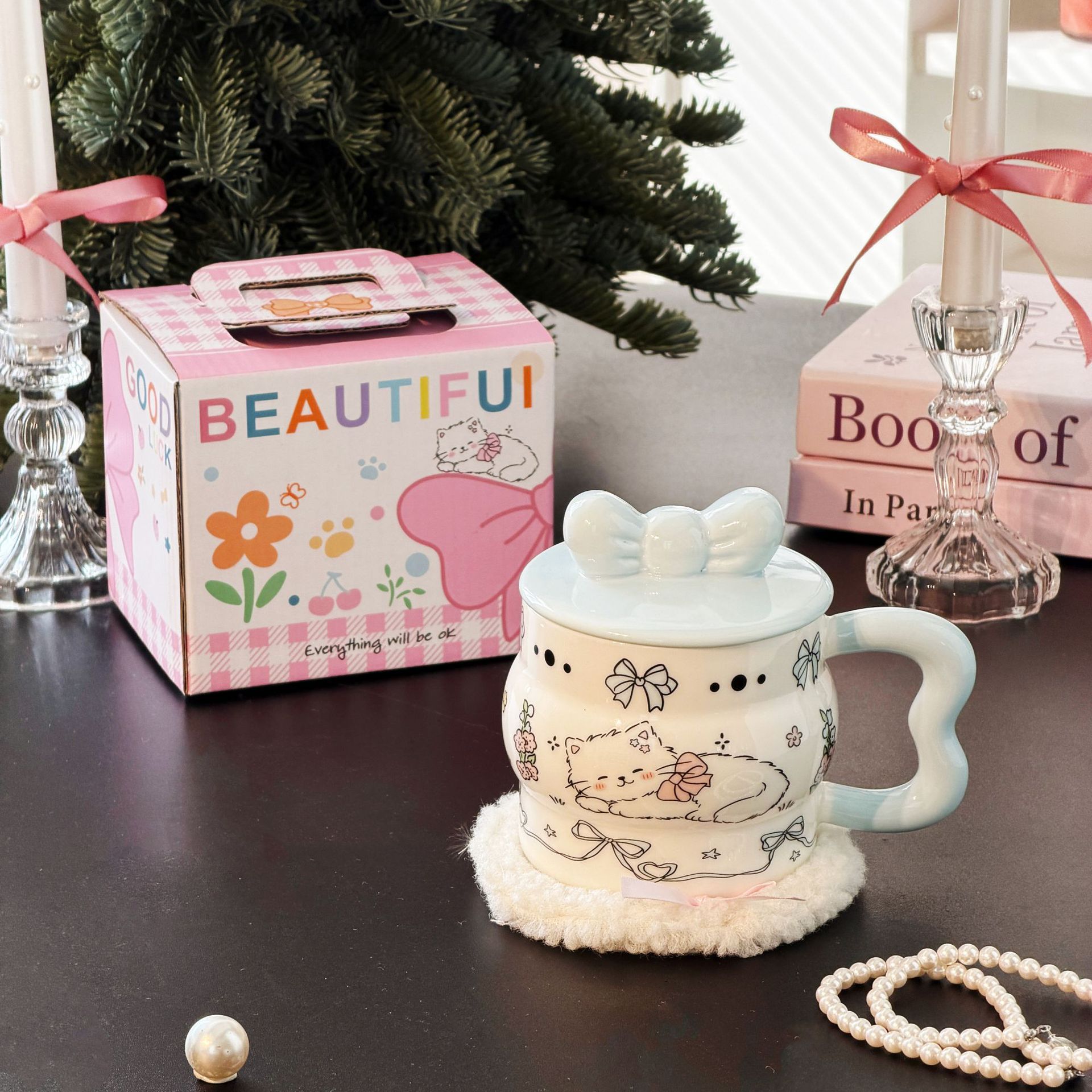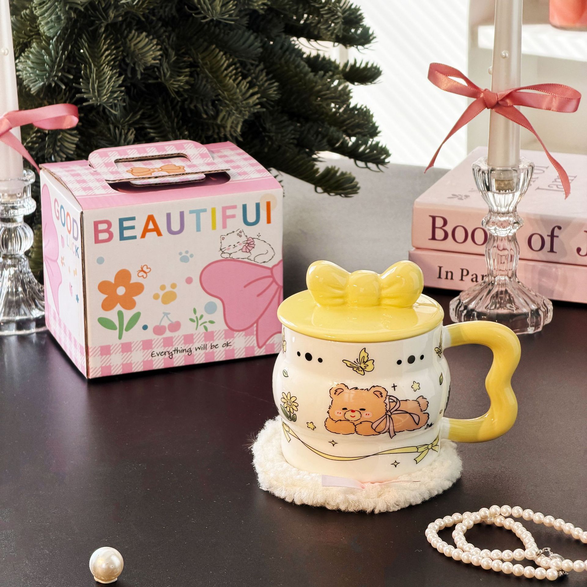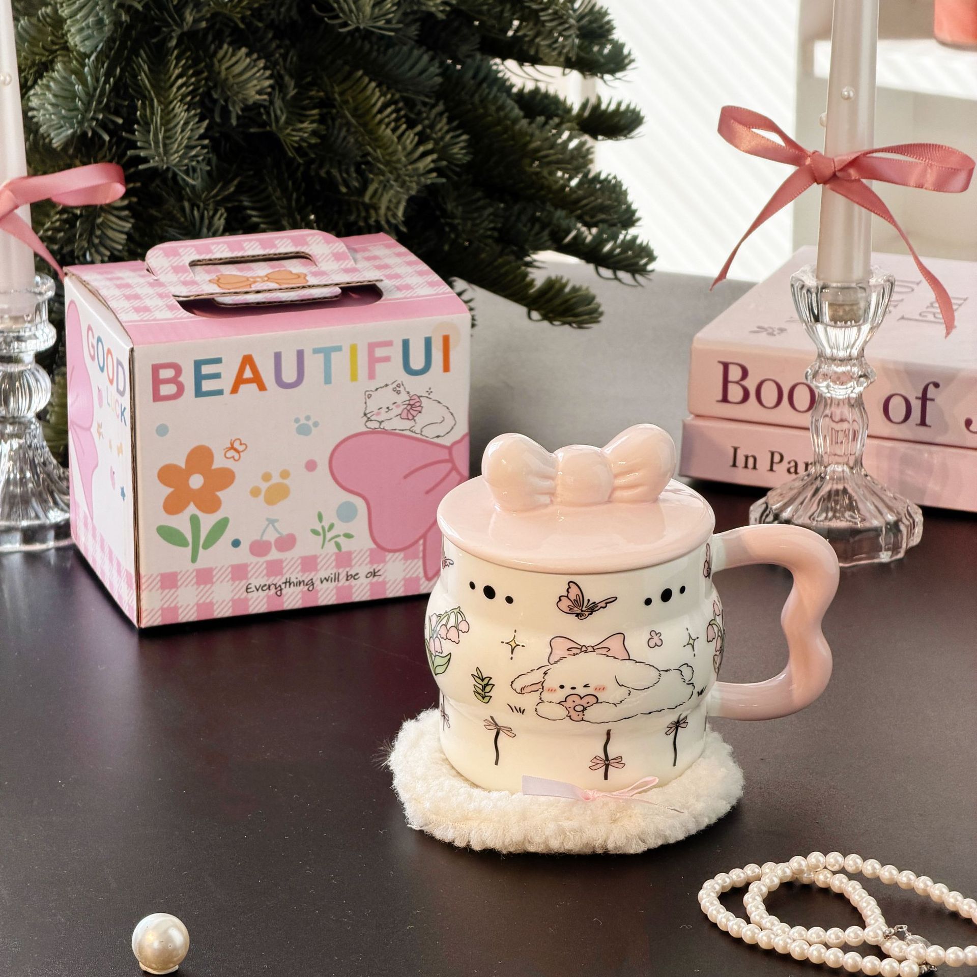 陶瓷杯创意蝴蝶结马克杯可爱少女心陶瓷杯高颜值大容量 English | 投诉