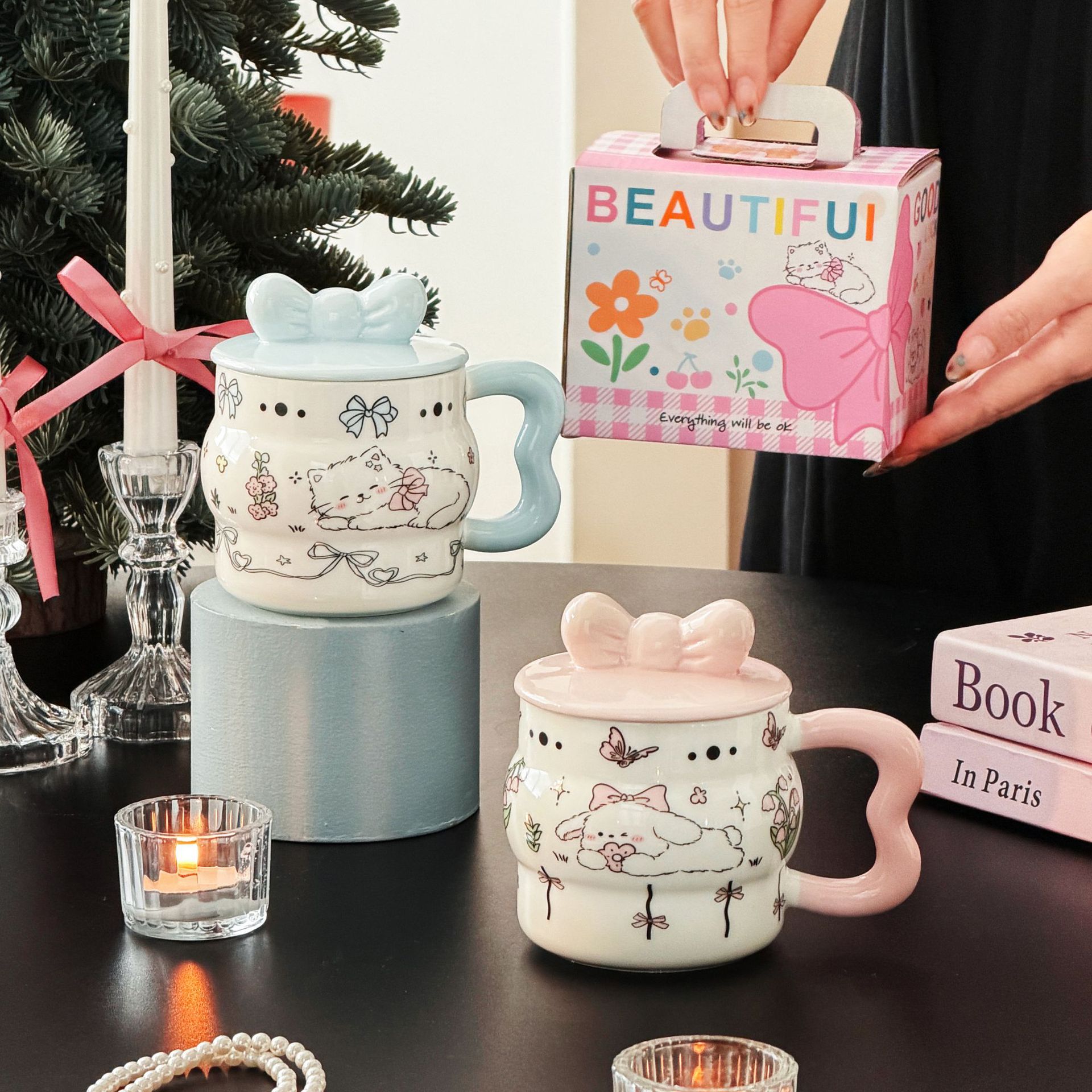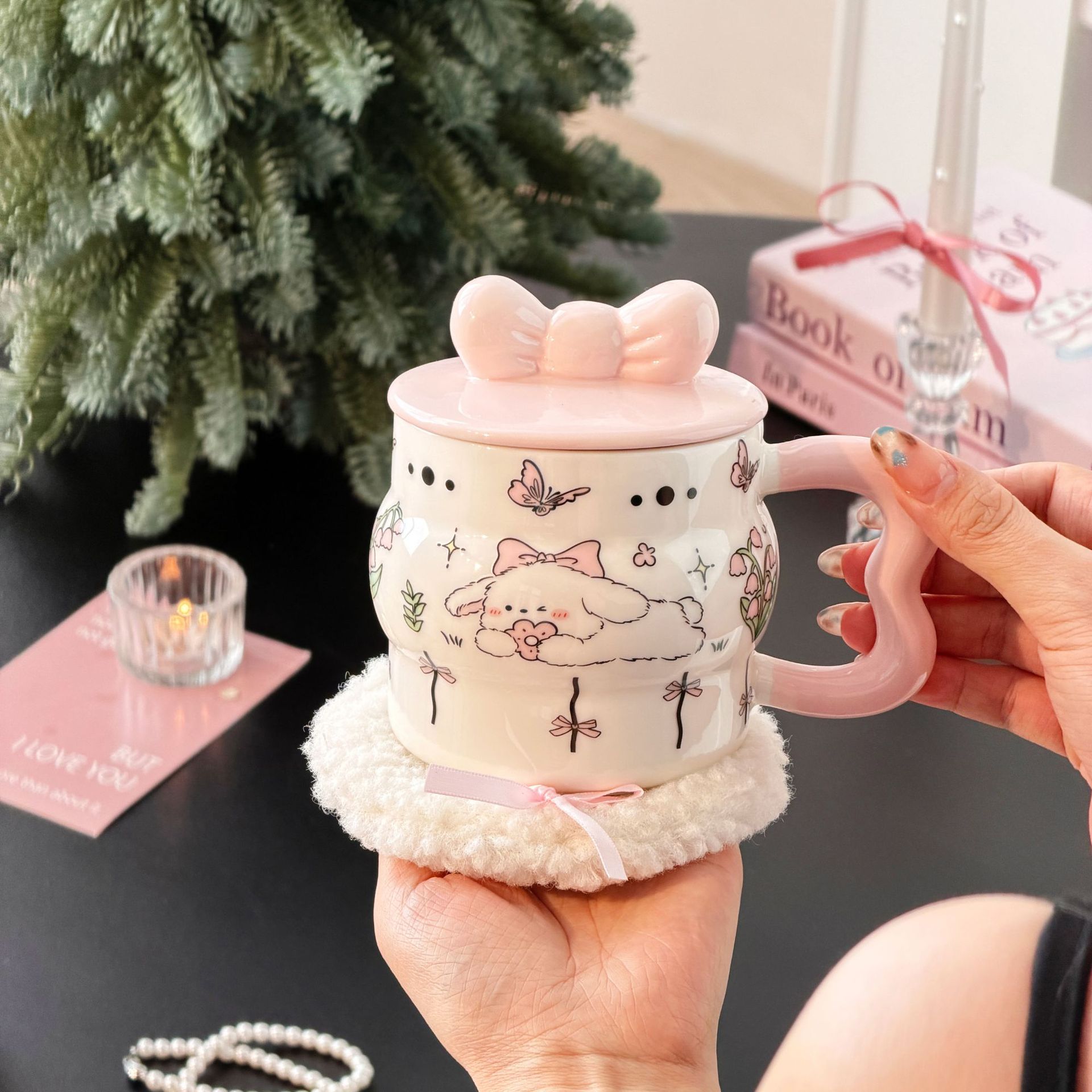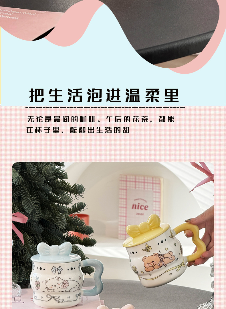 陶瓷杯创意蝴蝶结马克杯可爱少女心陶瓷杯高颜值大容量