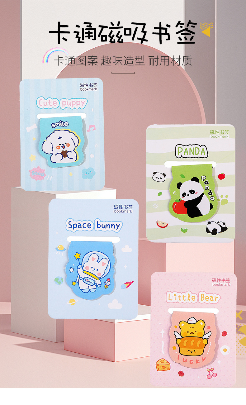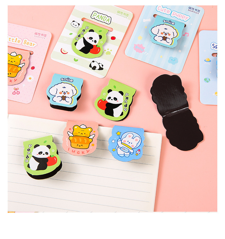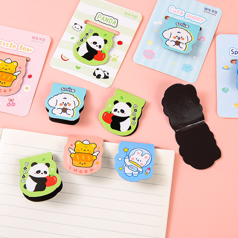 创意趣味熊猫磁性书签儿童卡通高颜值异形书页夹礼物跨境礼品批发