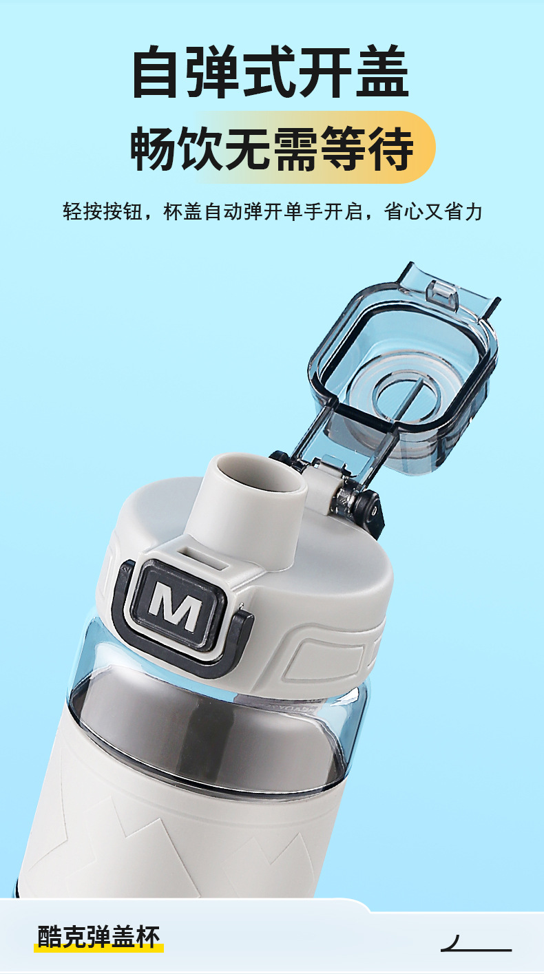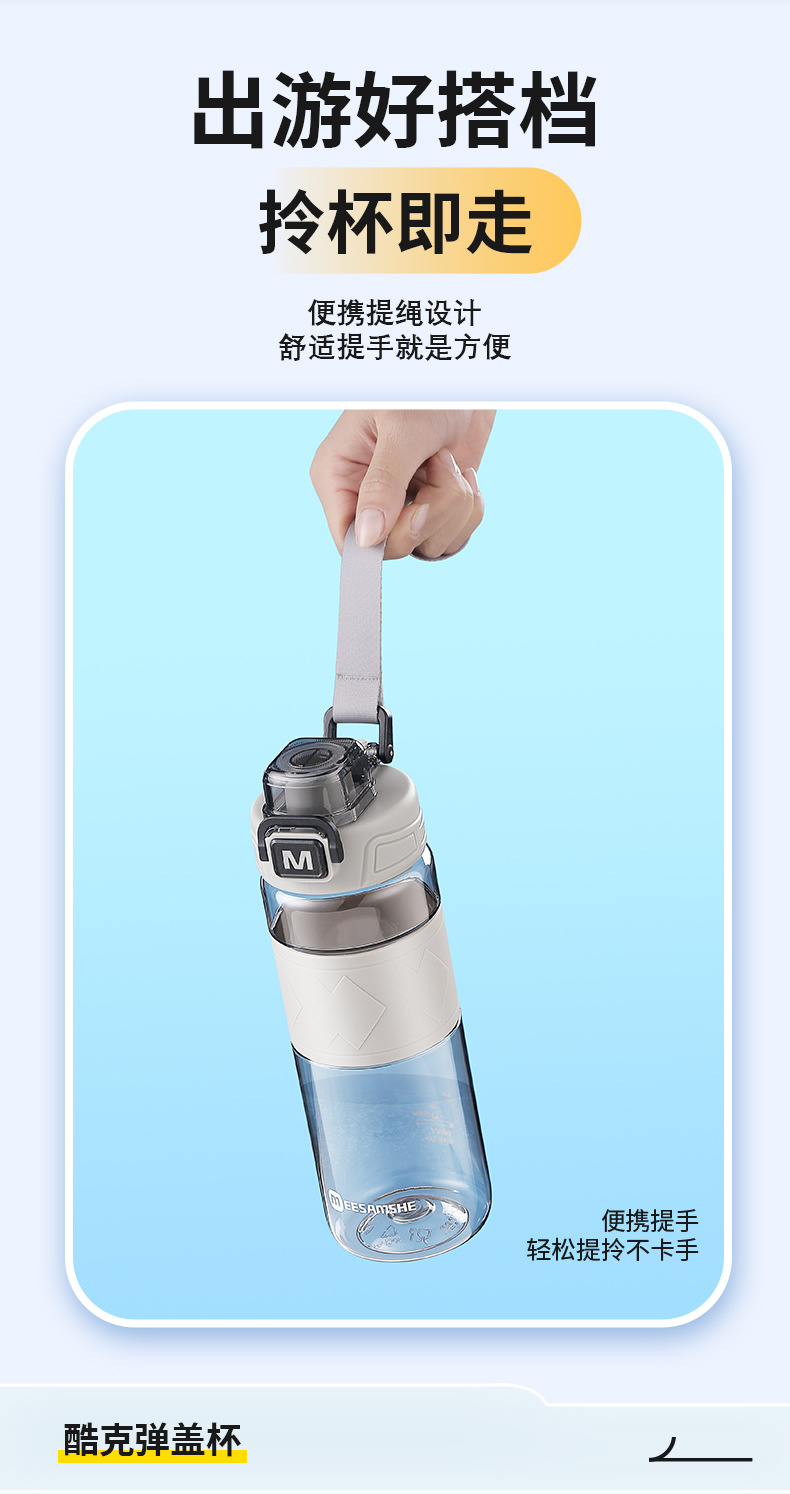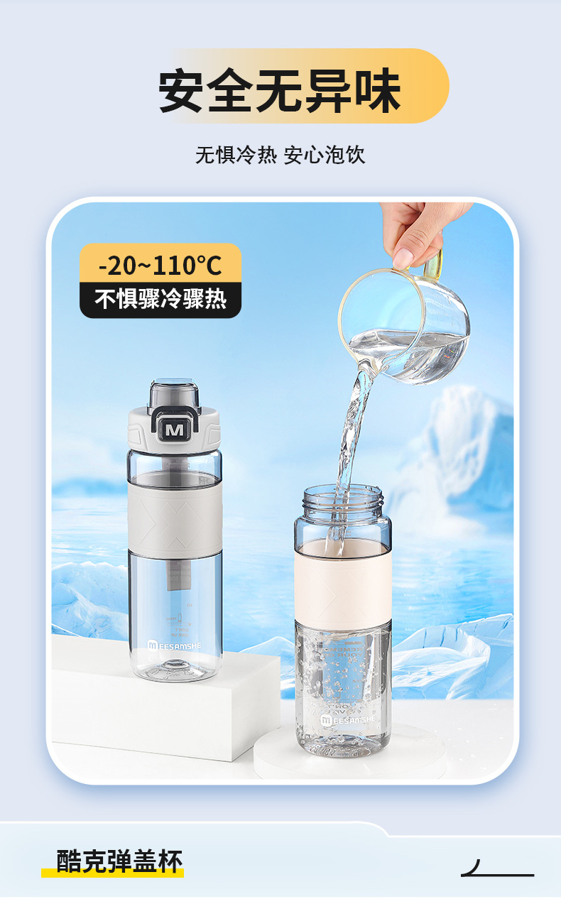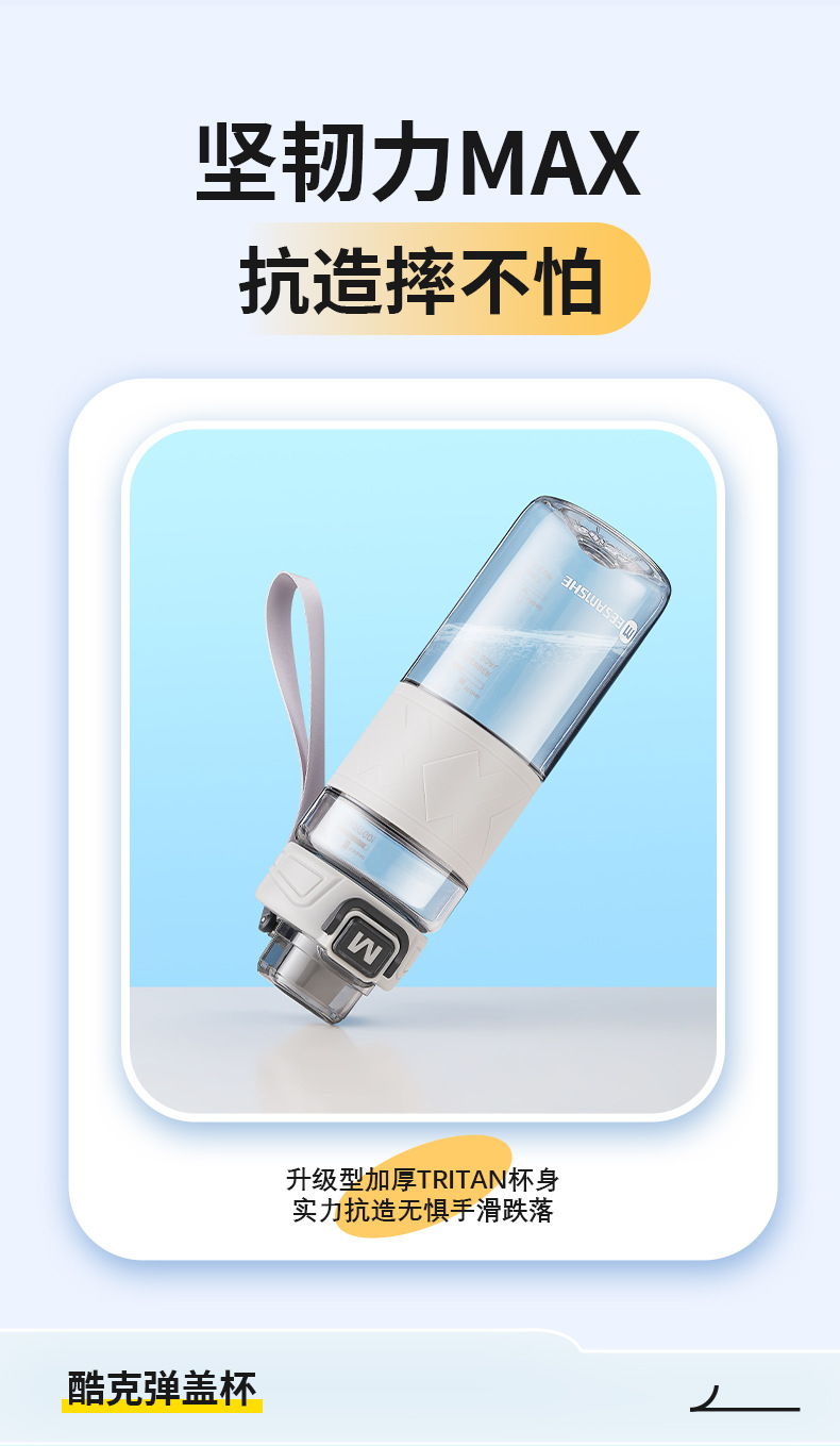 MEESAMSHE/米膳师*引力熊IP联名款,杯身美国进口tritan材质耐高温可以装开水,环保无异味,弹盖运动水杯,杯盖带提绳,杯身带防滑硅胶杯套,带茶隔方便喝水,支持OEM/ODM定制,礼品团购定制logo,500ml/650ml两个容量可选择,户外运动太空水杯,塑料水杯方便携带