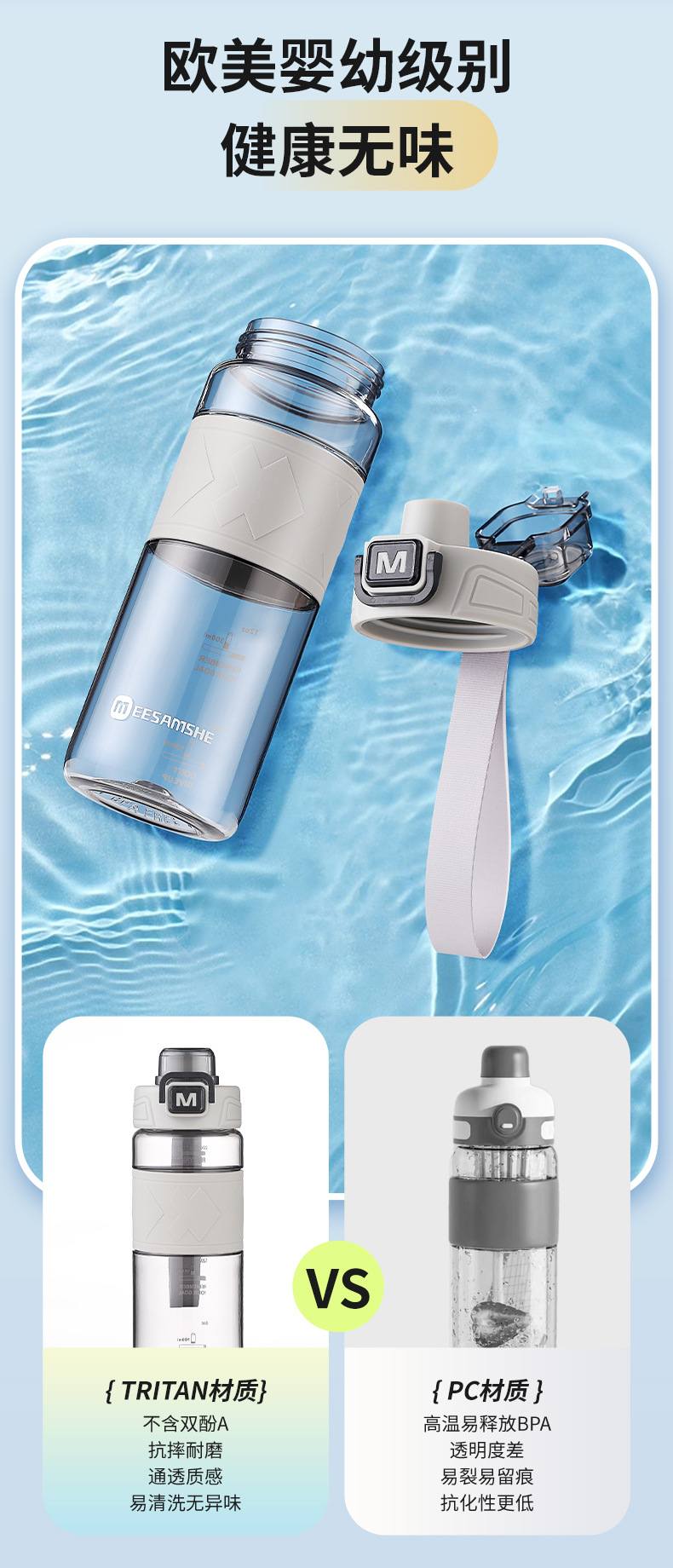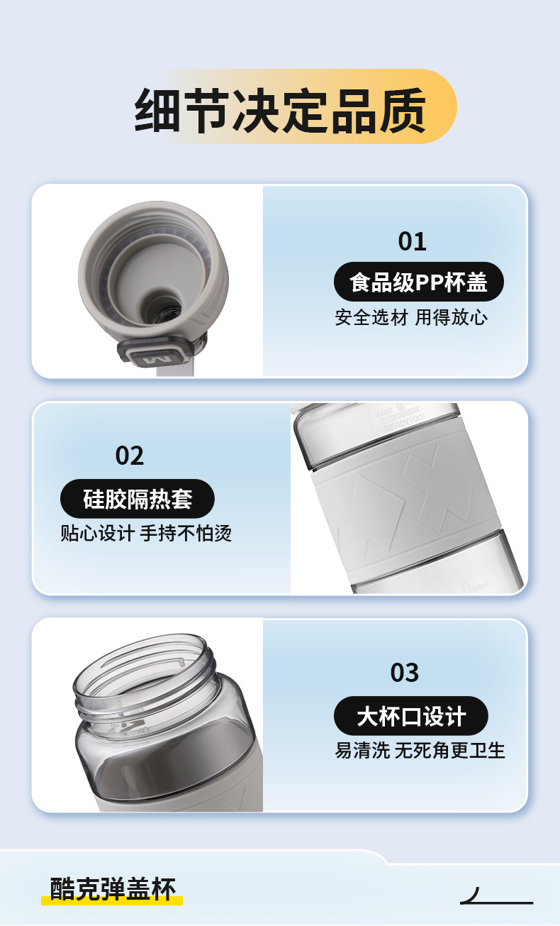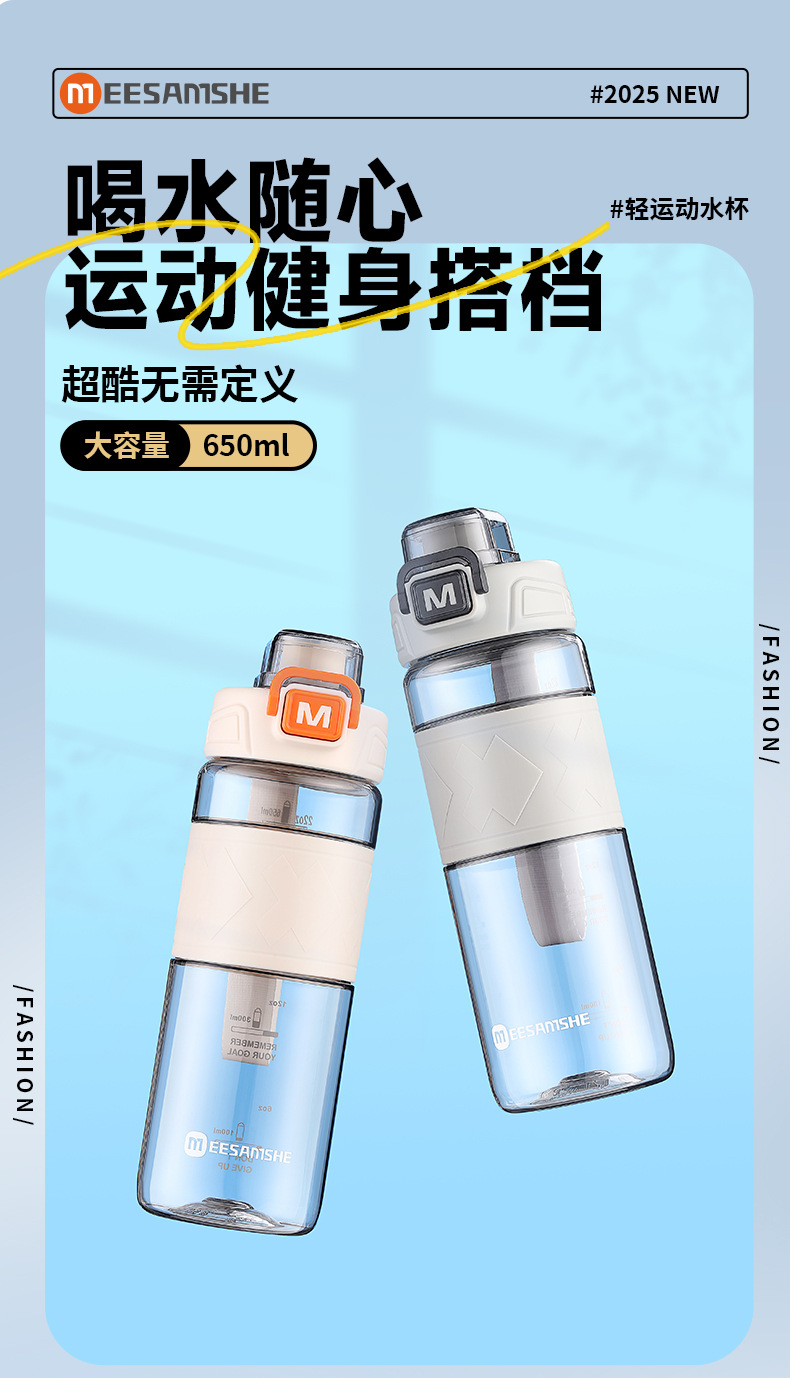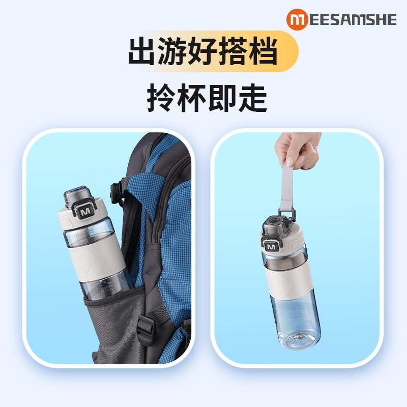 MEESAMSHE/米膳师*引力熊IP联名款,杯身美国进口tritan材质耐高温可以装开水,环保无异味,弹盖运动水杯,杯盖带提绳,杯身带防滑硅胶杯套,带茶隔方便喝水,支持OEM/ODM定制,礼品团购定制logo,500ml/650ml两个容量可选择,户外运动太空水杯,塑料水杯方便携带