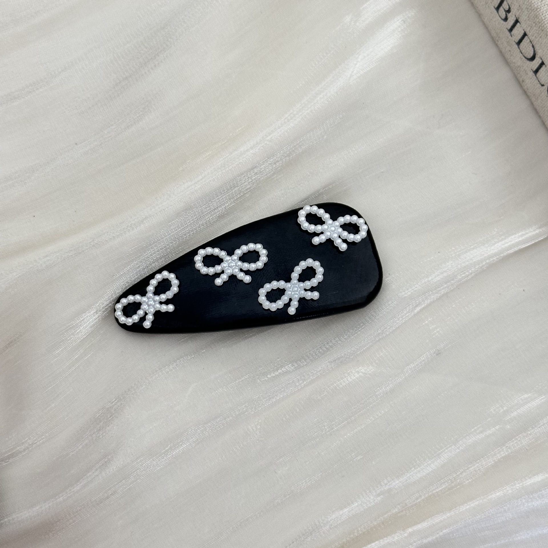 小众设计感简约珍珠蝴蝶结鸭嘴夹2024新款皮质侧边夹超仙嘻哈发夹 投诉