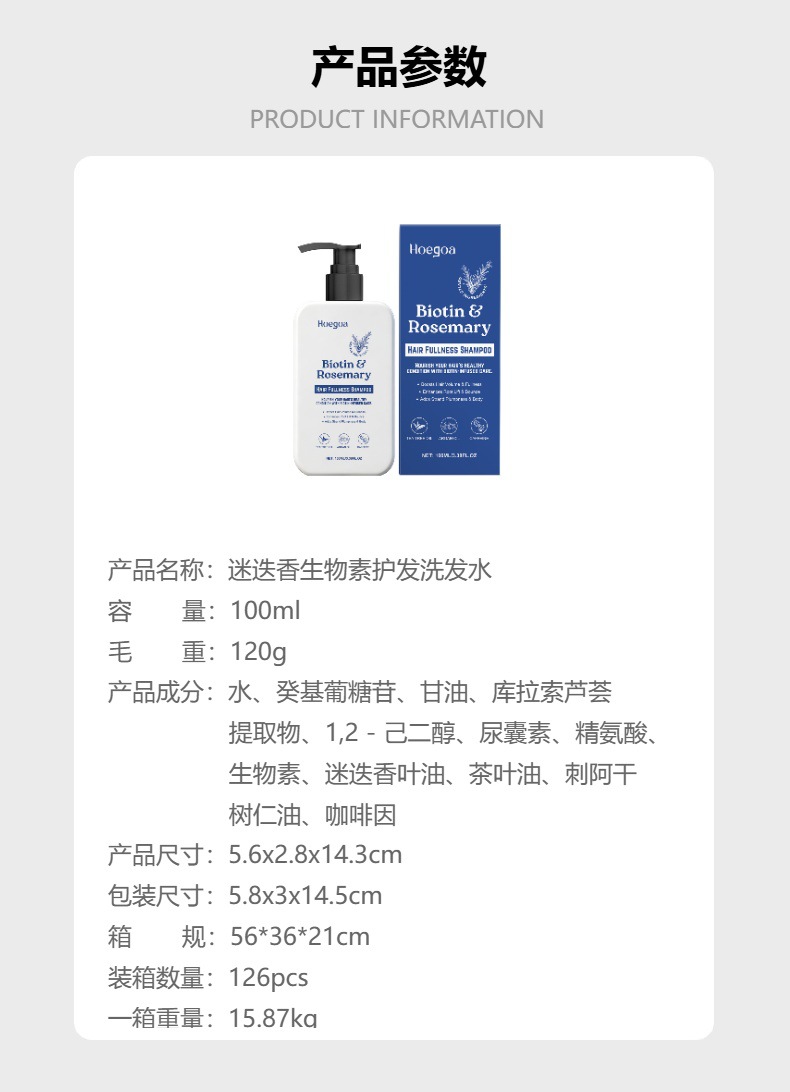 HOEGOA 迷迭香生物素护发洗发水 温和清洁头皮柔顺如丝焕活秀发专供出口 English | 投诉