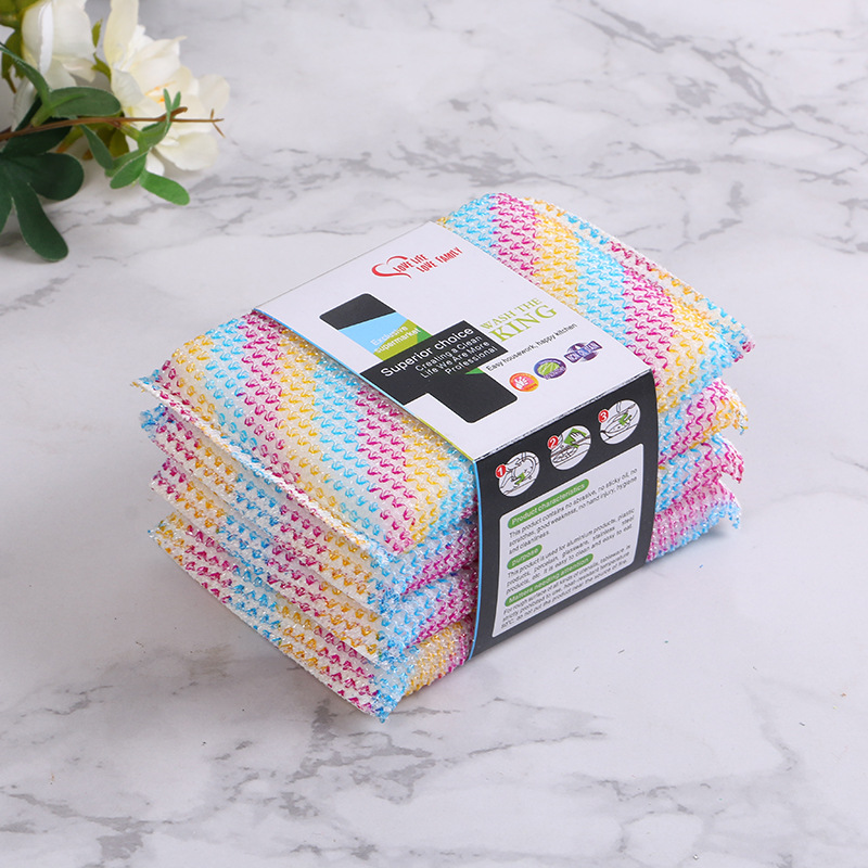 厨房清洁百洁布4片装 家用三彩加厚厨房清洁用品刷锅刷碗洗碗刷