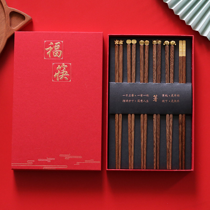 品牌: 陶煲王 设计风格: 中式 货号: 福筷6双装带公筷 产地: 中国大陆 人群: 大众 适用场景: 日常送礼 颜色分类: 鸡翅木福筷6双装-公筷吉祥款