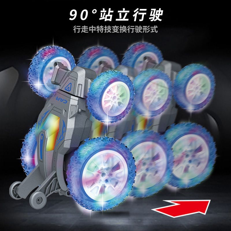 前进、后退。行驶时可伸缩变形,90度站立行驶,前轮360度旋转,遥控车壳随功能360度翻转。