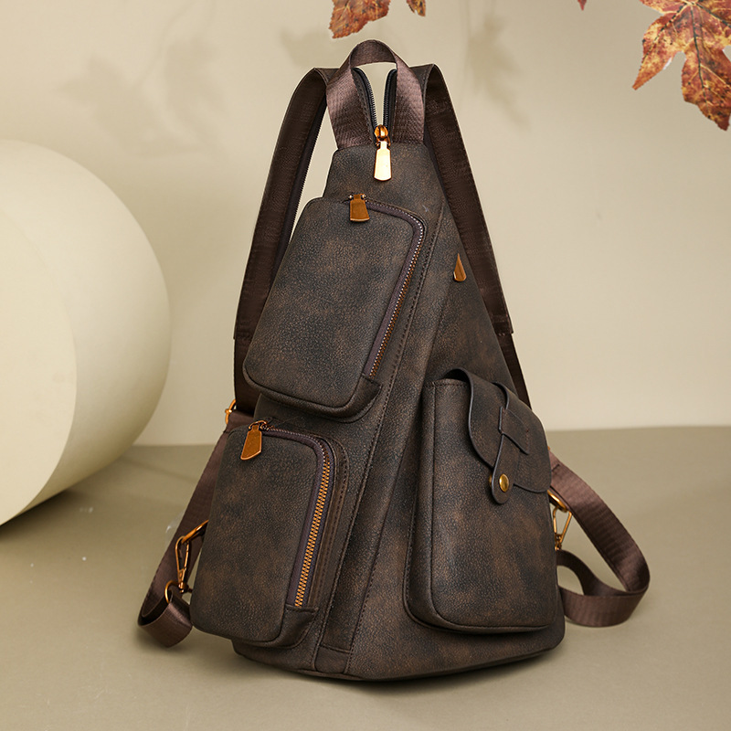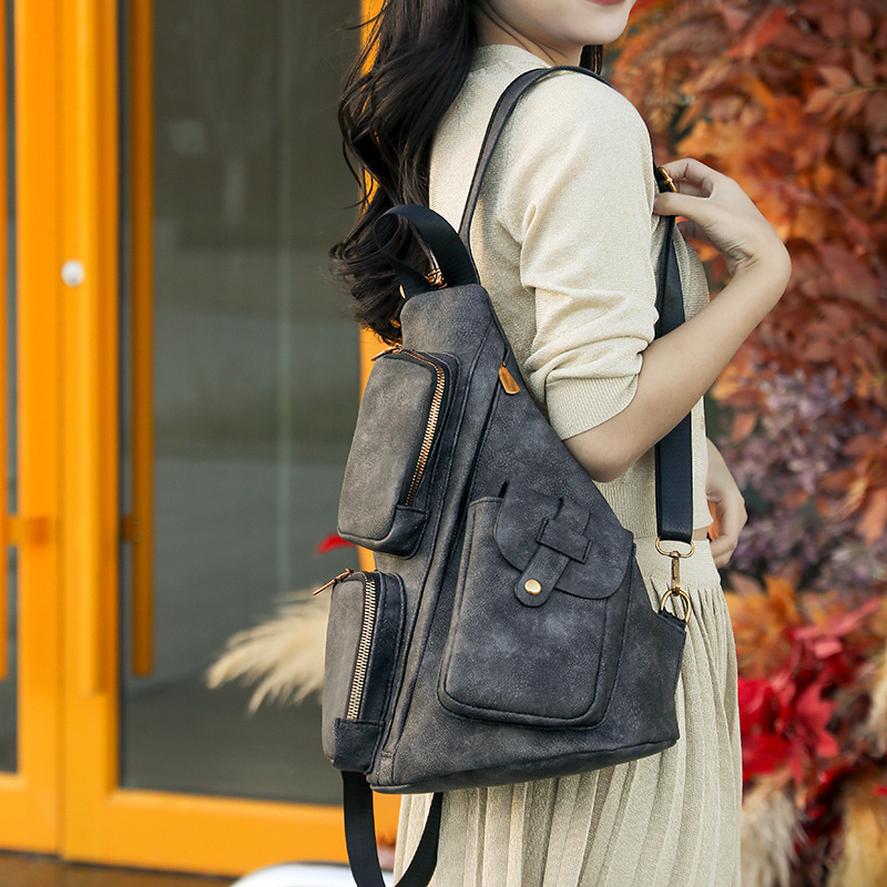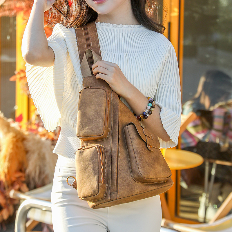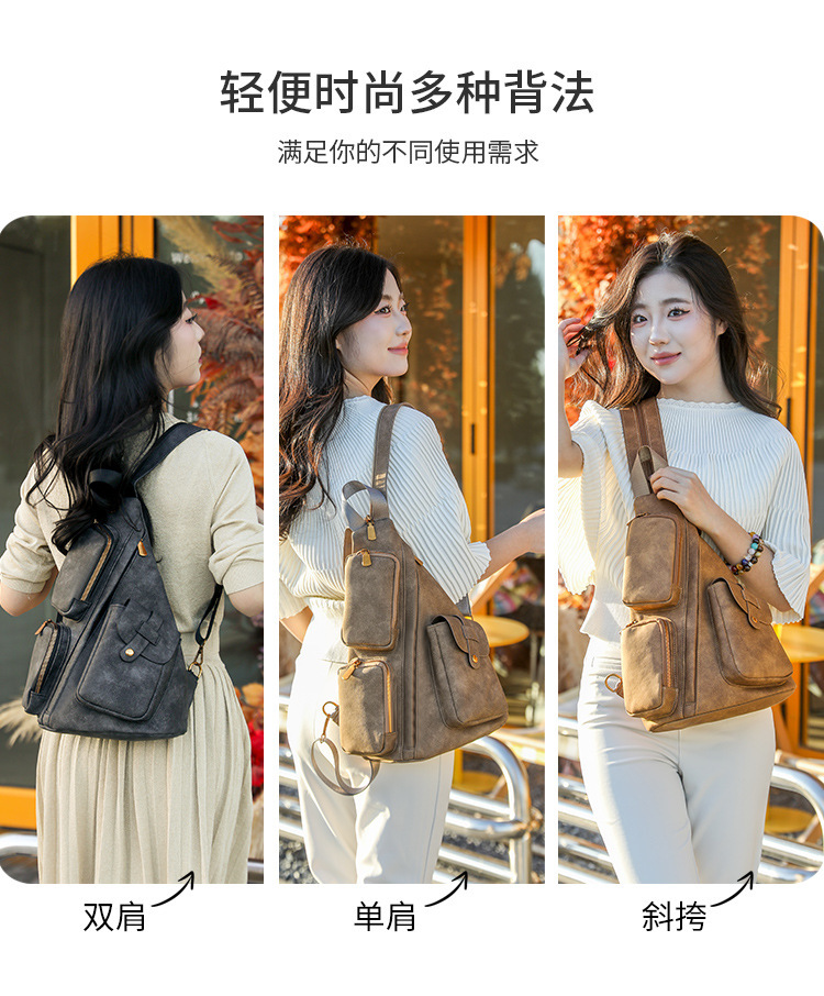 跨境复古胸包时尚新款多功能双肩包女士大容量斜挎包