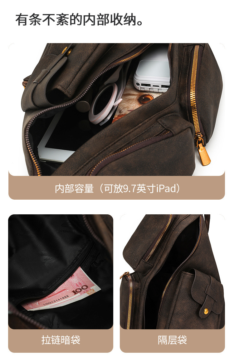 跨境复古胸包时尚新款多功能双肩包女士大容量斜挎包 English | 投诉