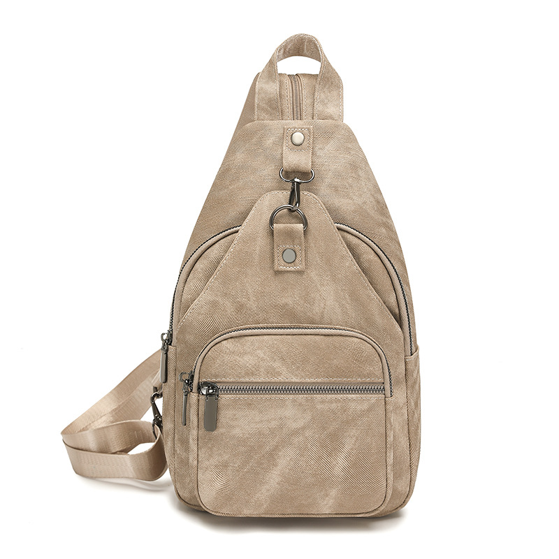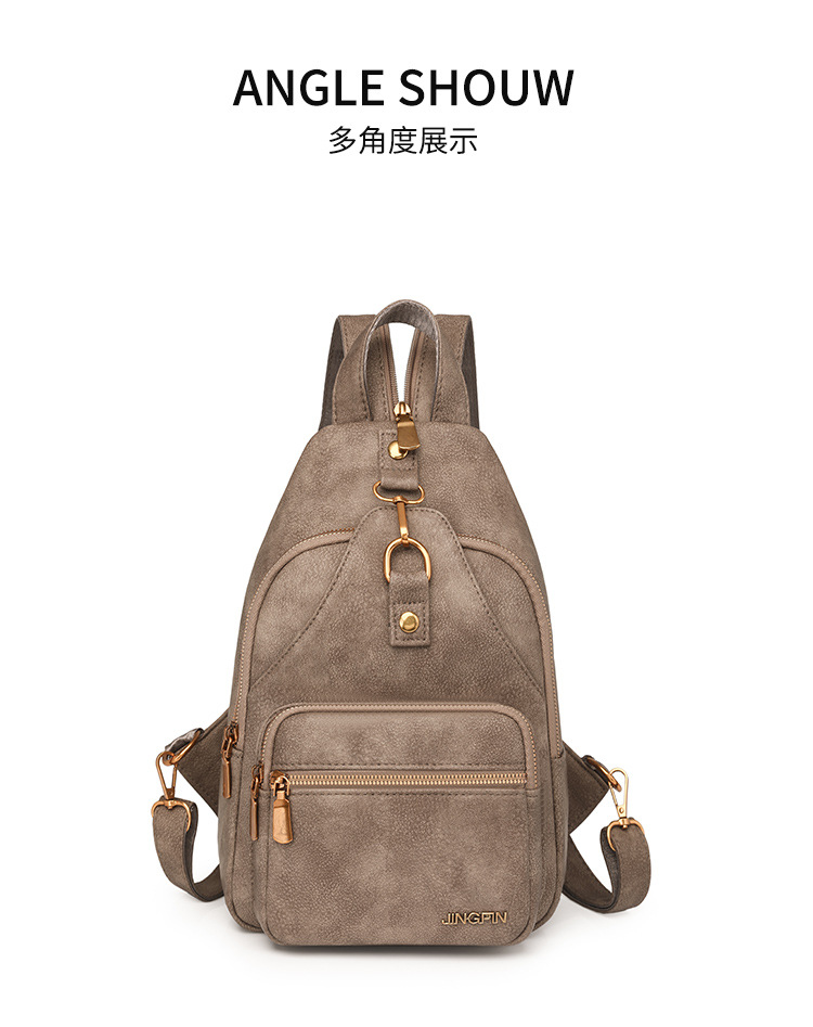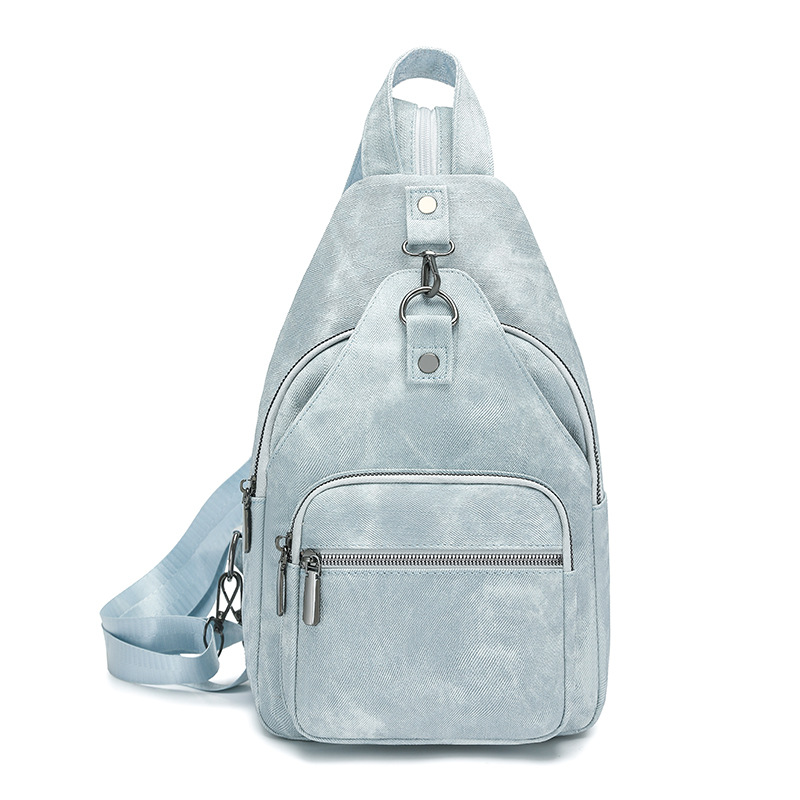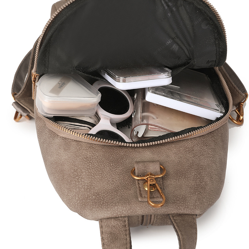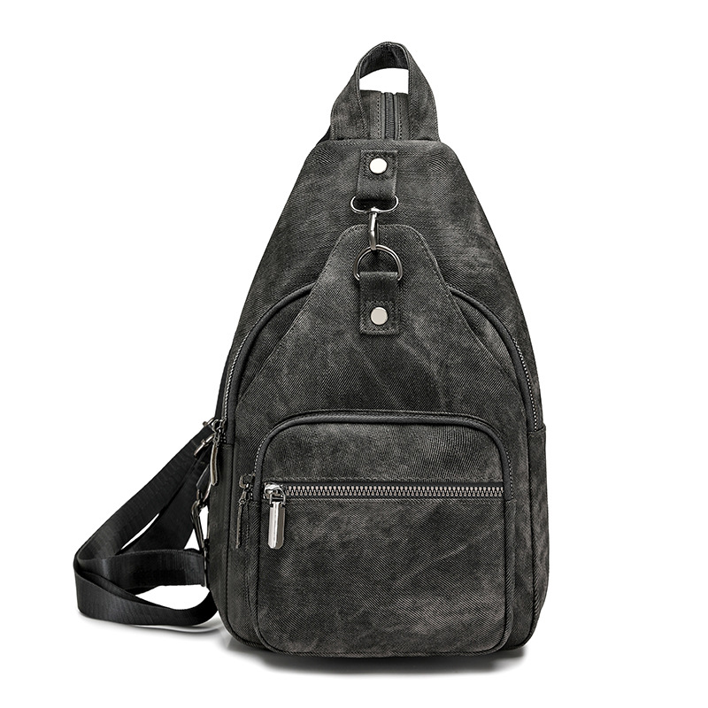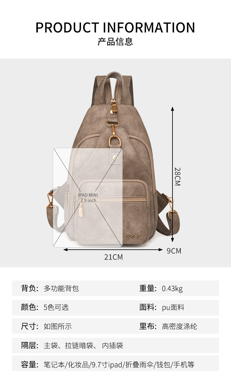 【产品特色】产品使用定制仿牛仔布纹路PU面料,颜色自然,手感舒适柔软;产品除背后的双肩背带以外另外单独配置同主料单肩带,增加产品的更多背负选择;使用加粗加重挂镀工艺的定制五金配件,光泽度好,拉力强,寿命长;产品内部使用加厚里布,顺滑舒适,不易磨损;内部小袋配置主料包边设计,美观且耐磨;产品使用丝质缝纫线,拉力均匀车线紧密,简洁大方。