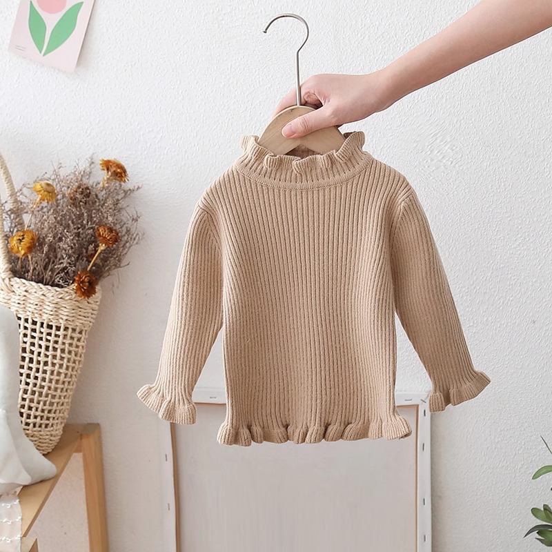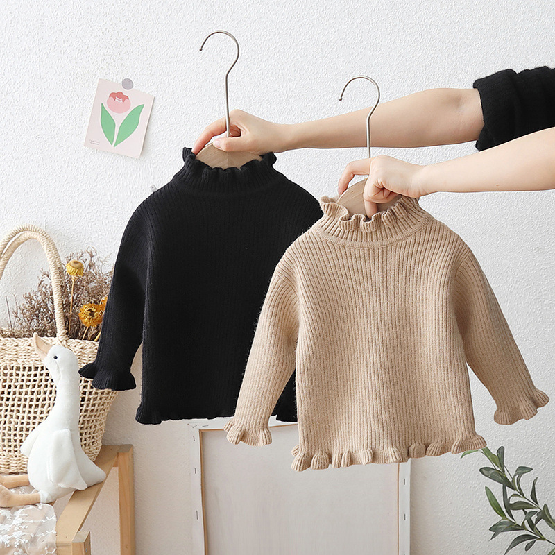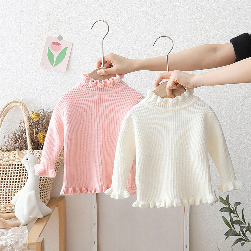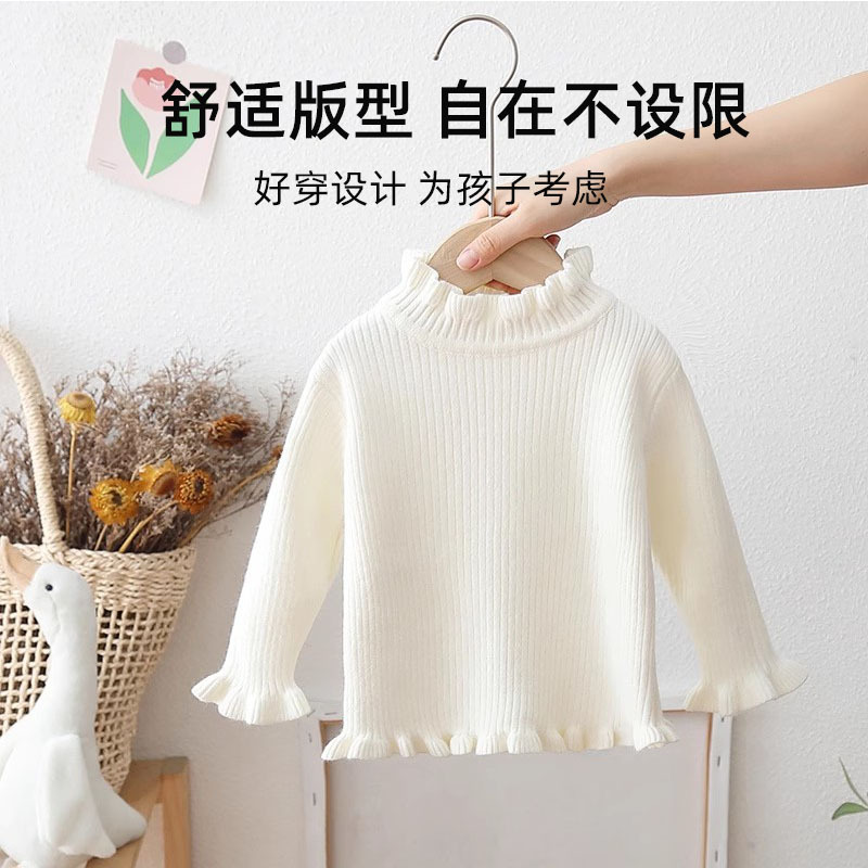 一体绒女童毛衣春秋宝宝木耳边内搭儿童半高领针织打底衫春装21 投诉
