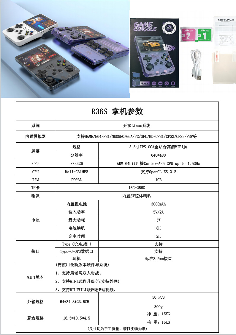 适用人数: 单人 品牌: 无 产品类别: 摇杆游戏机 内存: 64GB,128GB 附加功能: 其它 商品类型: 全新 游戏版本: 正版/原版游戏软件 型号: 正版ARKOS-白色,正版ARKOS-透 货号: R36S 产地: 深圳 货源类别: 现货 游戏类型: RPG角色扮演 操作系统: 开源Linnux系统 2025新版系统 接口类型: USB 视频/音频接口: 有 网络接口: 无 连接方式: 无线 电玩分级: 入门级,发烧级,精英级,骨灰级 适用年龄段: 通用 产品尺寸: 16.5cm * 10.5cm * 4.