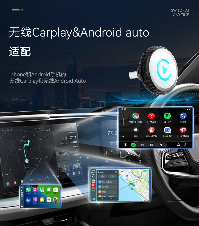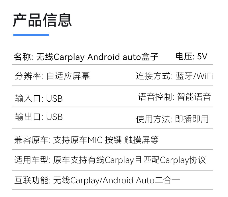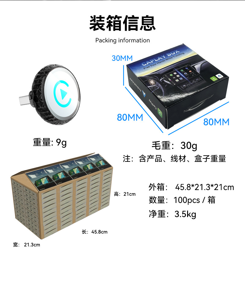 跨境carplay转换器智能二合一车载互联盒子安卓Autocarplay盒子 English | 投诉