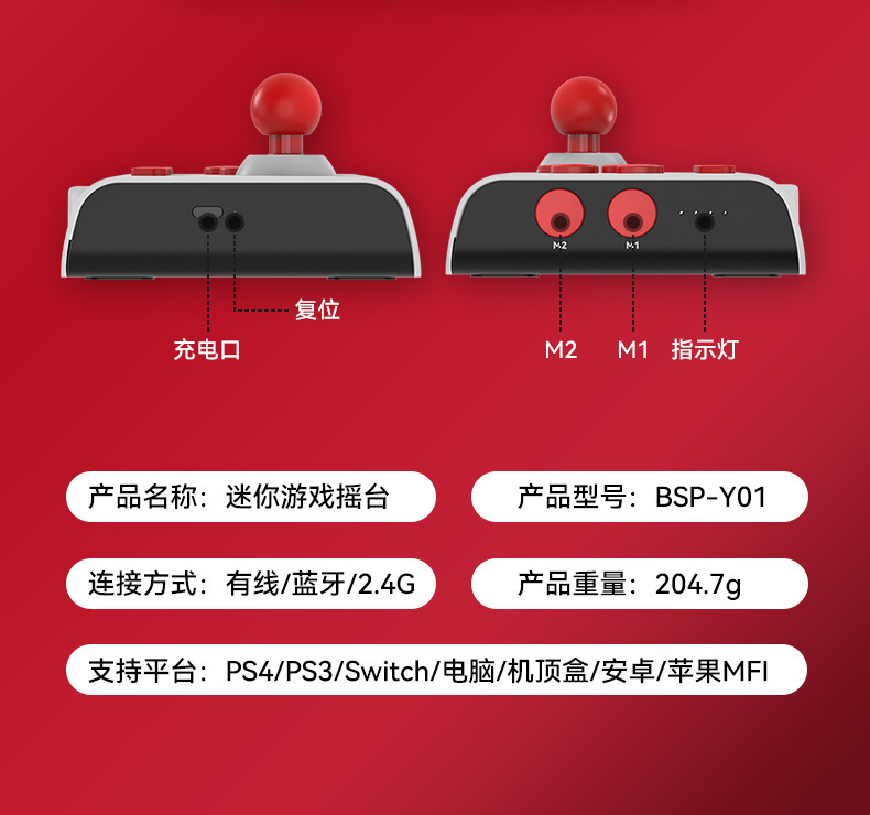 品牌: 中性 材质: ABS 电玩分级: 骨灰级 产品类型: 摇杆 连接方式: 蓝牙 型号: 游戏摇杆 附加功能: 多功能 货号: Y01 产地: 深圳 货源类别: 现货 商品类型: 全新 游戏机配件类型: 游戏摇杆 接口类型: USB 震动方式: 无震动 适用产品: switch/手机/安卓/ps4/ps3 产品重量: 300g 适用人数: 1 适用年龄段: 6岁以上 加印LOGO: 可以 加工定制: 是