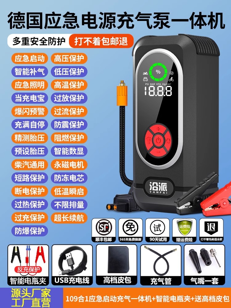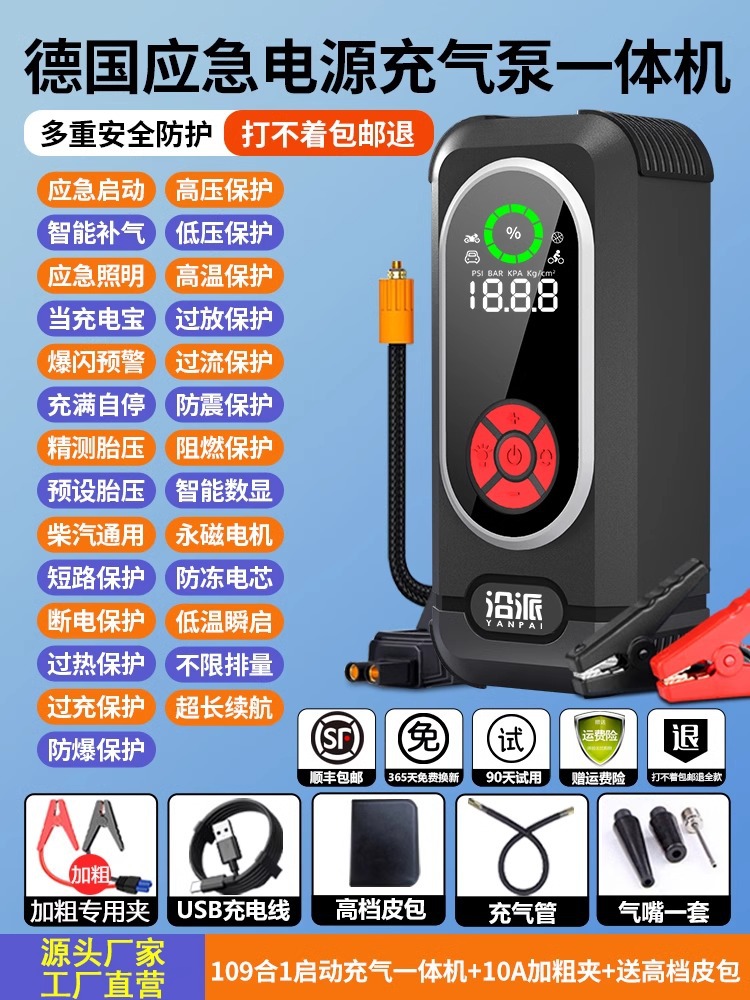 沿派汽车应急启动电源充气泵一体机12V车载打火紧急强启搭电神器 English | 投诉