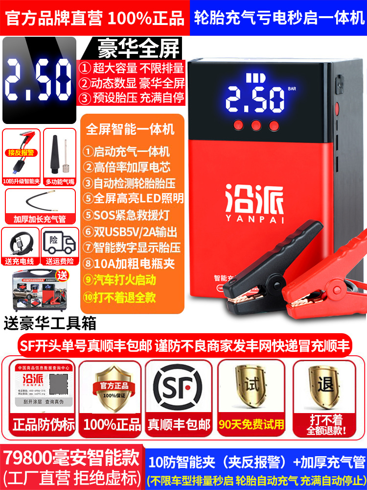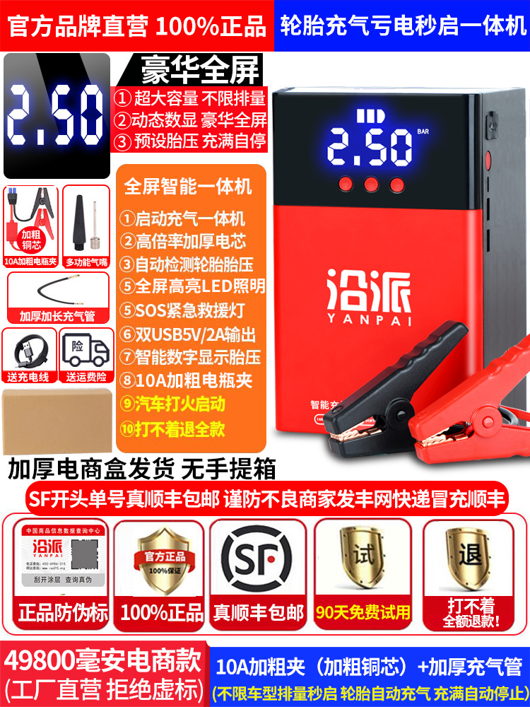 汽车应急启动电源充气泵一体机12V大容量搭电宝电瓶紧急打火神器 English | 投诉