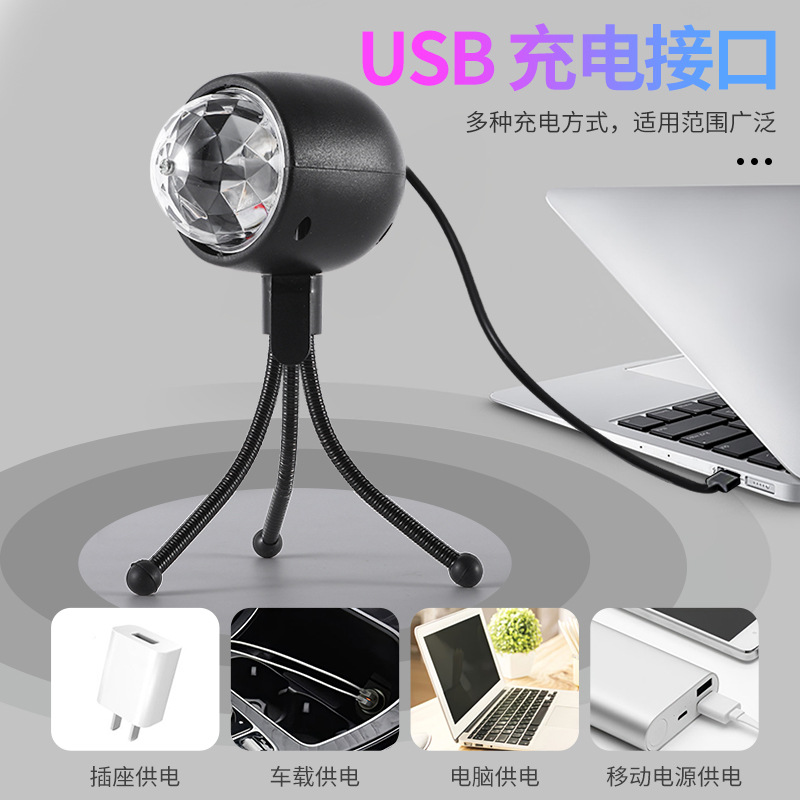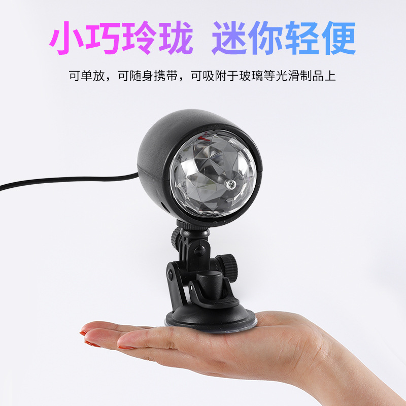 USB高亮车载充电小魔球 汽车DJ灯水晶七彩旋转小魔球舞台氛围灯
