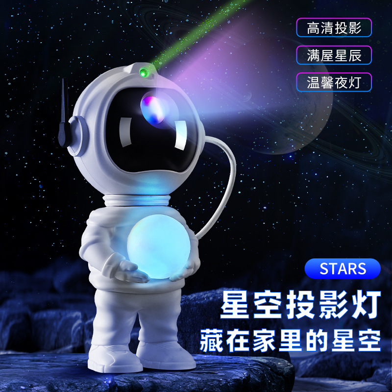 工厂直销宇航员站姿抱球星空投影灯满天星激光浪漫七彩氛围小夜灯